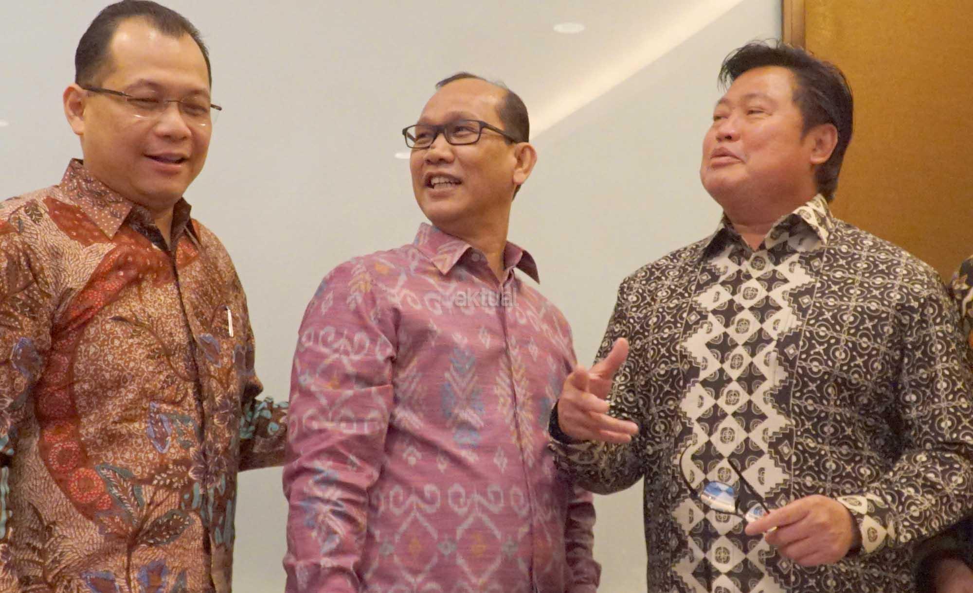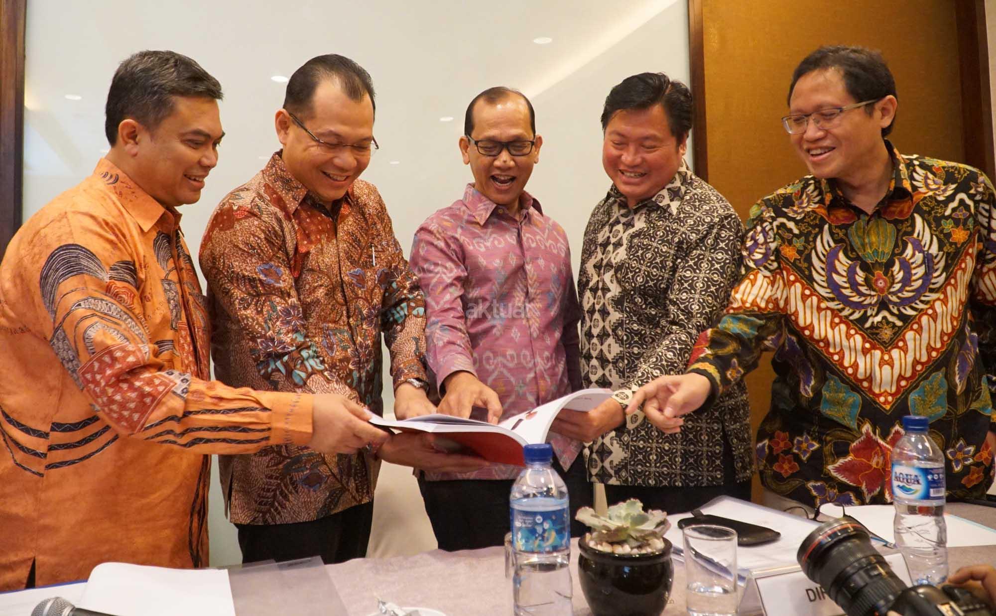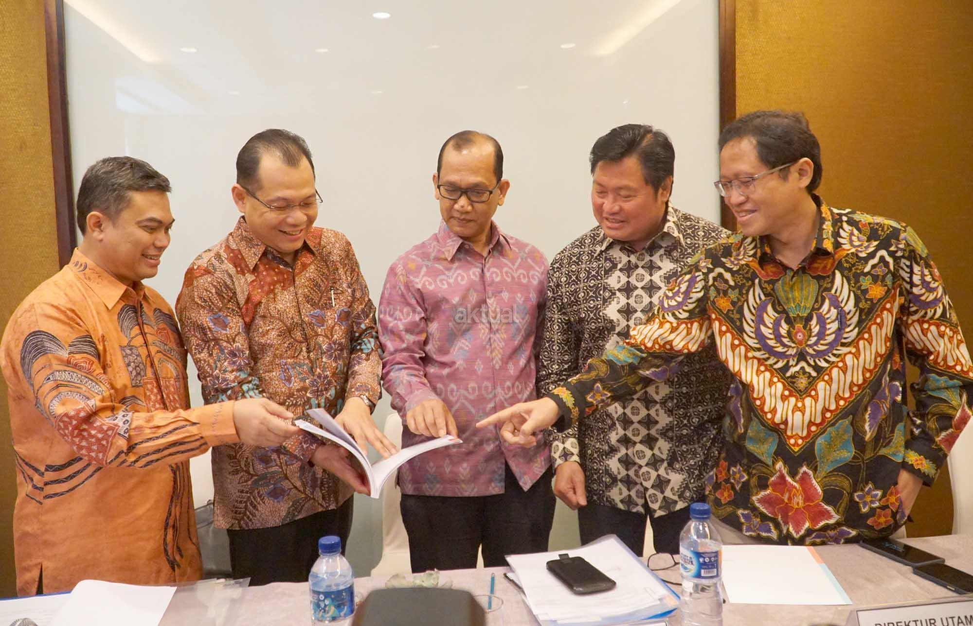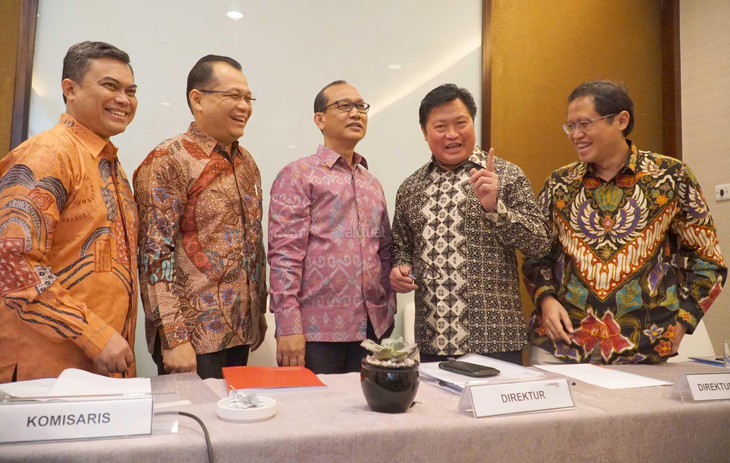 Komisaris PT Cita Mineral Investindo Tbk, Tedy Badrujaman (dari kiri) berbincang dengan Komisaris, Harry Kesuma Tanoto, Direktur Independen, Yusak L Pardede, Direktur Utama, Lim Hok Seng,dan Direktur Robby Irfan Rafianto seusai rapat umum pemegang saham tahunan di Jakarta, Rabu (6/6).Emiten yang bergerak dalam bidang pertambangan bauksit dan produsen Smelter Grade Alumina itu membukukan penjualan bersih kuartal I/2018 mencapai Rp 461 miliar, meningkat sebesar 254,6% dibanding pencapaian kuartal I tahun sebelumnya yang sebesar Rp 130 miliar. AKTUAL/Eko S Hilman