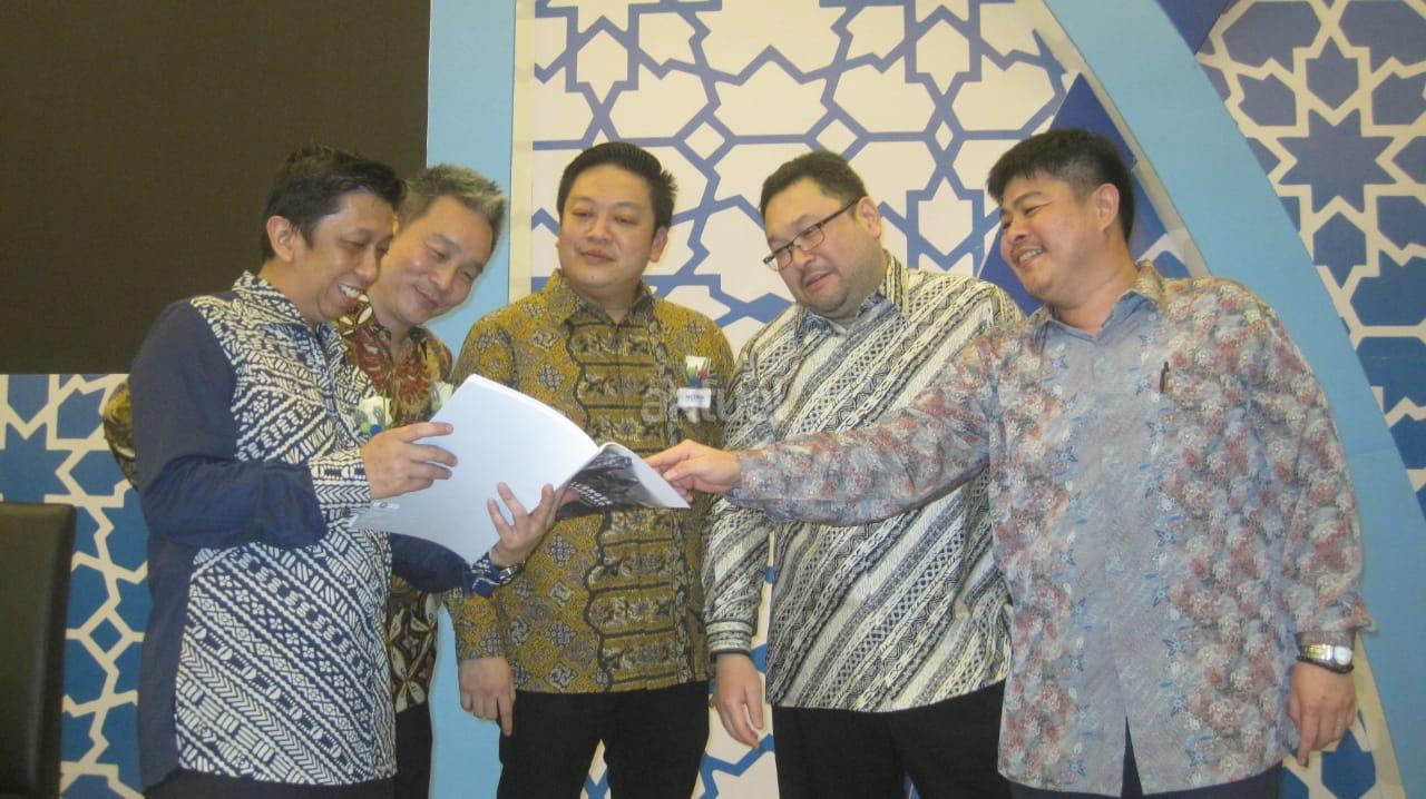 Dari kiri ke kanan, Direktur Utama PT,Borneo Olah Sarana Sukses (BOSS) Freddy Tedjasasmita, Komisaris Utama Freddy Setiawan, Direktur Widodo Nurly Sumady, Komisaris Johannes Halim dan Direktur William Siawira berbincang usai,RUPS di Jakarta, Jumat (8/6/2018). Selama kuartal pertama 2018, BOSS meraih penjualan bersih Rp 61,14 miliar, naik 257% dibandingkan penjualan bersih di periode sama tahun sebelumnya senilai Rp 17,10 miliar. AKTUAL/Eko S Hilman
