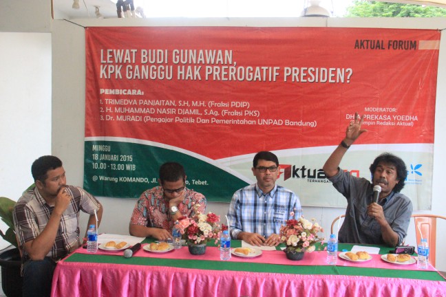“KPK berbeda memperlakukan kasus ini. Ada berbagai kepentingan,” ujar Muradi di Aktual Forum bertema “Lewat Budi Gunawan, KPK Ganggu Hak Perogratif Presiden?” di Warung Komando Jakarta, Minggu (18/1).