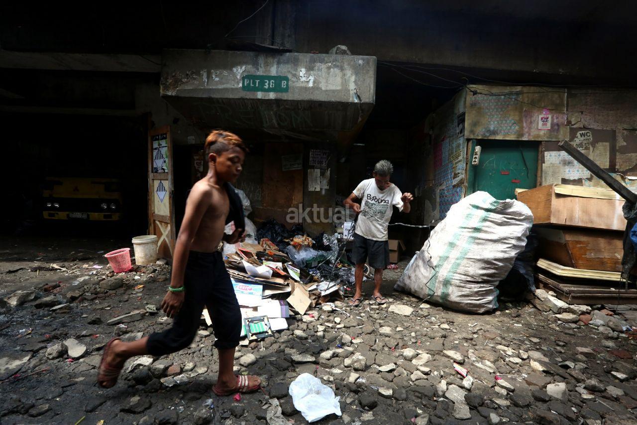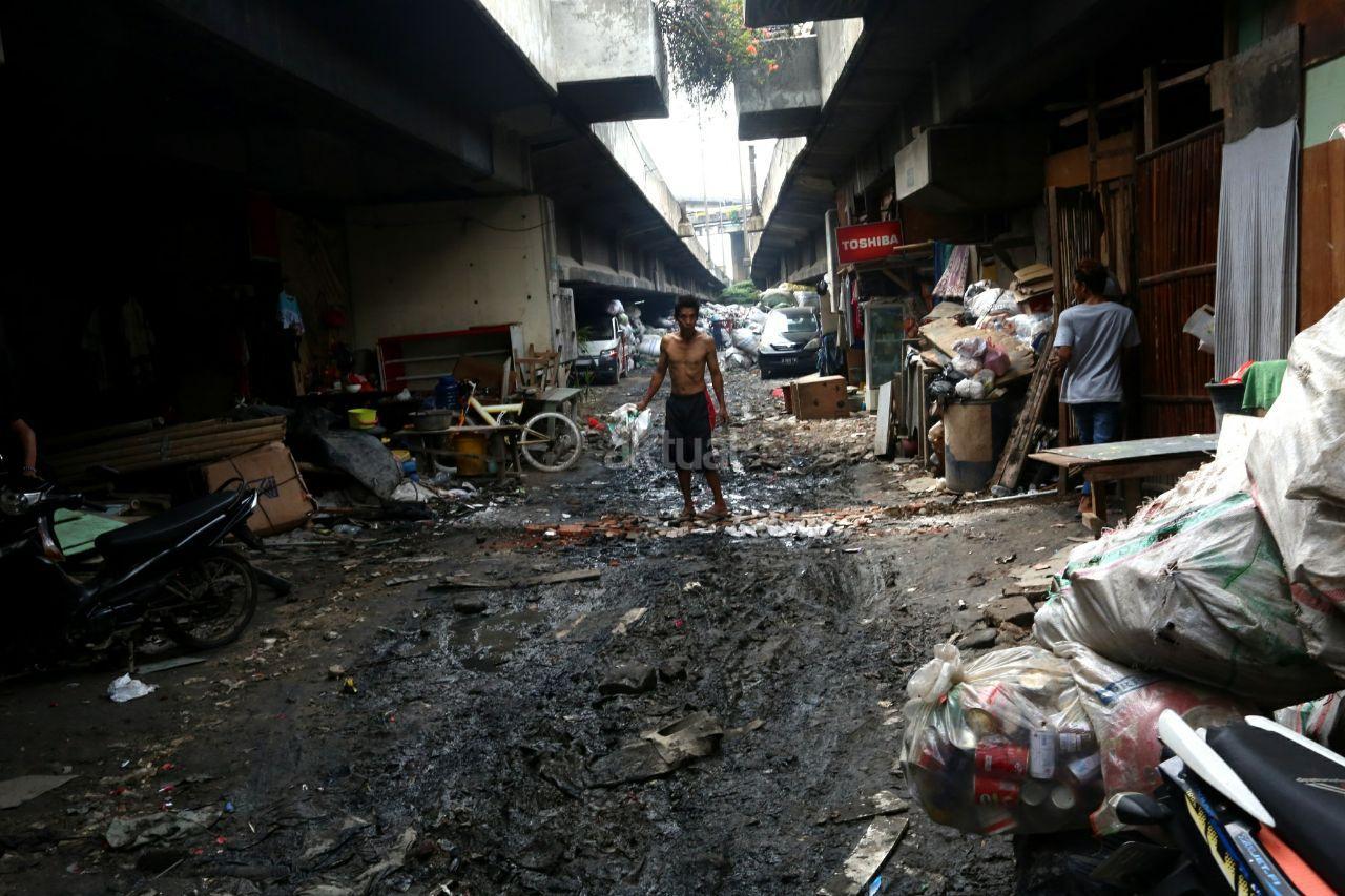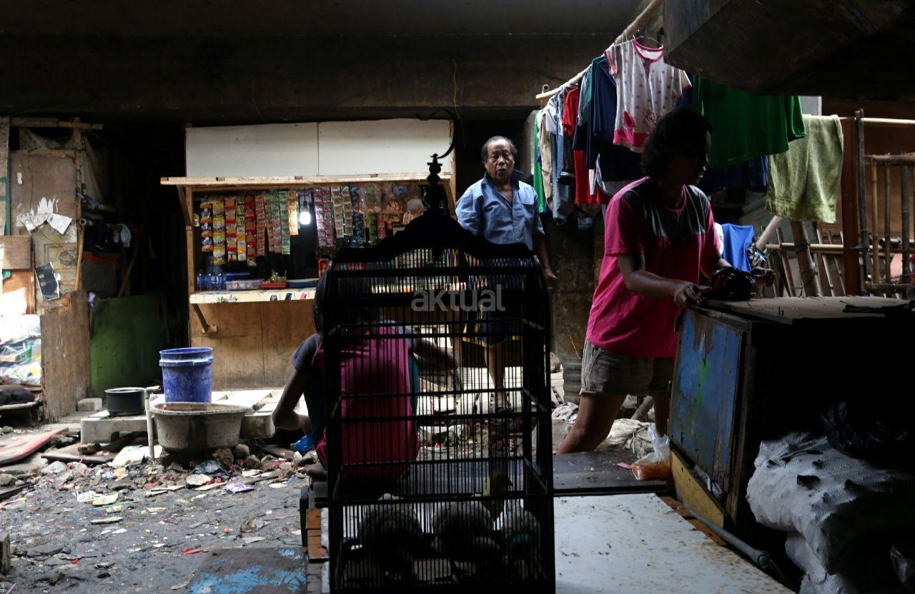 Kehidupan warga di kolong jembatan tol Kamal, Jakarta Barat, Rabu (27/12/2017). Badan Pusat Statistik (BPS) menyebutkan angka kemiskinan di Indonesia terus menurun dari tahun ke tahun, namun penurunan berjalan ini lambat. BPS per Maret 2017 kemiskinan Indonesia tercata 10,64%. Secara absolut masih sekitar 27,7 juta jiwa. data BPS 2010 ke 2017 memang relatif lambat ya, padahal sudah puluhan triliun dikeluarkan untuk pengentasan kemiskinan. AKTUAL/Tino Oktaviano