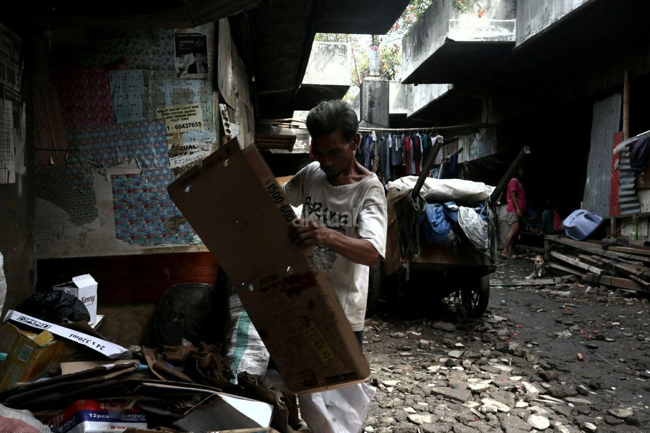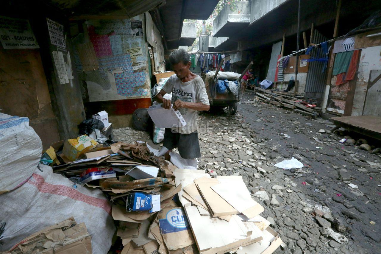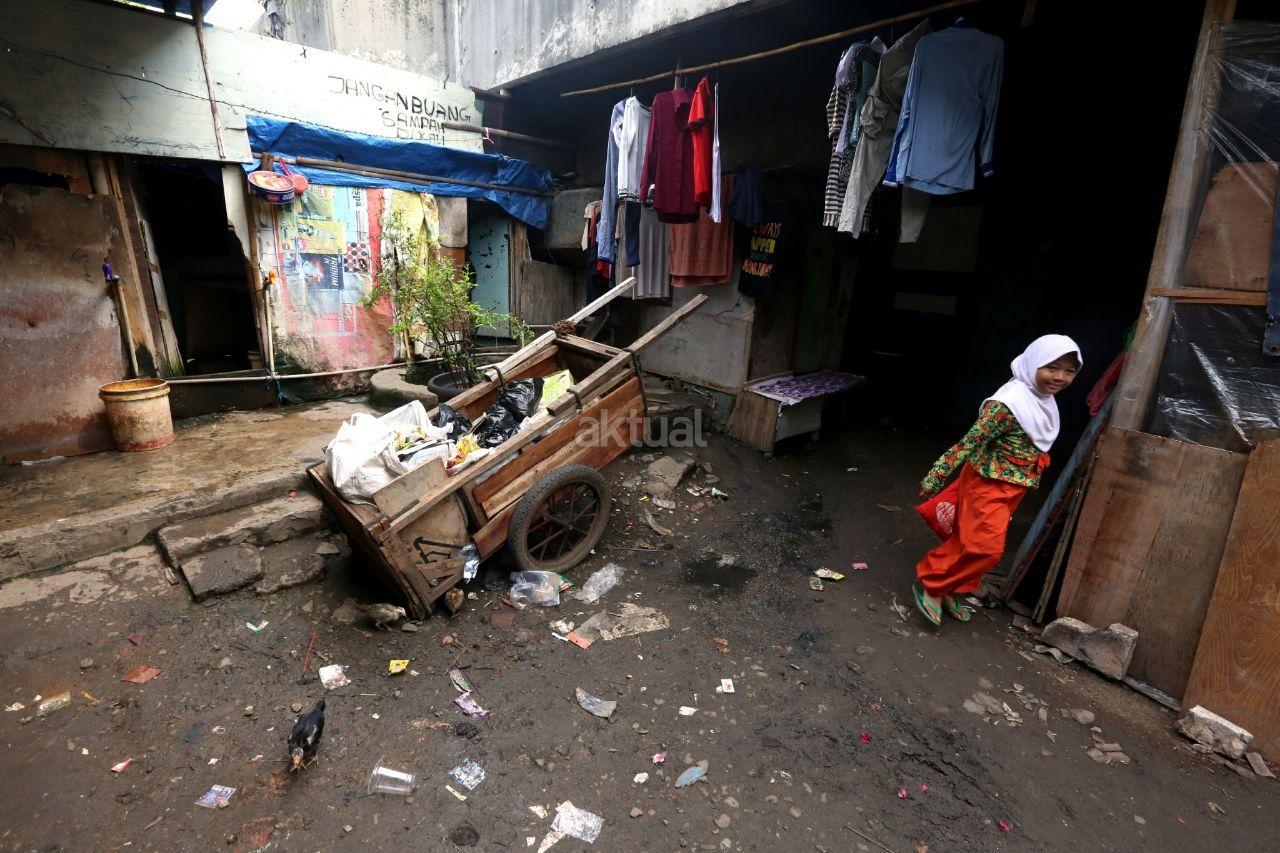 Kehidupan warga di kolong jembatan tol Kamal, Jakarta Barat, Rabu (27/12/2017). Badan Pusat Statistik (BPS) menyebutkan angka kemiskinan di Indonesia terus menurun dari tahun ke tahun, namun penurunan berjalan ini lambat. BPS per Maret 2017 kemiskinan Indonesia tercata 10,64%. Secara absolut masih sekitar 27,7 juta jiwa. data BPS 2010 ke 2017 memang relatif lambat ya, padahal sudah puluhan triliun dikeluarkan untuk pengentasan kemiskinan. AKTUAL/Tino Oktaviano