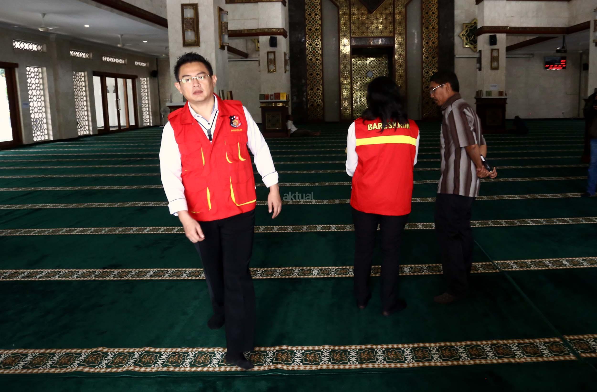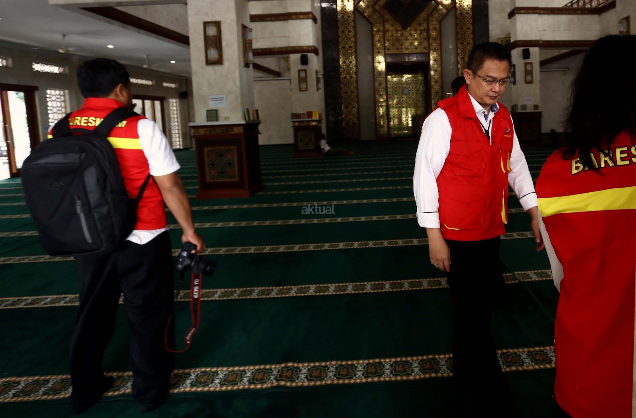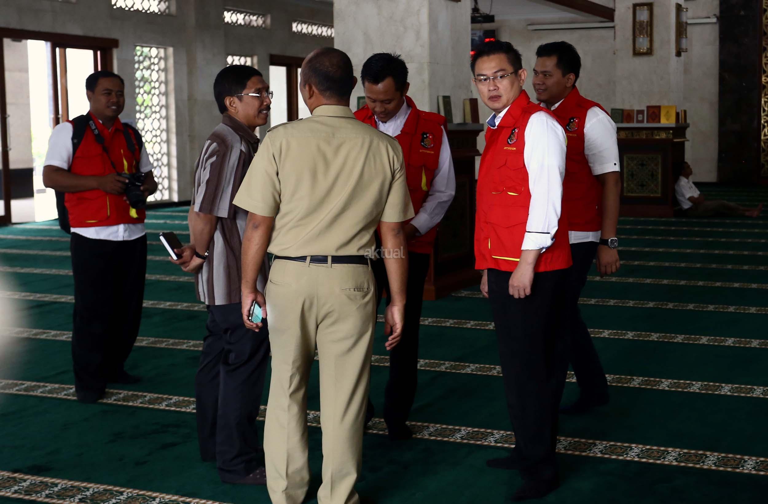 Petugas memeriksa bangunan Masjid Al-Fauz di kantor Wali Kota Jakarta Pusat, Senin (16/1/2017).Direktorat Tindak Pidana Korupsi Bareskrim Polri mendatangi Masjid Al-Fauz, Jakpus. Polri mencari indikasi dugaan korupsi pembangunan masjid tersebut. AKTUAL/Munzir