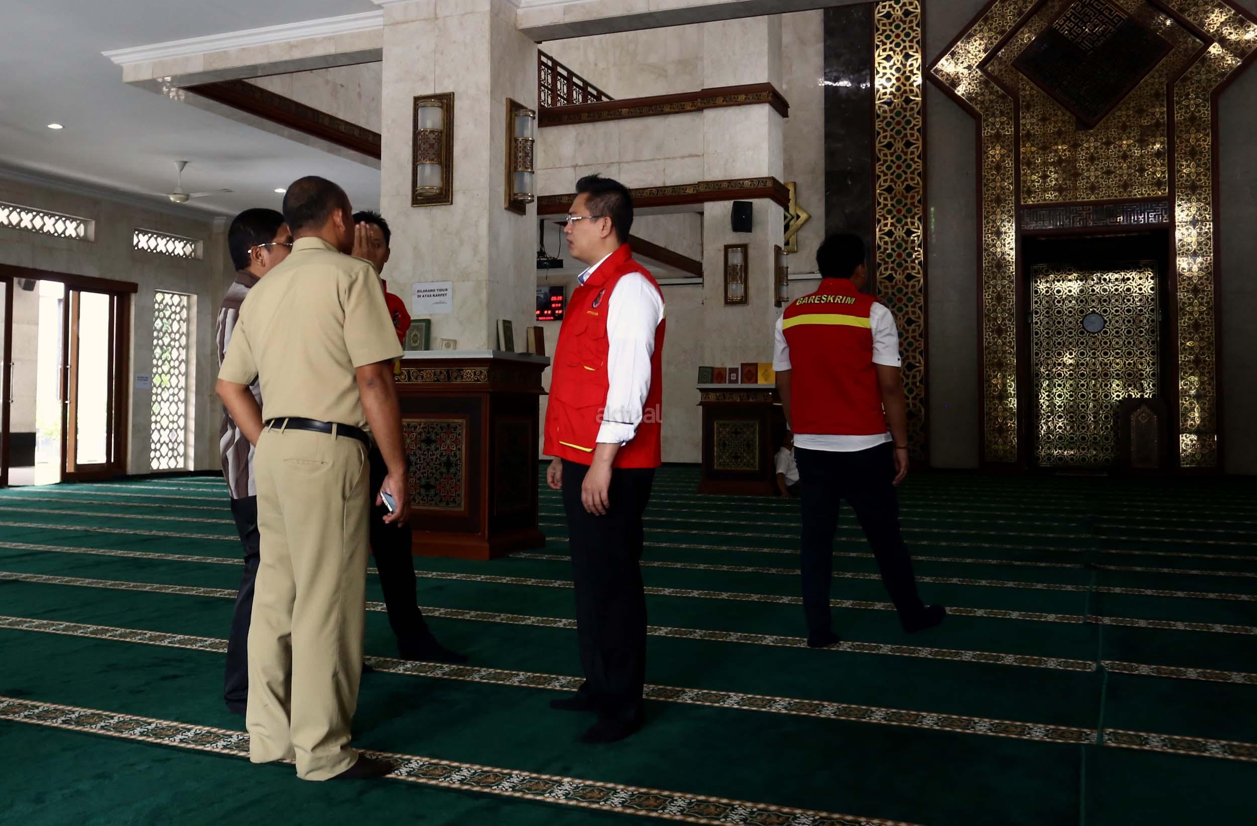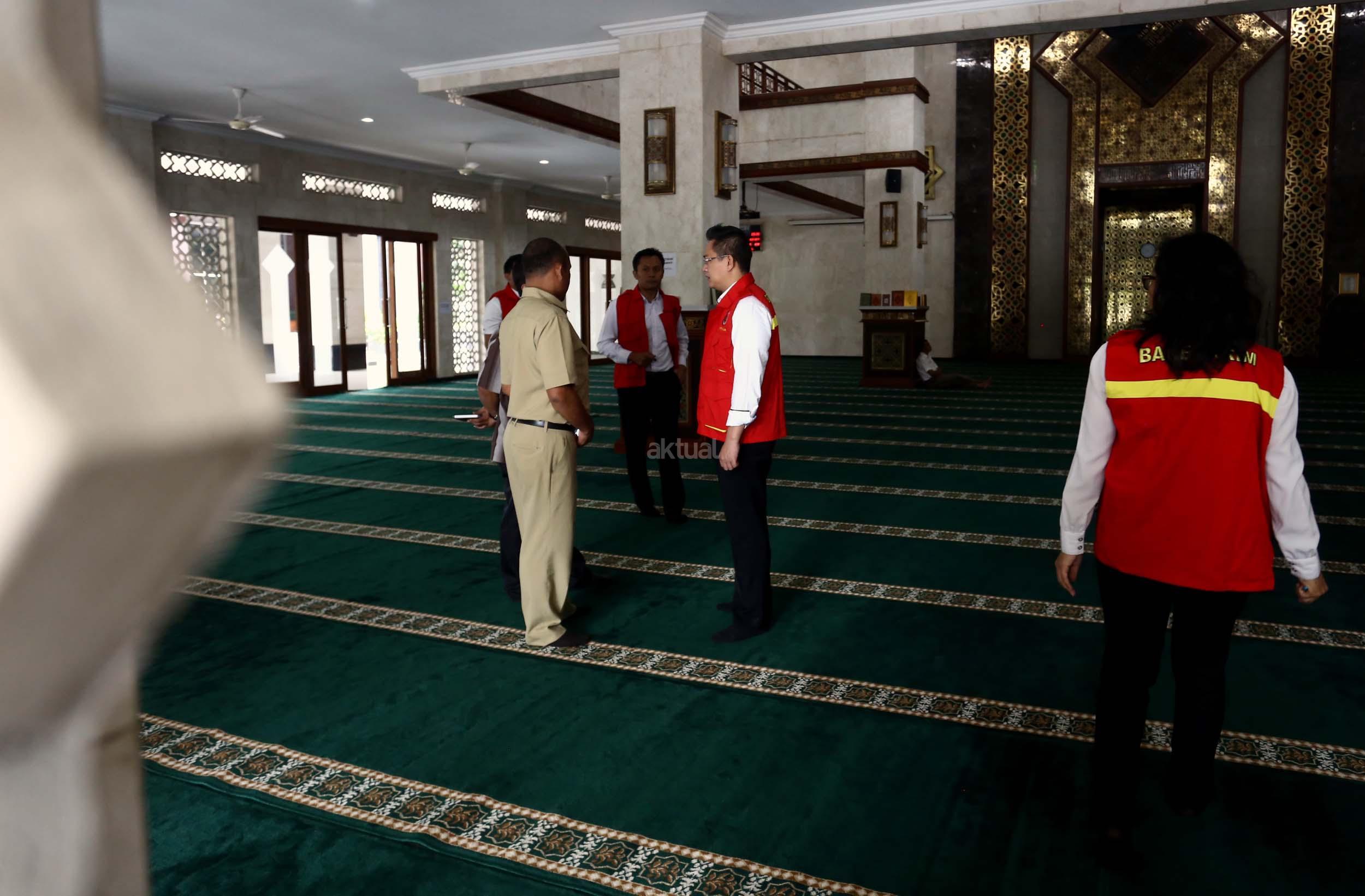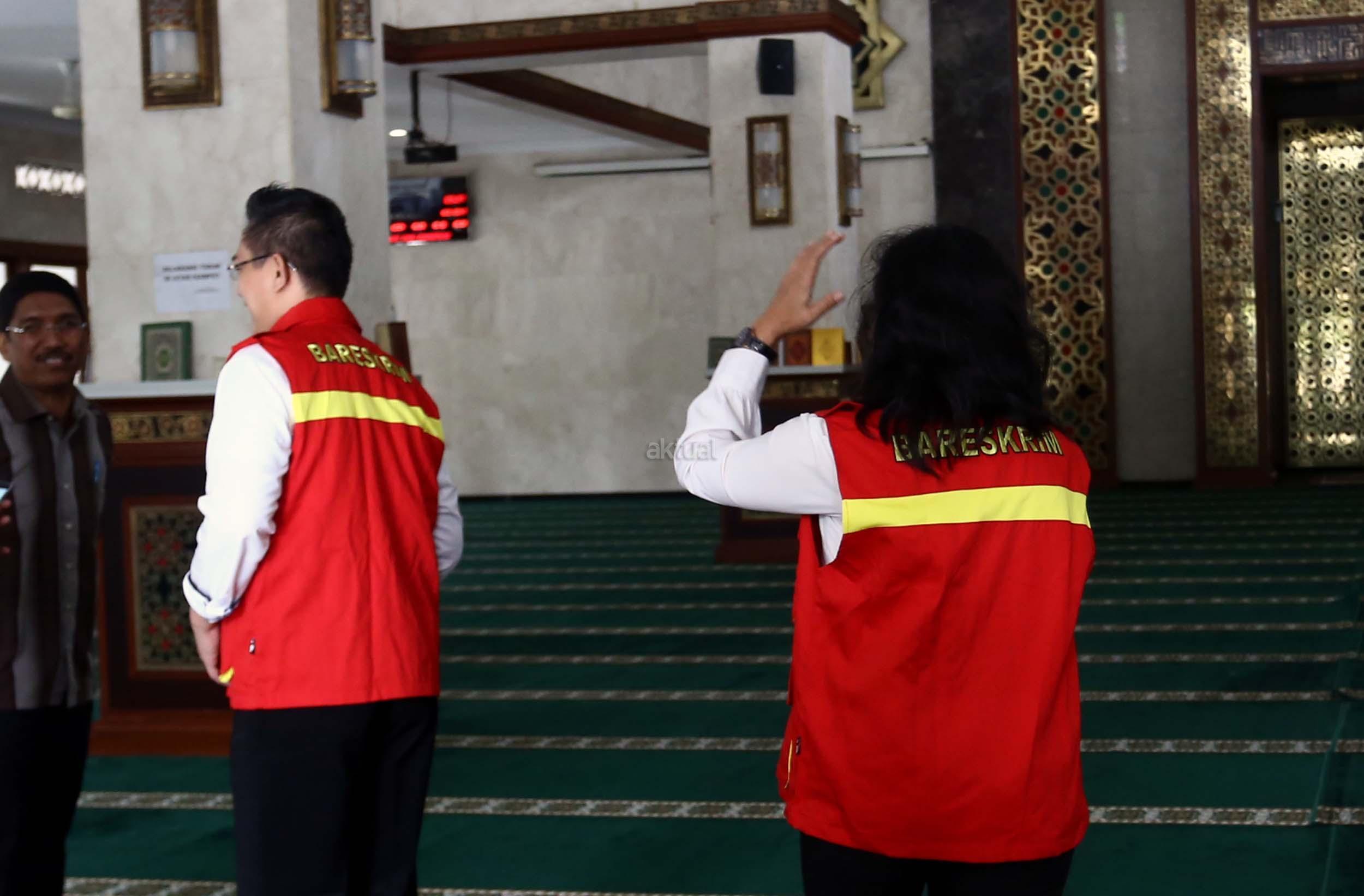 Petugas memeriksa bangunan Masjid Al-Fauz di kantor Wali Kota Jakarta Pusat, Senin (16/1/2017).Direktorat Tindak Pidana Korupsi Bareskrim Polri mendatangi Masjid Al-Fauz, Jakpus. Polri mencari indikasi dugaan korupsi pembangunan masjid tersebut. AKTUAL/Munzir