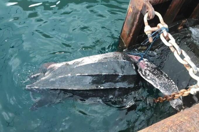 Ambon, Aktual.com – Penyu Belimbing ditemukan mati oleh Petugas Pelabuhan Yos Sudarso Ambon di bagian kapal Dobonsolo, di kawasan Pelabuhan Yos Sudarso, saat kapal hendak sandar.