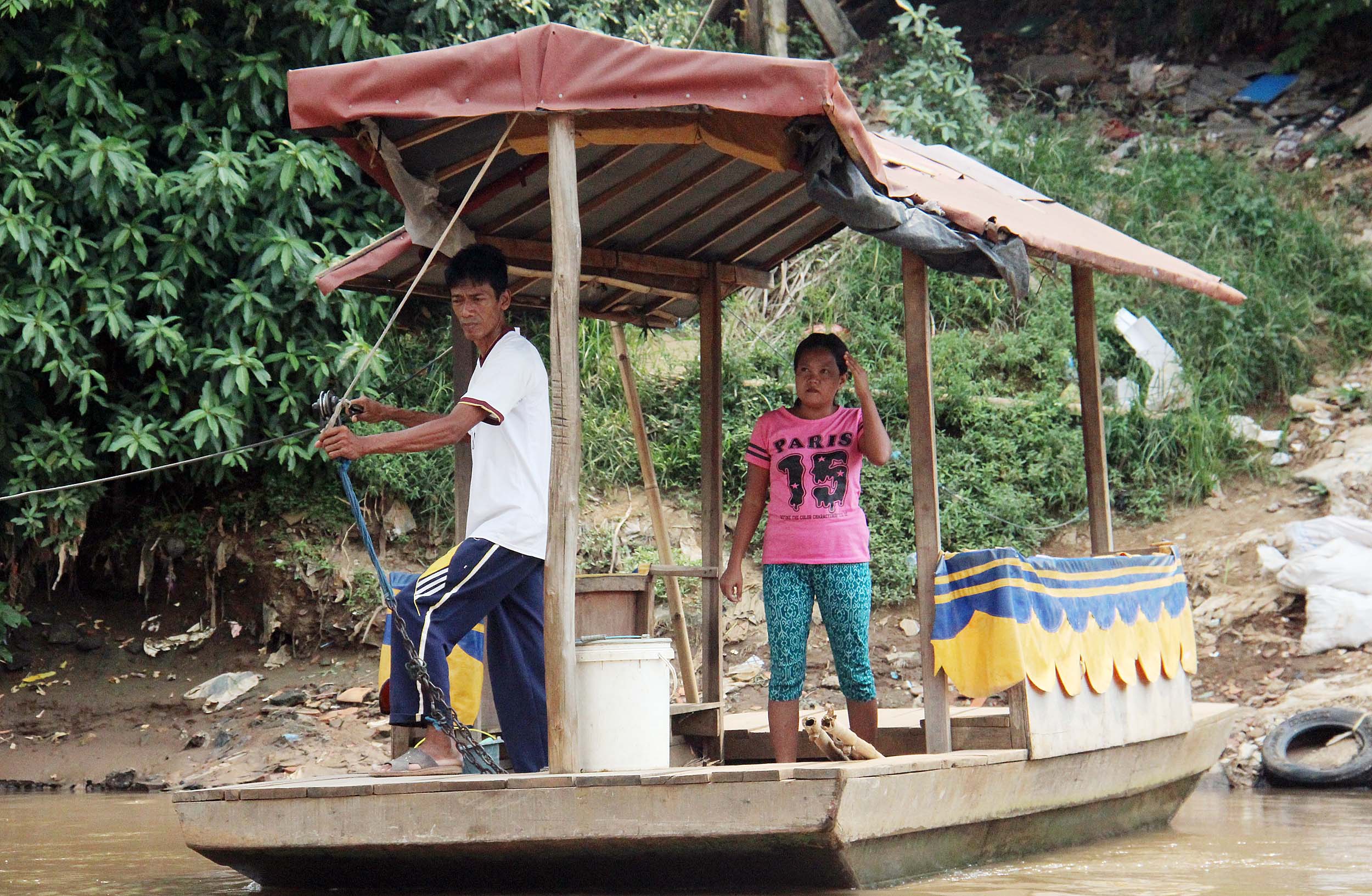 Warga menggunakan perahu eretan untuk menyeberangi Sungai Ciliwung di kawasan Kampung Pulo, Jakarta Timur, Selasa, (9/8/2016). Perahu eretan masih terlihat di Jakarta. Bagi sebagian warga Jakarta, perahu eretan masih menjadi pilihan transportasi untuk menyebrangi sungai Ciliwung.
