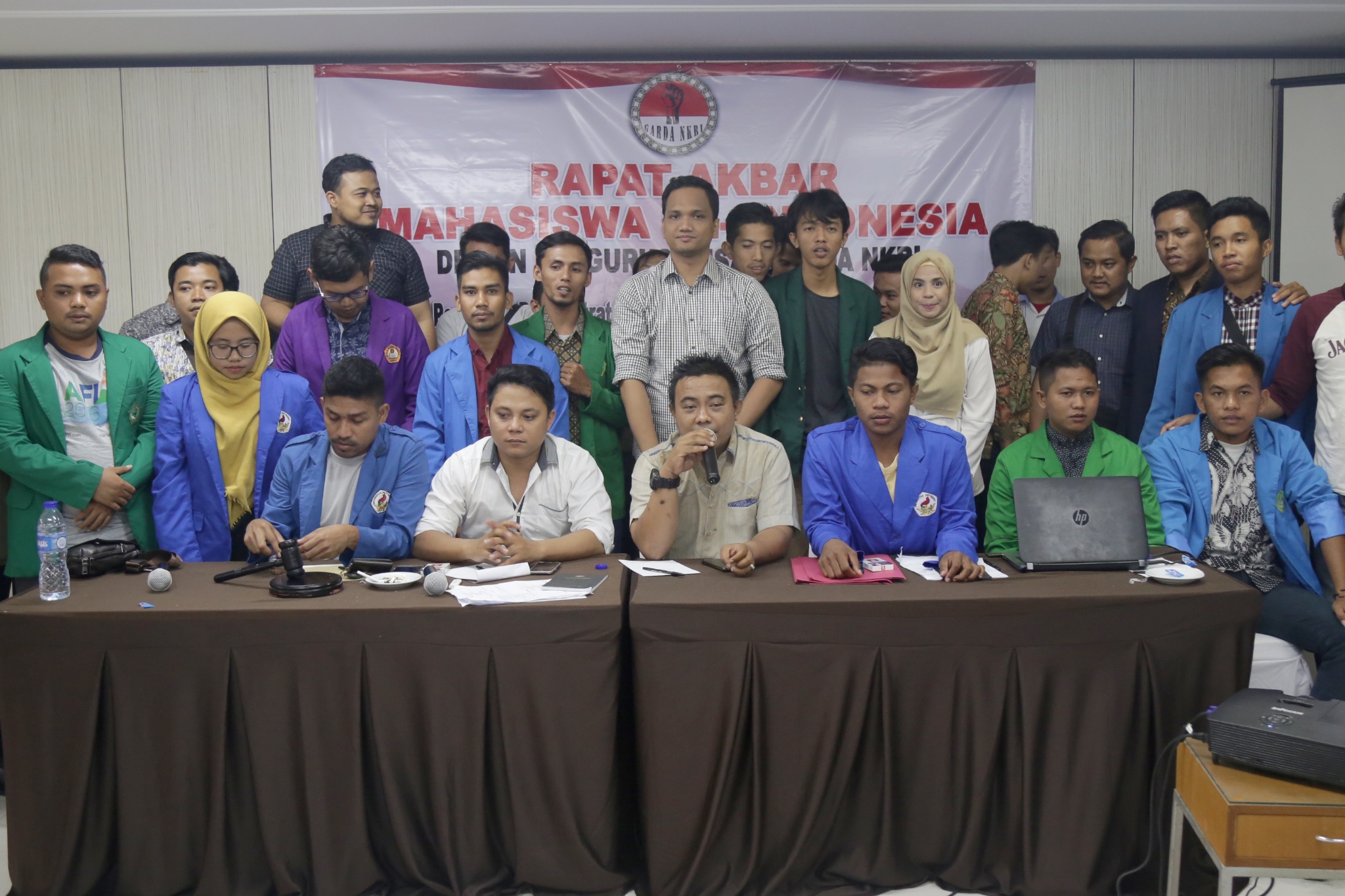 Ketua Umum Garda NKRI Haris Pratama bersama Sekjen Garda NKRI Fino Mongkau didampingi Ketua DPD Garda NKRI Maluku Zen Lelang Wayang, Kabid Politik DPD NKRI Maluku Sugiarto Solissa, Ketua DPD Garda NKRI Gorontalo Raat Toan dan Ketua DPD Sulawesi Utara Ramadhan saat Penutupan Rapat Akbar Mahasiswa Se – Indonesia Dewan Pengurus Pusat Garda NKRI bertema “Peran dan Posisi Strategis Mahasiswa dalam Politik Nasional” di Jakarta, Sabtu (6/10). Garda NKRI menyatakan sikap dengan resmi untuk mendukung Penuh dan bulat Bapak Ir. Joko Widodo sebagai Presiden dan Bapak KH. Ma’ruf Amin Sebagai Wakil Presiden Republik Indonesia Periode 2019-2024. AKTUAL/Tino Oktaviano