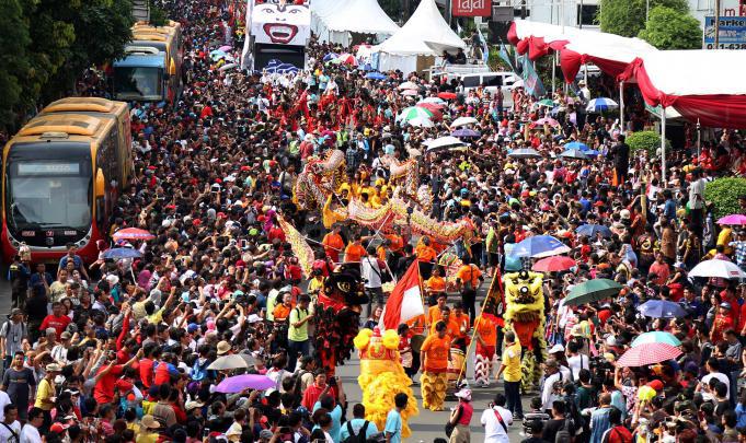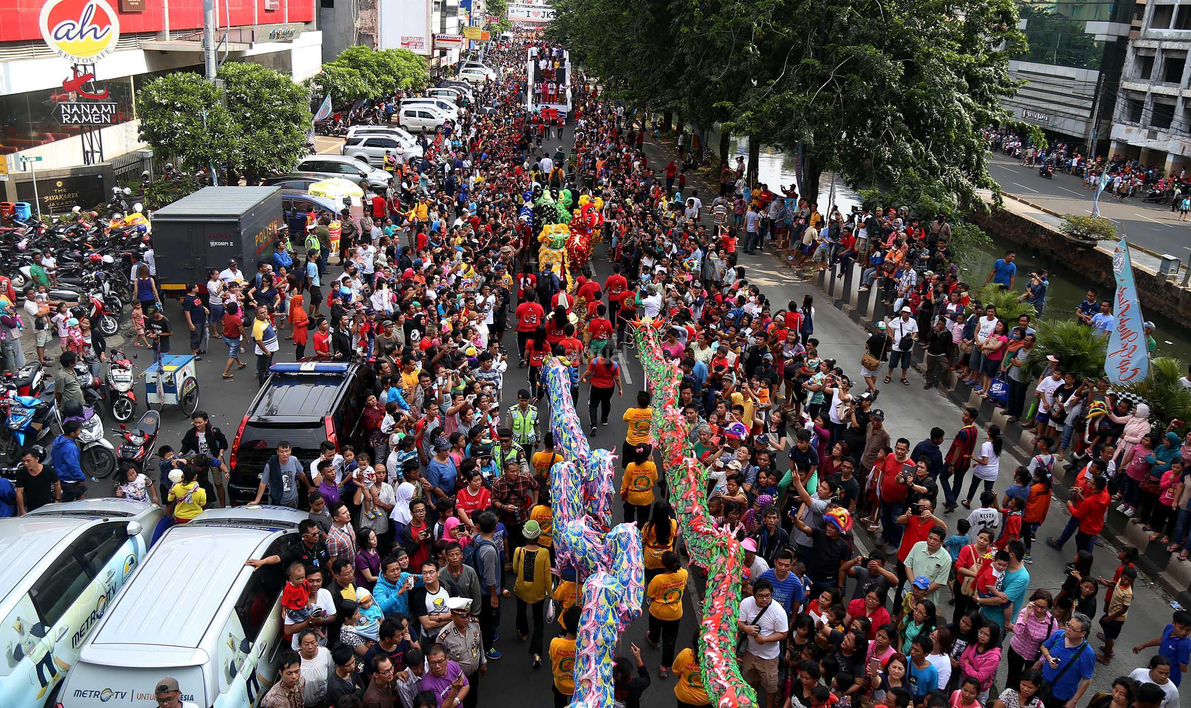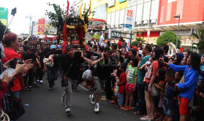 Tampak Menko PMK Puan Maharani dan Ketua DPR Ade Komarudin menghadiri puncak acara Cap Go Meh yang dilaksanakan Jalan Gajah Mada, Glodok, Jakarta, Minggu (21/2/2016). Dalam acara Cap Go Meh ini juga menampilkan 70 Joli yang dikendarai oleh dewa-dewa dari masing-masing klenteng di Glodok, Jabotabek dan beberapa wilayah dari pesisir utara Jawa.