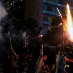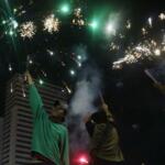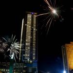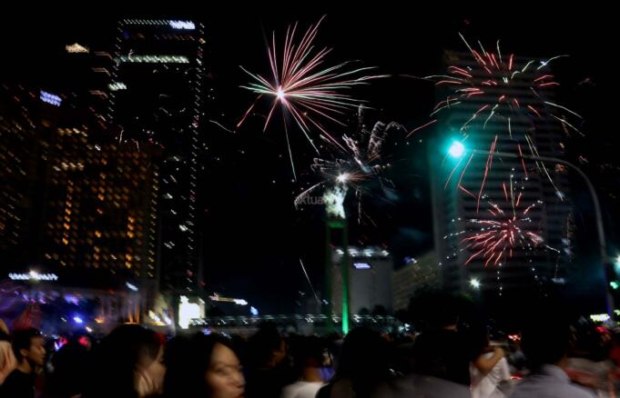 Warga menyalakan kembang api saat malam pergantian tahun baru 2017 di kawasan Bundaran HI, Jakarta, Minggu (1/1/2017). Ribuan warga Jakarta dan sekitarnya memadati kawasan Bundaran HI untuk menyambut Tahun Baru 2017.