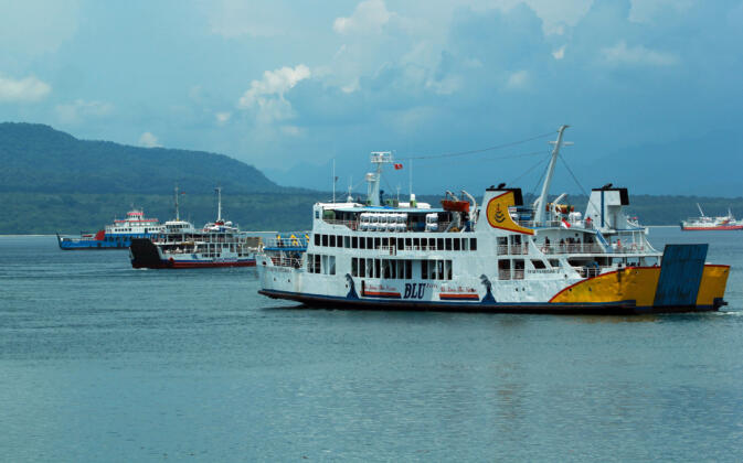 Sejumlah kapal Ferry berlayar di Selat Bali terlihat dari Pelabuhan Ketapang, Banyuwangi, Jawa Timur, Kamis (10/3). Untuk mengurai kepadatan kendaraan yang akan menyeberang ke Pulau Bali, PT ASDP menerjunkan 34 kapal dan mempercepat aktivitas bongkar muat. ANTARA FOTO/Budi Candra Setya/foc/16.