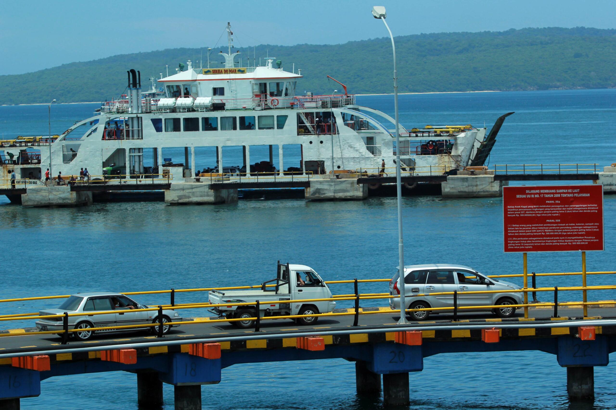 Kapal Ferri melakukan bongkarmuat di Pelabuhan Ketapang, Banyuwangi, Jawa Timur, Kamis (10/3). Untuk mengurai kepadatan kendaraan yang akan menyeberang ke Pulau Bali, PT ASDP menerjunkan 34 kapal dan mempercepat aktivitas bongkar muat. ANTARA FOTO/Budi Candra Setya/foc/16.