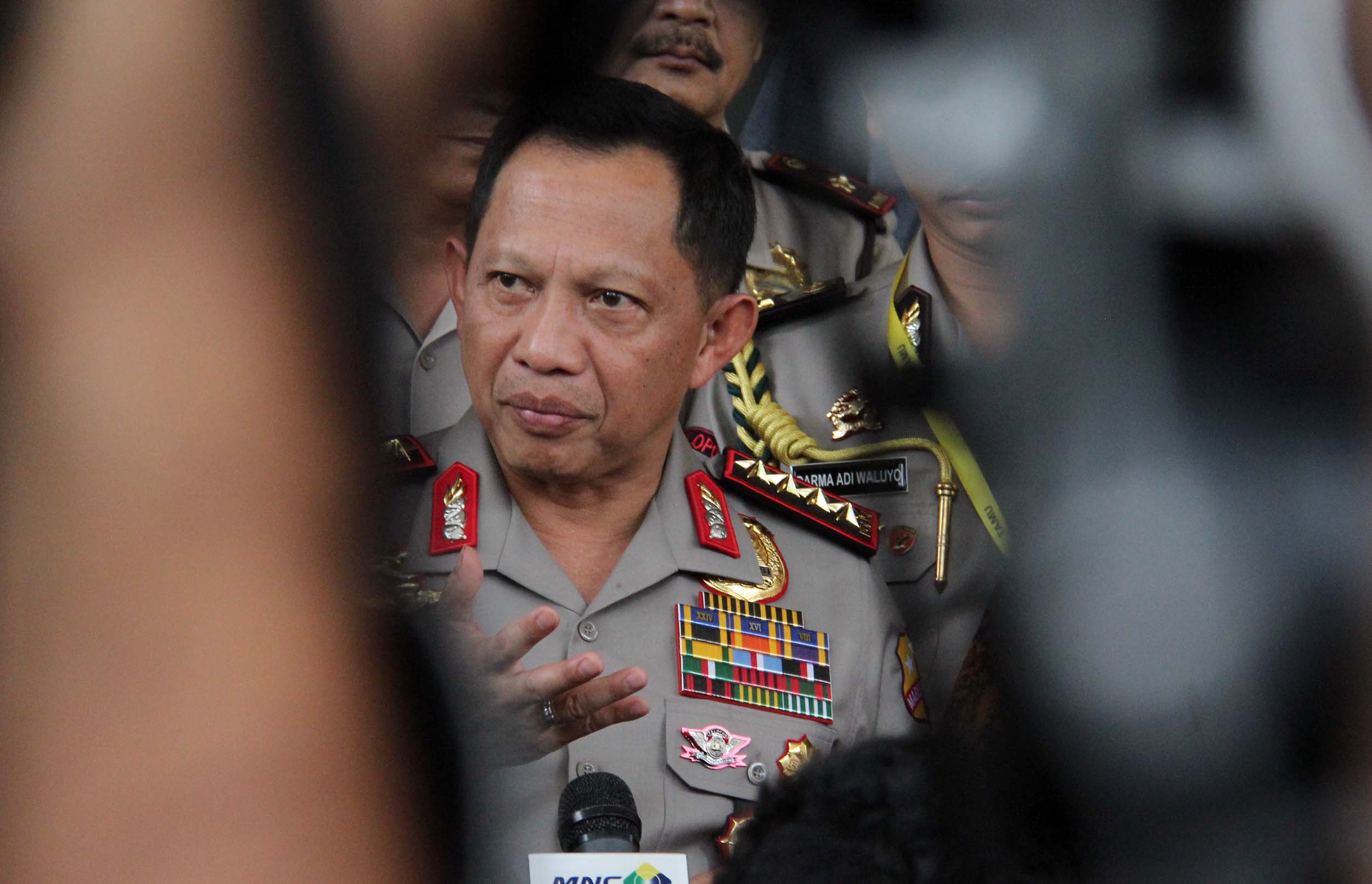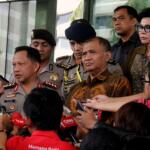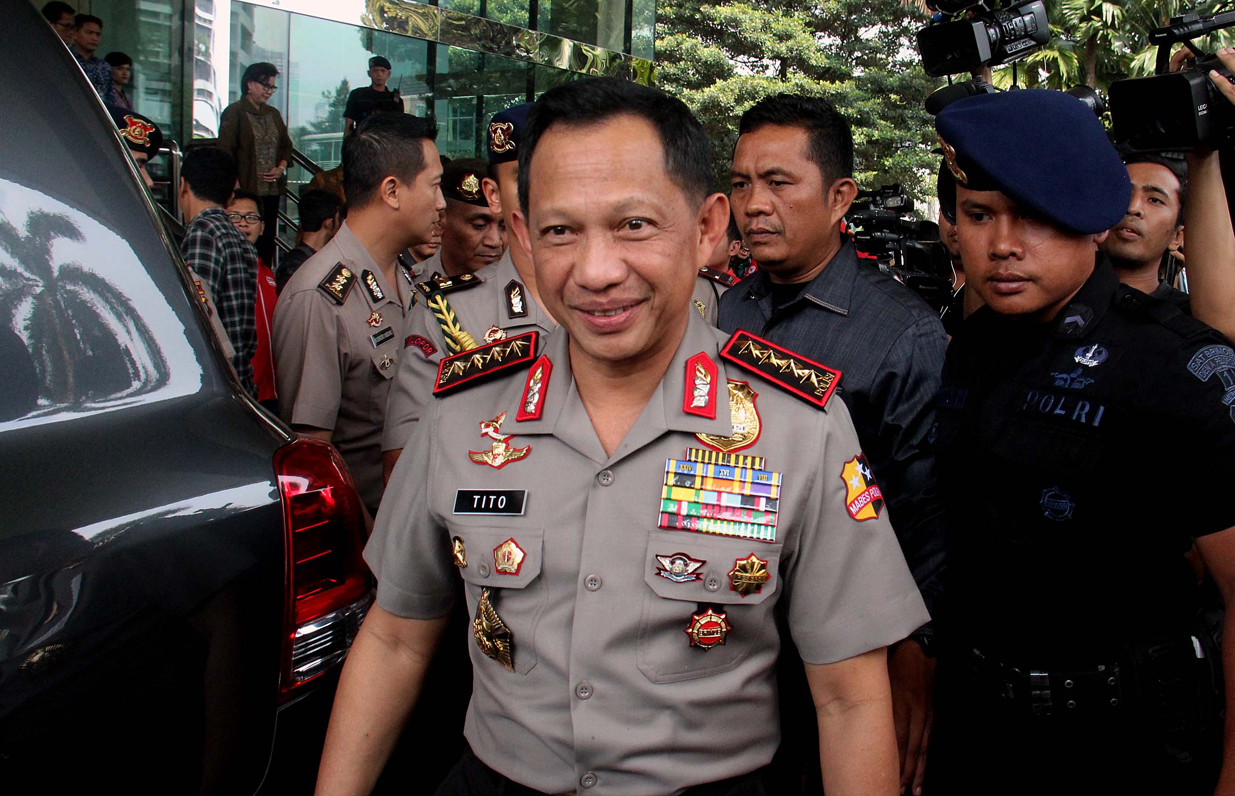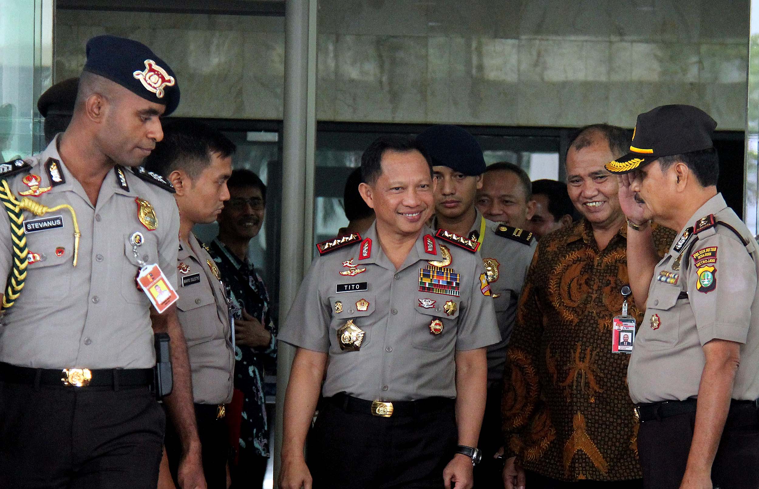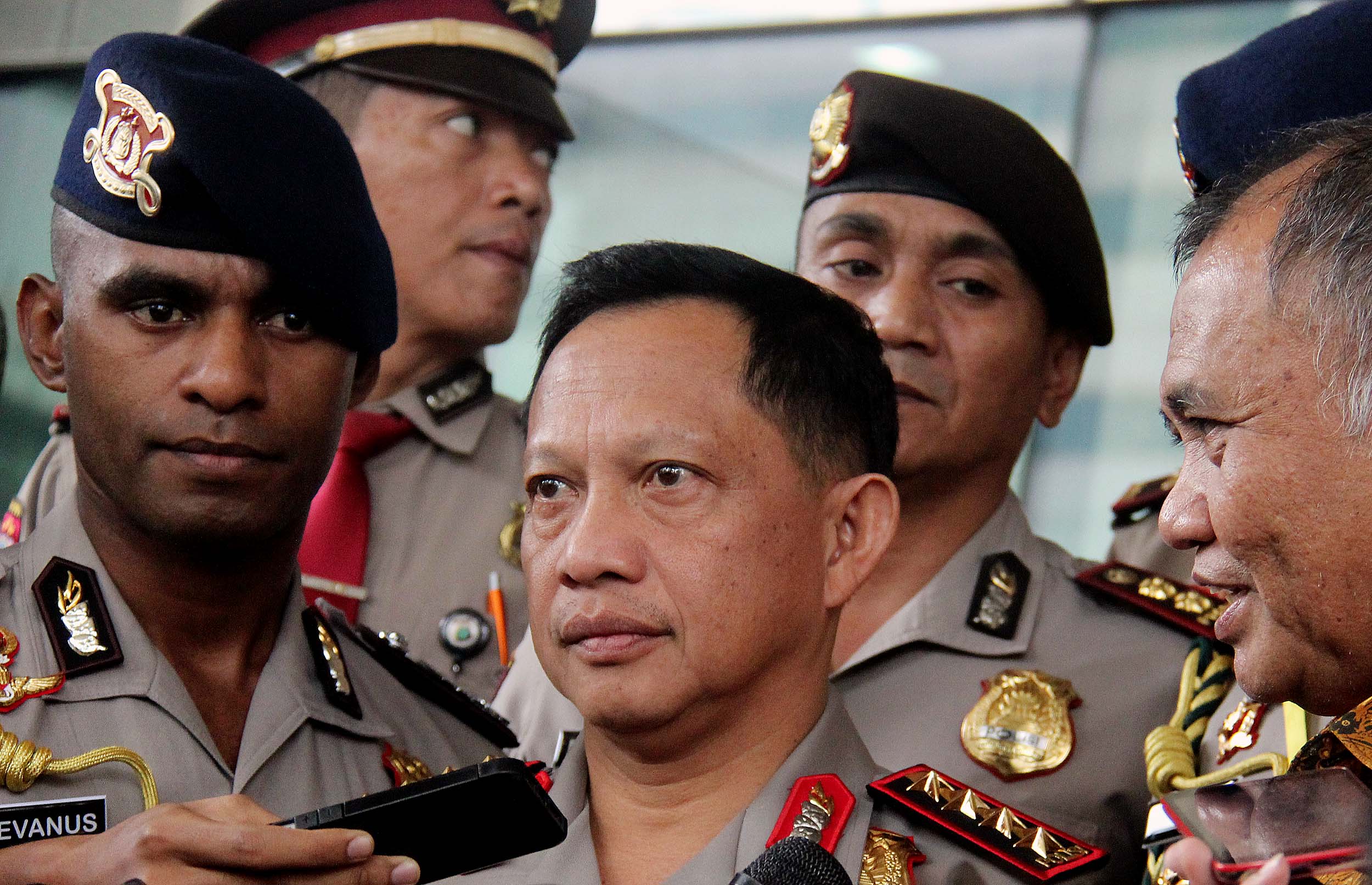Kapolri Jenderal Tito Karnavian, bersama Ketua KPK Agus Rahardjo, memberikan keterangan usai menggelar pertemuan di Gedung KPK, Jakarta, Jumat (19/8/2016). Kunjungan pertama Tito semenjak dilantik menjadi Kapolri ini terkait koordinasi kedua lembaga terkait penegakan hukum.