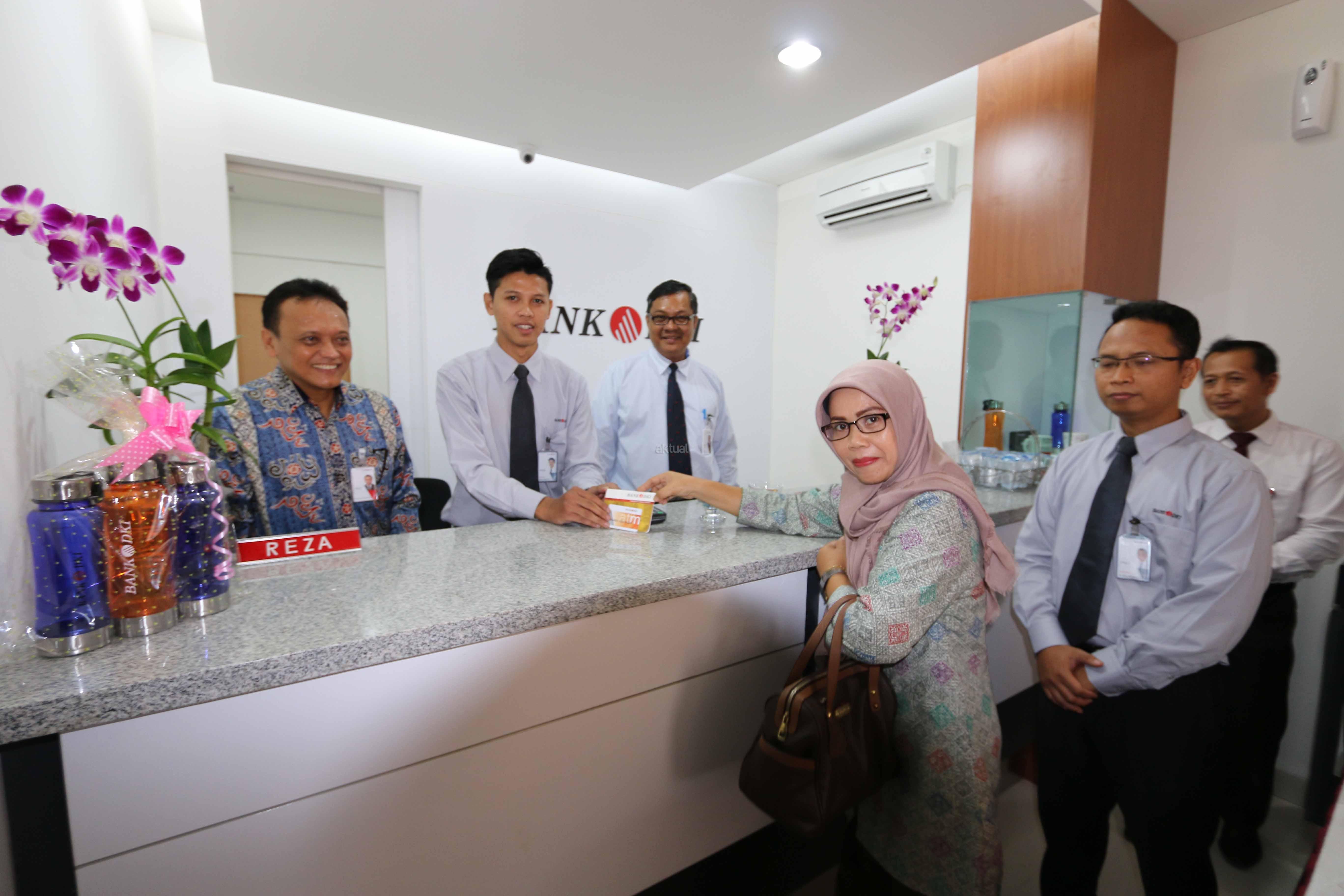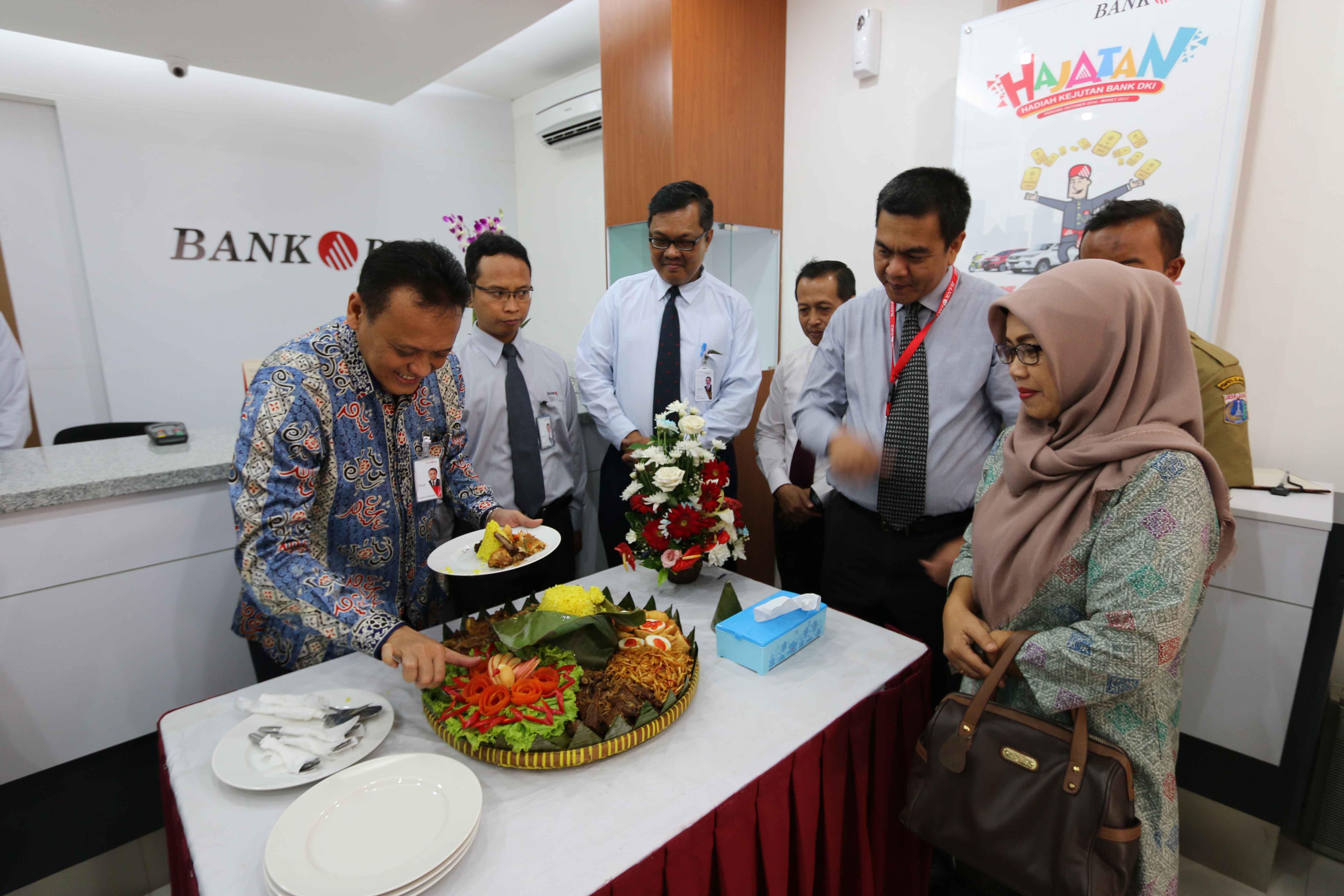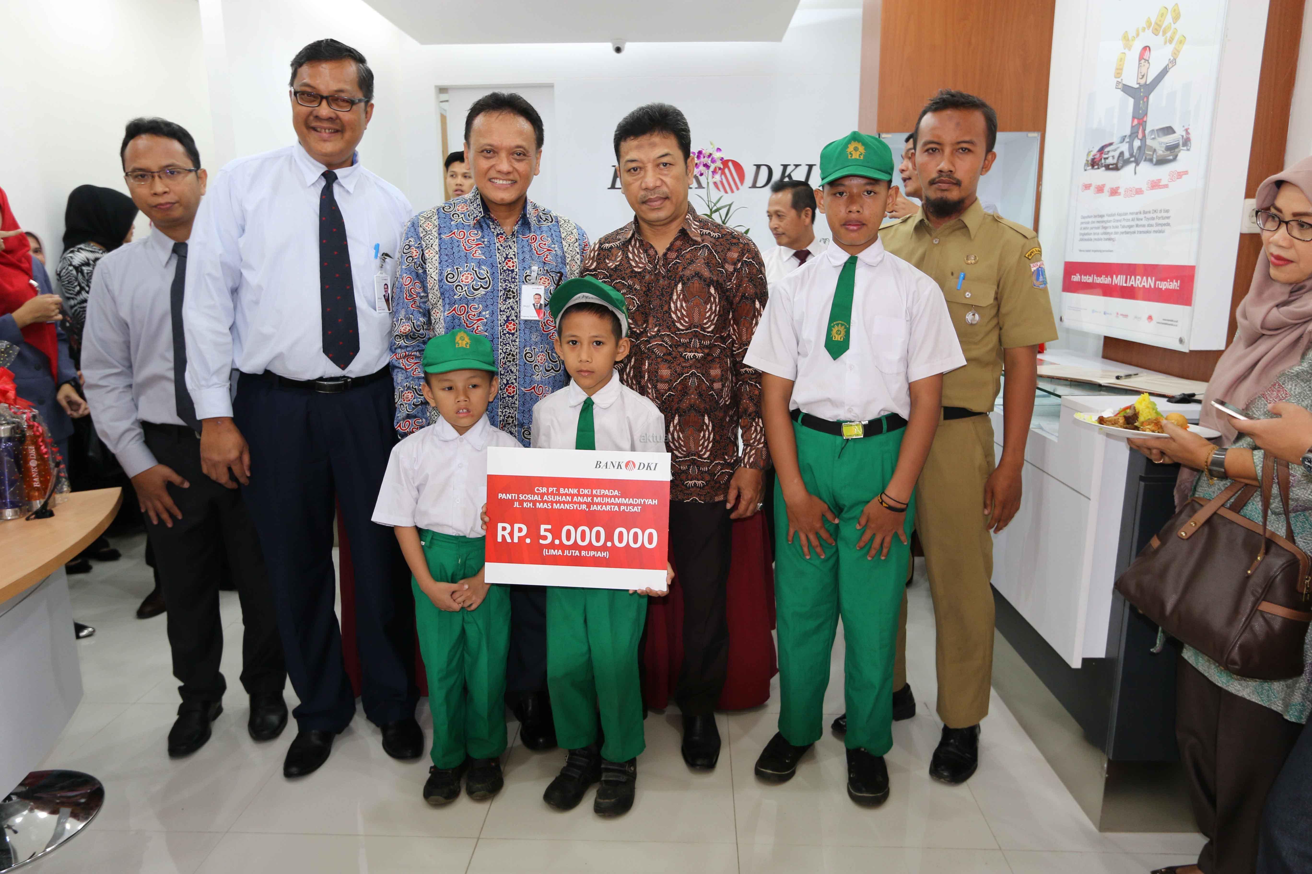 Direktur Teknologi & Operasional PT Bank DKI Priagung Suprapto (kiri) memberikan bantuan kepada Panti Sosial Asuhan Anak Muhammadiyah disela-sela Peresmian Kantor Kas (KK) Bank DKI Tanah Abang Auri di Jakarta, Selasa (22/11/2016). Bank DKI terus kembangkan jaringan, per November 2016 telah memiliki 267 kantor layanan yang terdiri dari 33 kantor cabang konvensional, 3 cabang syariah, 61 kantor cabang pembantu, 12 cabang pembantu syariah, 92 kantor kas konvensional, 6 kantor kas syariah dan 46 payment point. AKTUAL/Eko S Hilman