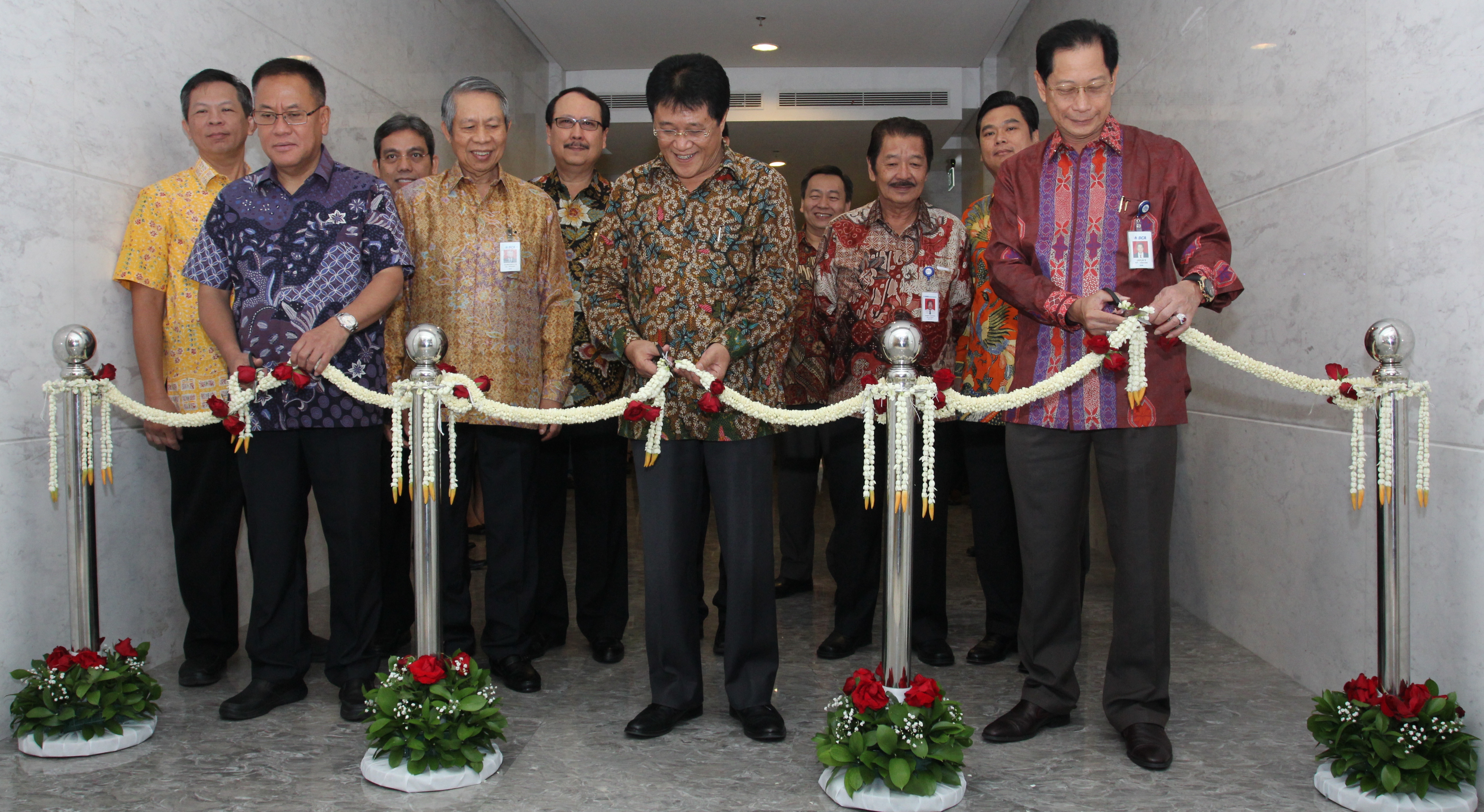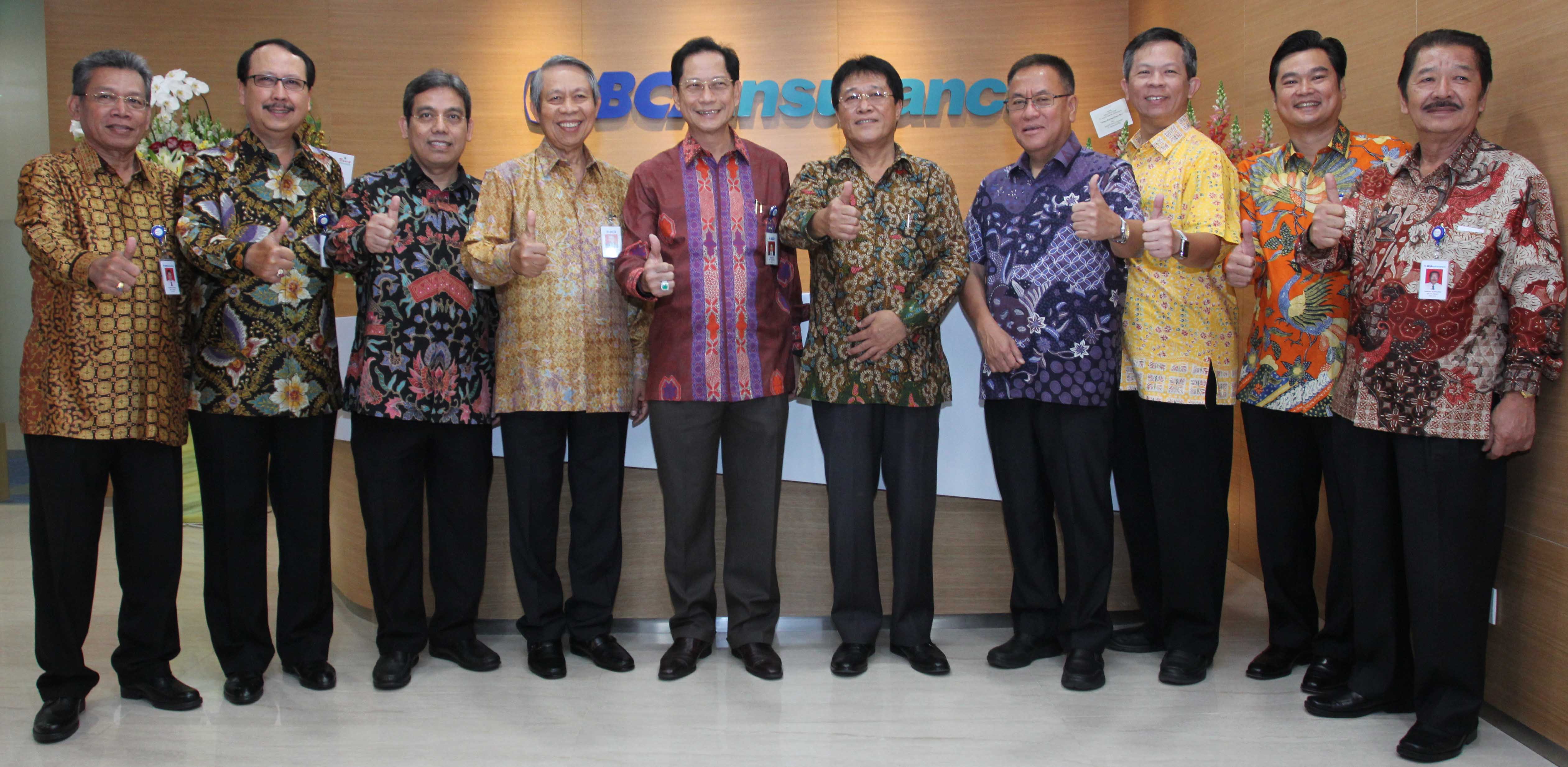 Presiden Direktur PT Bank Central Asia Tbk, Jahja Setiaatmadja (kelima dari kiri)) bersama Direktur Utama PT Asuransi Umum BCA (BCA Insurance), Hariyanto (kelima dari kanan) dan Presiden Direktur BCA Finance, Roni Haslim (keempat dari kanan) disaksikan jajaran manajemen BCA, BCA Insurance, dan perusahaan anak BCA berfoto bersama usai peresmian Kantor Pusat BCA Insurance yang baru di Gedung Sahid Sudirman Center,Jakarta Rabu (3/8).Kehadiran kantor pusat ini diharapkan mampu untuk mendorong seluruh keluarga besar BCA Insurance dalam memberikan pelayanan terbaik kepada para nasabah. Saat ini, BCA Insurance telah melayani nasabah melalui 19 kantor cabang maupun perwakilan yang tersebar di seluruh Indonesia.