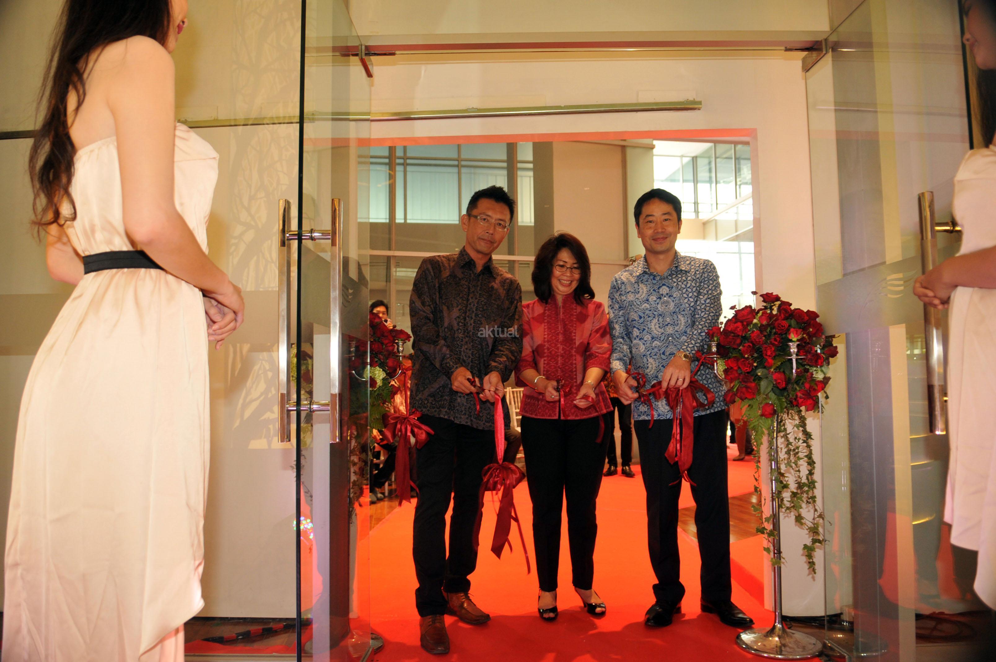Wakil President Director Itochu Indonesia Osamu Funaki (kiri) bersama Division Head Commercial Sinar Mas Land Agusmeisin (tengah) dan Country Head of Investment Division Shimizu Corporation Satoshi Arai meresmikan marketing gallery Aerium Apartemen Permata Buana di Jakarta, Sabtu (20/5/2017). AKTUAL/Eko S Hilman