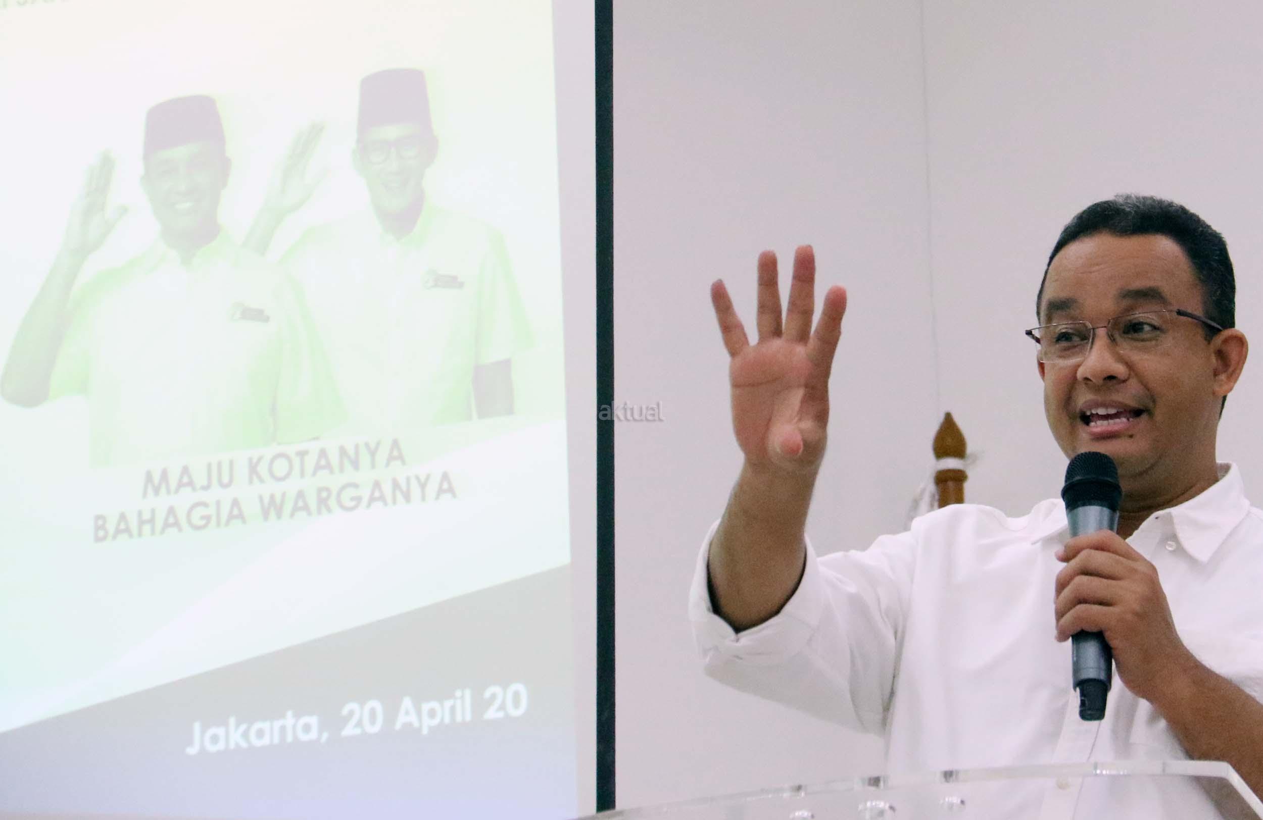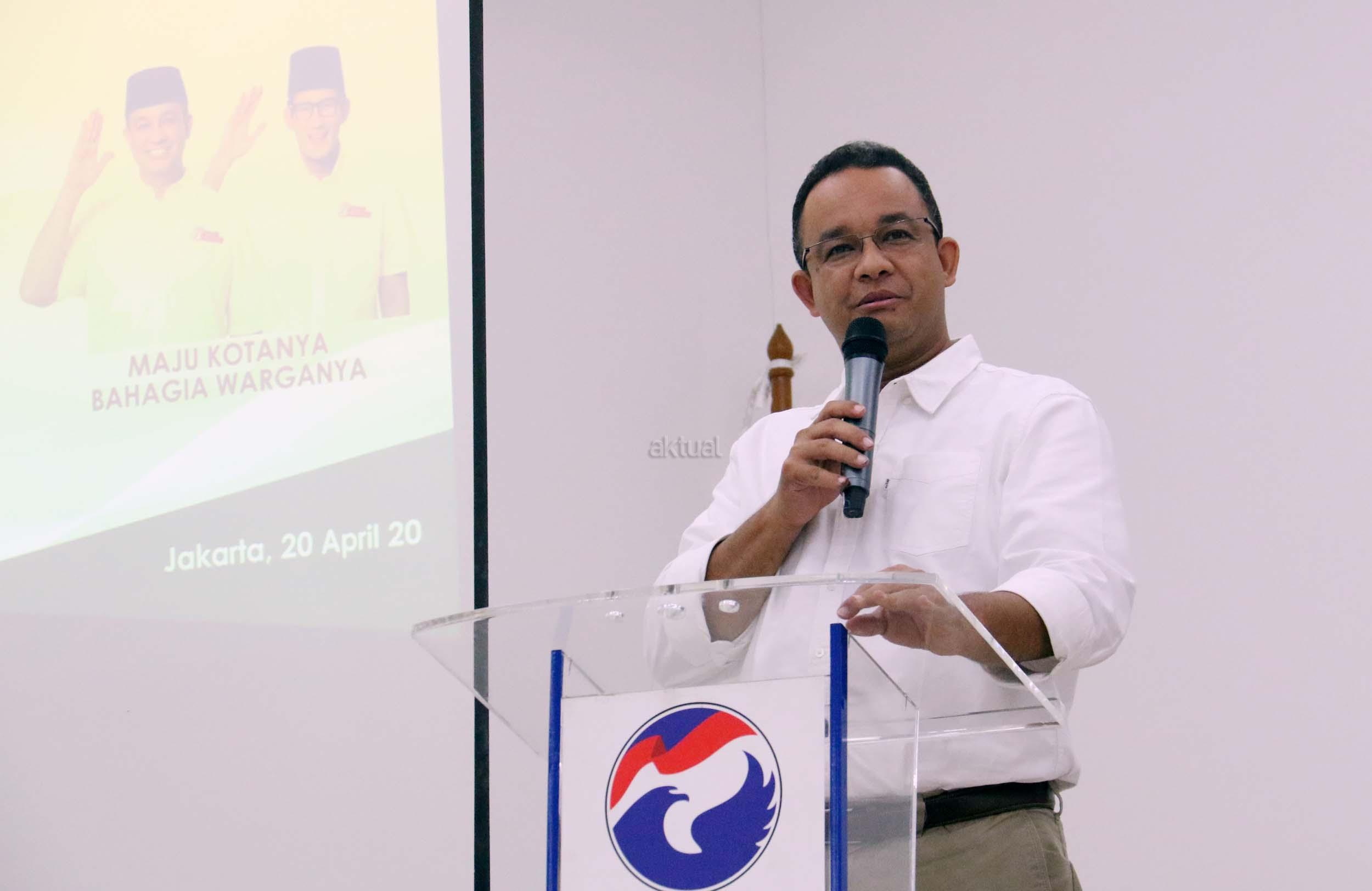 Cagub DKI Jakarta Anies Bawesdan berpidato di DPP Partai Perindo, Jalan Diponegoro, Menteng, Jakarta Pusat, Kamis (20/4/2017). Partai Perindo menggelar syukuran keunggulan Anies-Sandi dari Ahok-Djarot, dalam hitung cepat semua lembaga survei terkait Pilkada DKI Jakarta putaran kedua. AKTUAL/Munzir