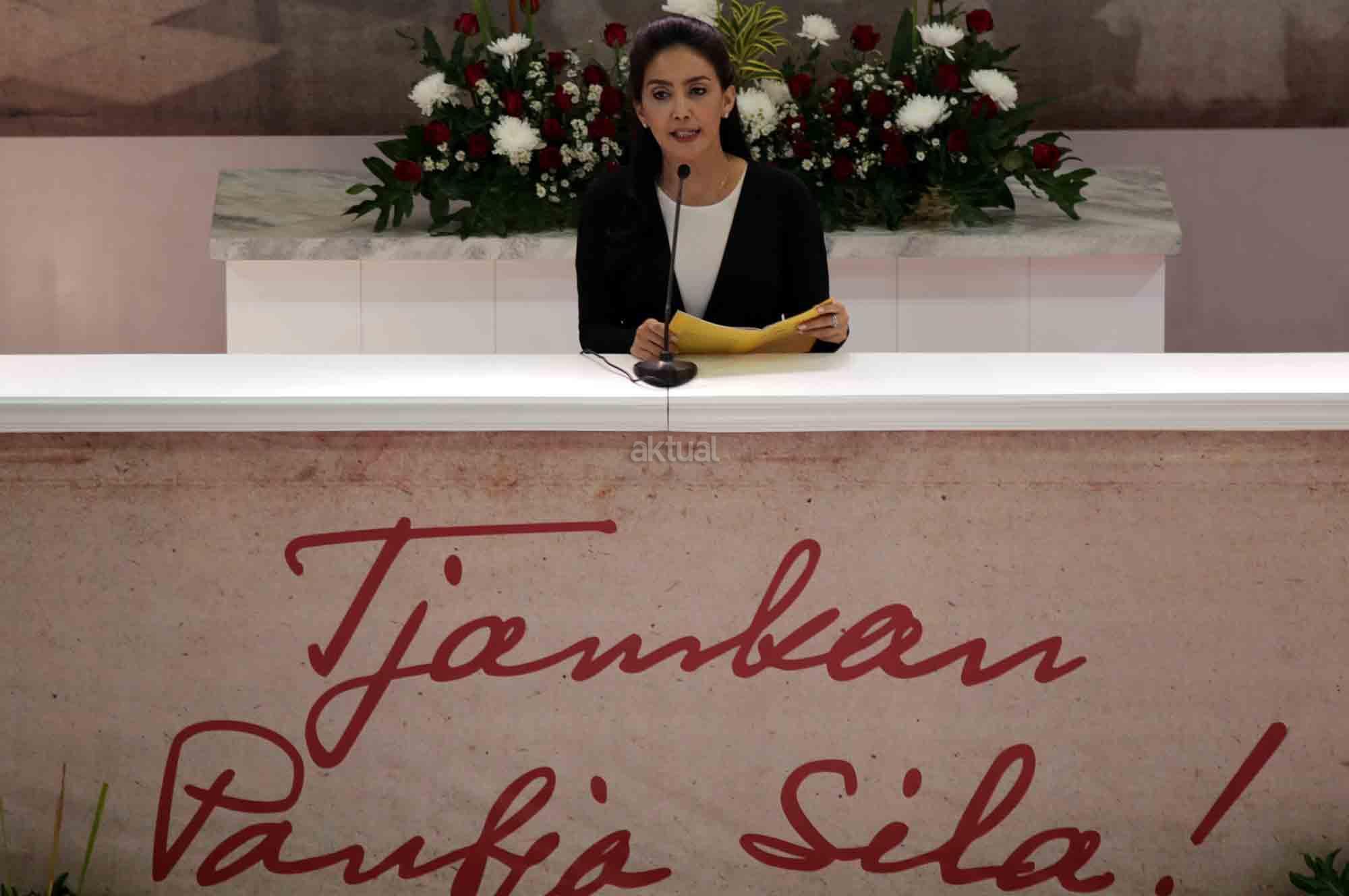 Duta Arsip Nasional sekaligus politikus PDIP Rieke Diah Pitaloka, memberikan sambutan Peringatan 73 Tahun Lahirnya Pancasila dan peluncuran buku di Museum Filateli, Jakarta, Kamis (31/5/18). Dalam Acara tersebut PT Pos Indonesia (Persero) bekerjasama dengan Arsip Nasional Republik Indonesia (ANRI) meluncurkan Prangko Bung Karno di Sidang BPUPK serta Sampul Hari Pertama Peringatan 73 Tahun Lahirnya Pancasila. Dalam acara peringatan Pancasila tersebut juga diluncurkan buku ‘Tjamkan Pantja Sila’: Sistem Filsaafat Pancasila, yang merupakan tulisan tangan Bung Karno tentang makna dan gagasan Ideologi Pancasila. AKTUAL/Tino Oktaviano
