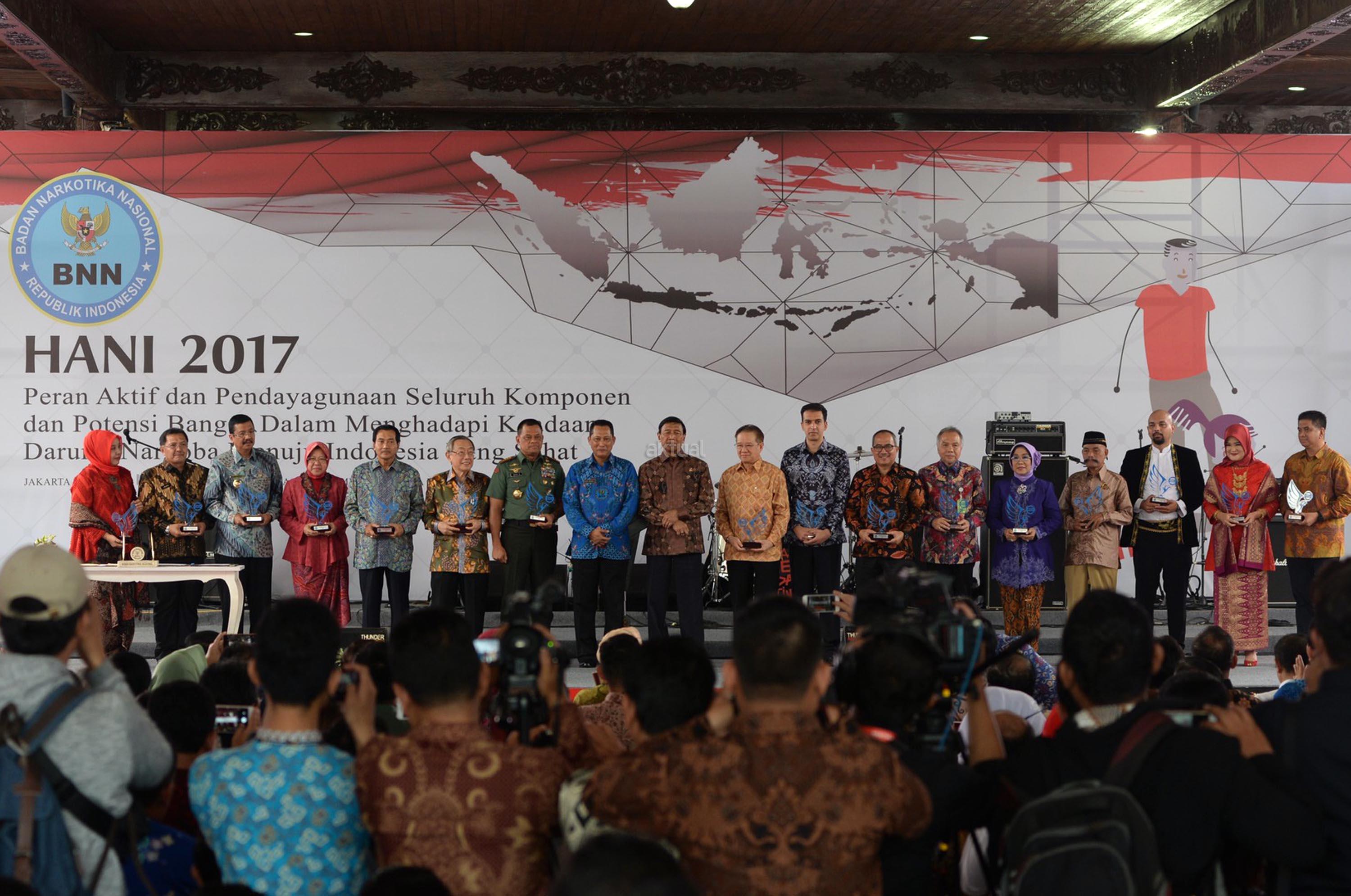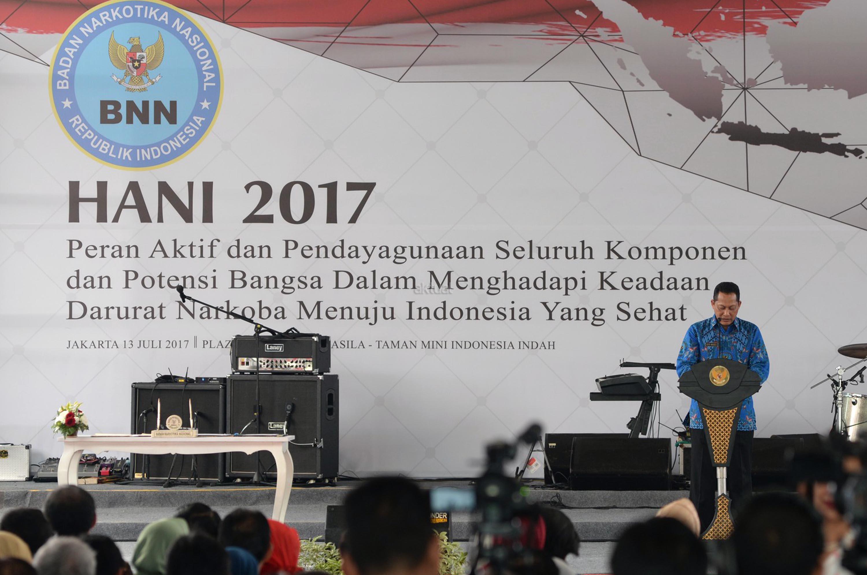 Acara HANI tahun ini mengambil tema “Peran Aktif dan Pendayagunaan Seluruh Komponen dan Potensi Bangsa Dalam Menghadapi Keadaan Darurat Narkoba Menuju Indonesia Yang Sehat”. Selain itu juga Acara Hani 2017 dihadiri oleh Panglima TNI Gatot Nurmantyo, Ketua DPD Oesman Sapta, Menkopolhukam Wiranto, sertaKepala daerah dan tokoh agama dan masyarakat, Lembaga. AKTUAL/Munzir