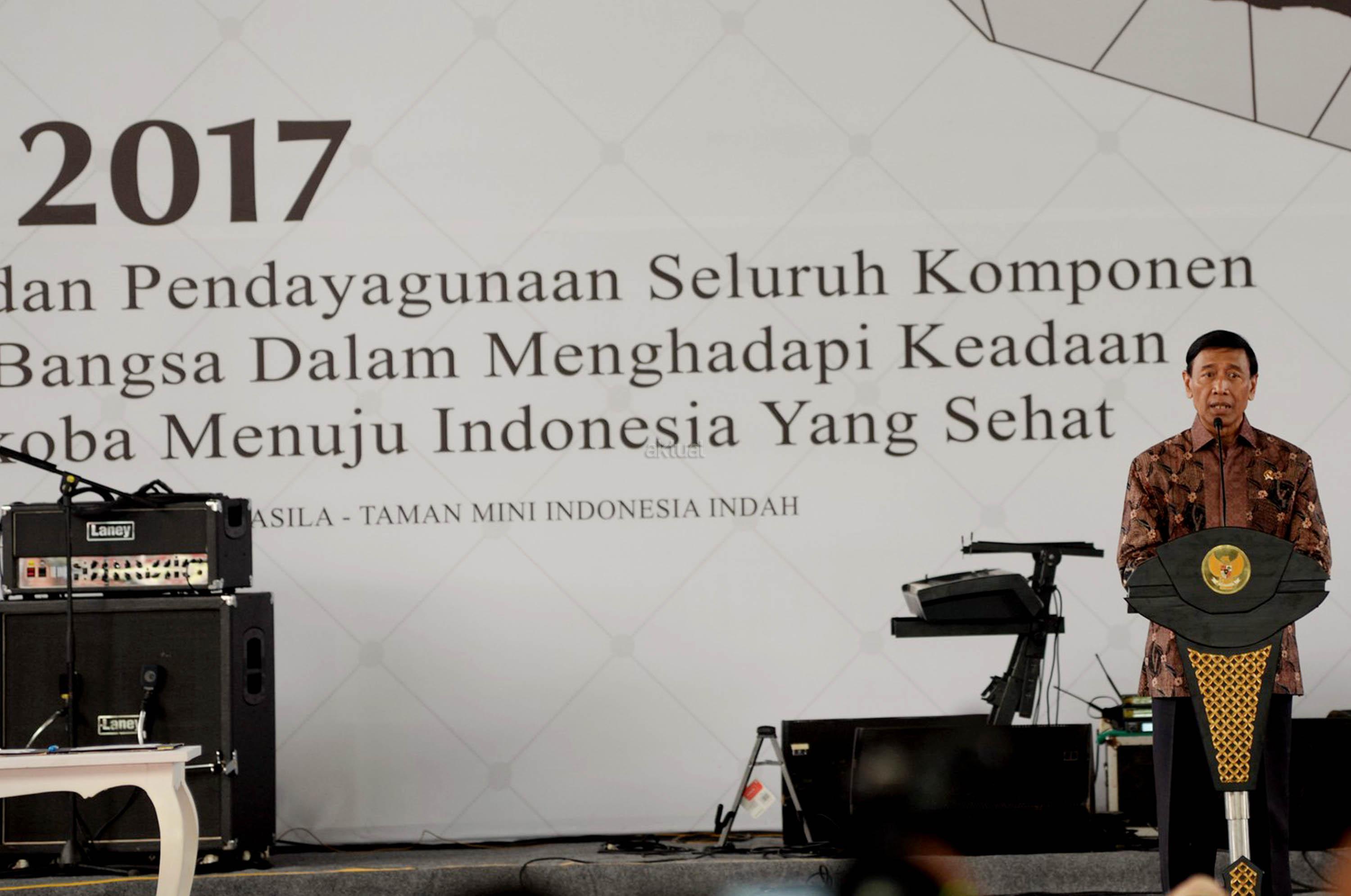 Menko Polhukam Wiranto memberikan sambutan dalam peringatan HANI, Jakarta, Kamis (13/7/2017). Peringatan HANI 2017 bertema, “Listen First: Listening to Children and Youth is The First Step to Help Them Grow Healthy and Safe”. AKTUAL/Munzir