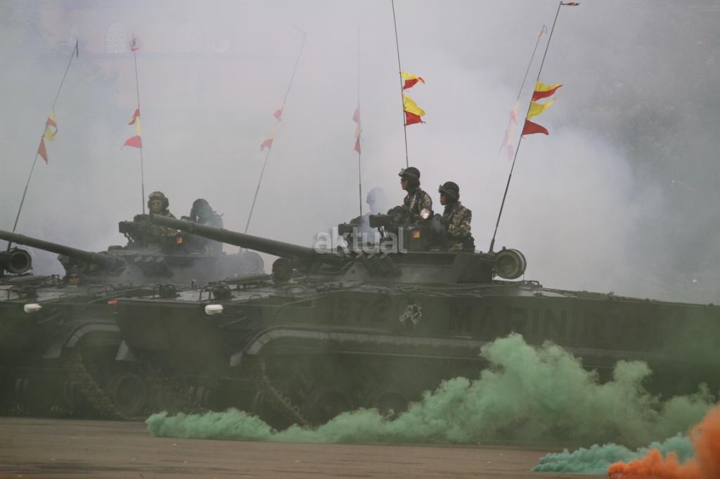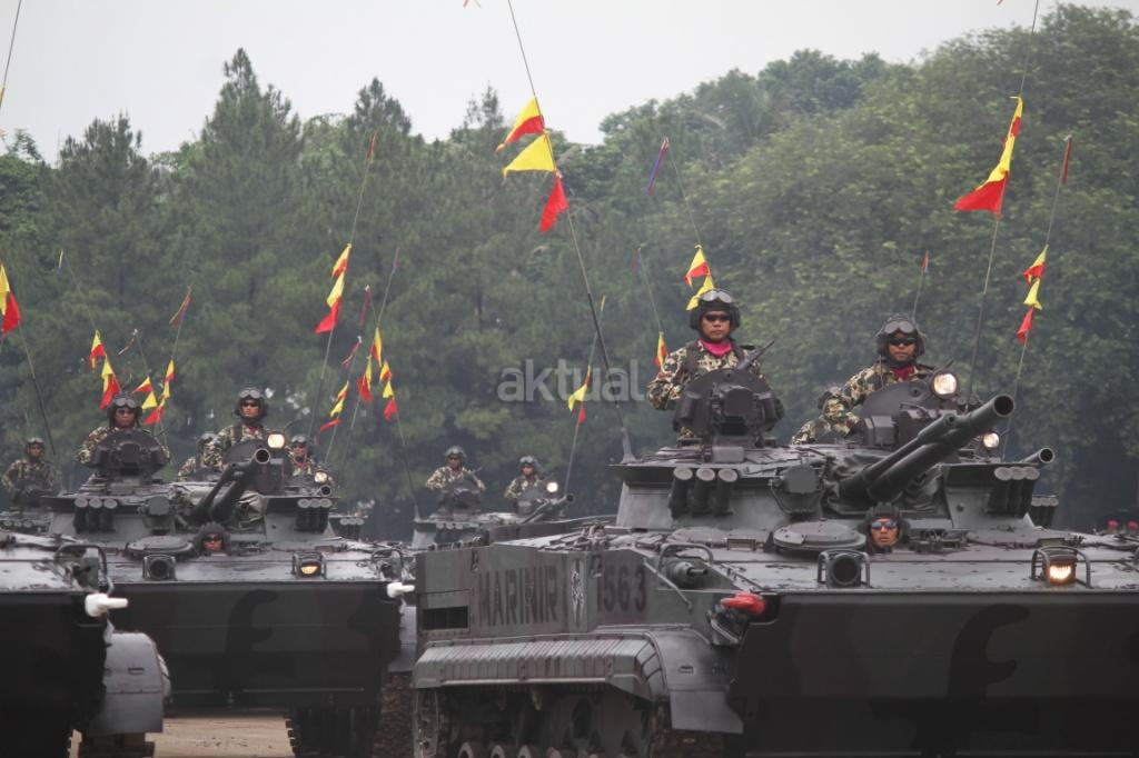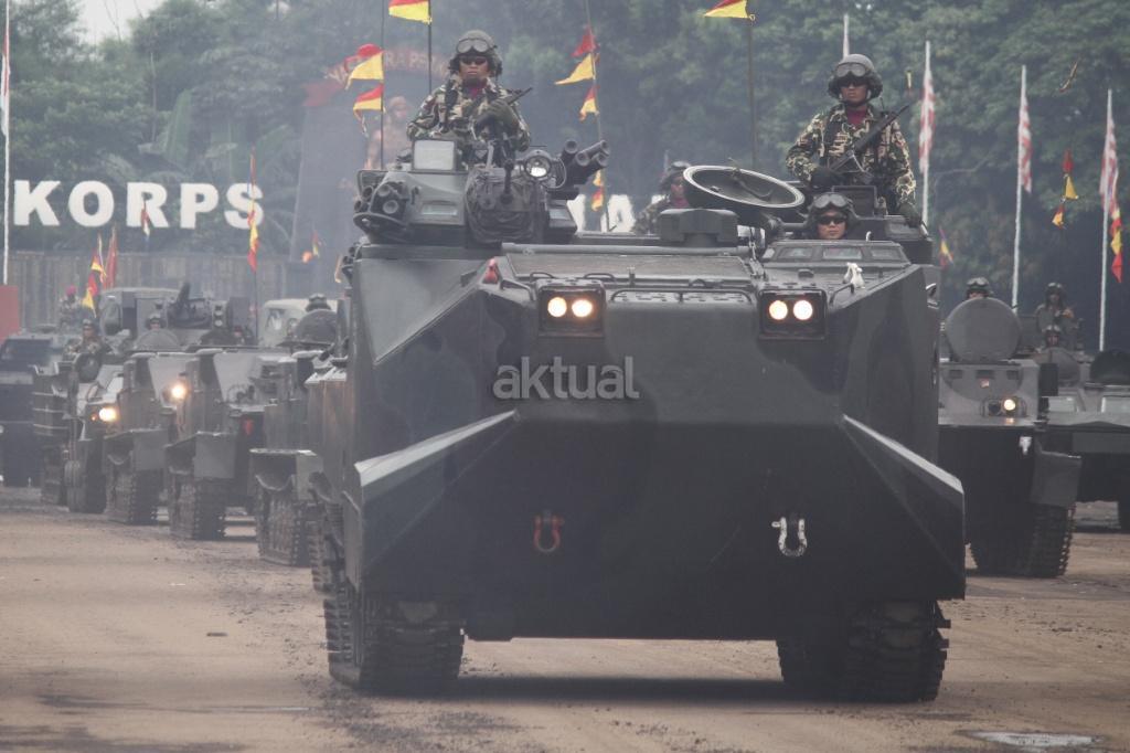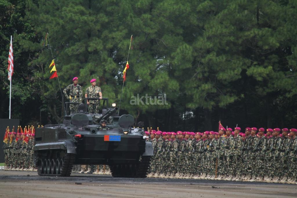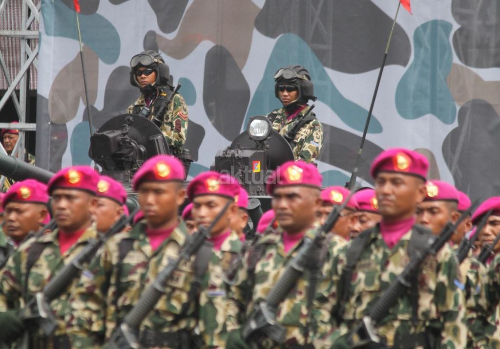 Pasukan saat mengikuti peringatan Hari Ulang Tahun (HUT) ke-72 Korps Marinir TNI AL di Lapangan Apel Brigif 2 Cilandak, Jakarta, Rabu (15/11). HUT bertema ‘Marinir Prajurit Pejuang dan Profesional’ ini diikuti 3.500 prajurit. AKTUAL/Tino Oktaviano