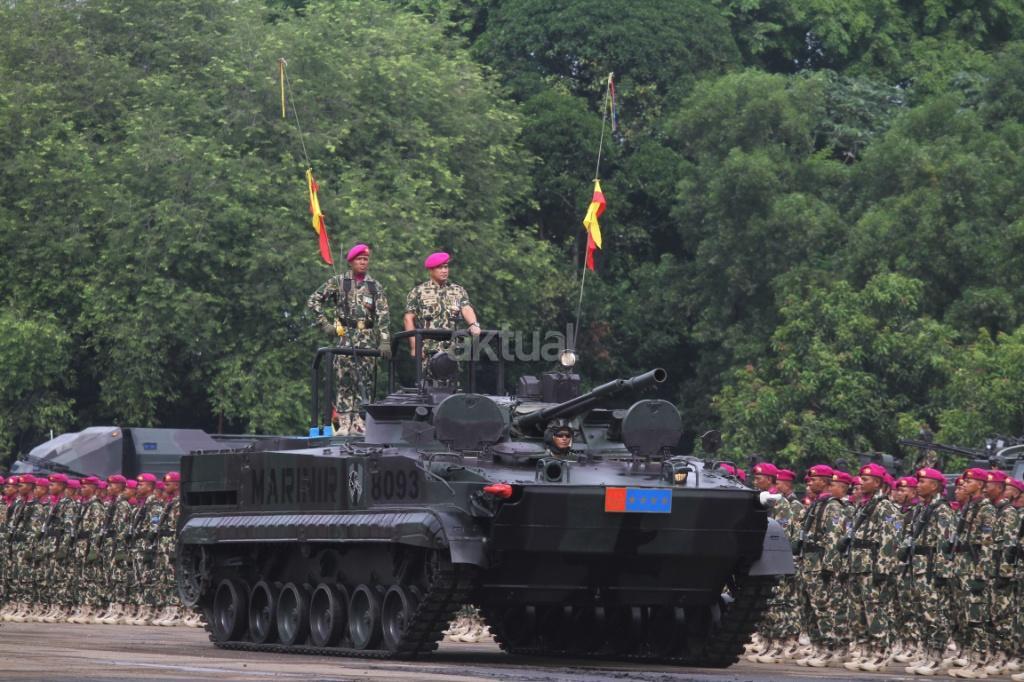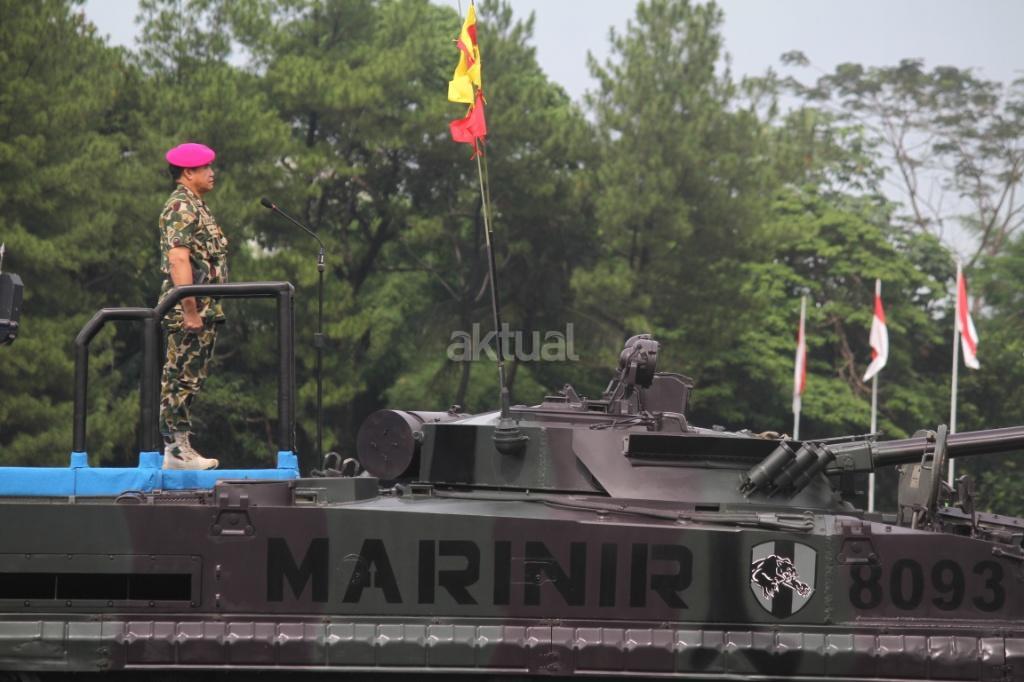 Laksama TNI, Ade Supandi, melakukan cek kesiapan saat mengikuti peringatan Hari Ulang Tahun (HUT) ke-72 Korps Marinir TNI AL di Lapangan Apel Brigif 2 Cilandak, Jakarta, Rabu (15/11). HUT bertema ‘Marinir Prajurit Pejuang dan Profesional’ ini diikuti 3.500 prajurit. AKTUAL/TAINO Oktaviano