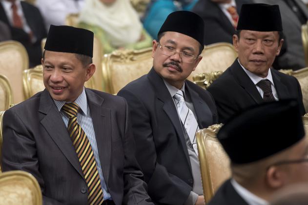Kepala BNPT Komjen Pol. Tito Karnavian (kiri), Ketua Ombudsman Amzulian Rifai (tengah) dan Kepala BIN Sutiyoso (kanan) menghadiri acara Peringatan Nuzulul Quran Tahun 1437 H/2016 M Tingkat Nasional di Istana Negara, Jakarta, Selasa (21/6). Dalam peringatan tersebut disi oleh uraian hikmah Nuzulul Quran dengan tema Al-Quran bagi Peningkatan Kualitas Sumber Daya Manusia oleh Ketua Umum Pengurus Besar Al Washliyah Yusnar Yusuf Rangkuti. ANTARA FOTO/Widodo S. Jusuf/Spt/16.