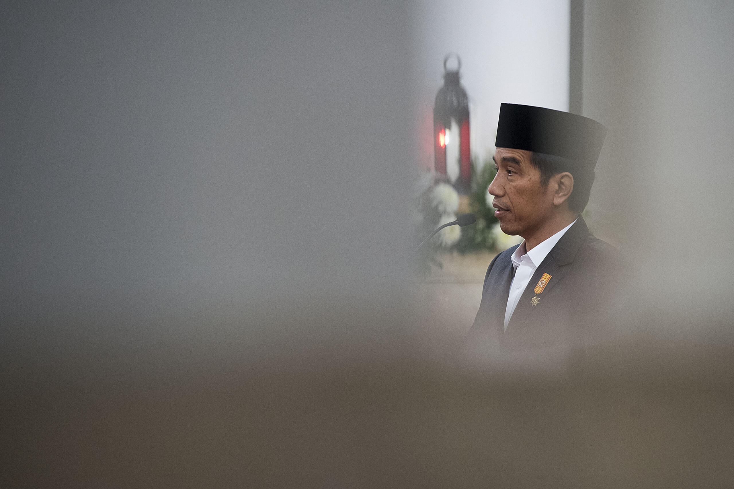 Presiden Joko Widodo menyampaikan sambutannya pada acara Peringatan Nuzulul Quran Tahun 1437 H/2016 M Tingkat Nasional di Istana Negara, Jakarta, Selasa (21/6). Dalam peringatan tersebut disi oleh uraian hikmah Nuzulul Quran dengan tema Al-Quran bagi Peningkatan Kualitas Sumber Daya Manusia oleh Ketua Umum Pengurus Besar Al Washliyah Yusnar Yusuf Rangkuti. ANTARA FOTO/Widodo S. Jusuf/Spt/16.
