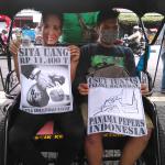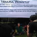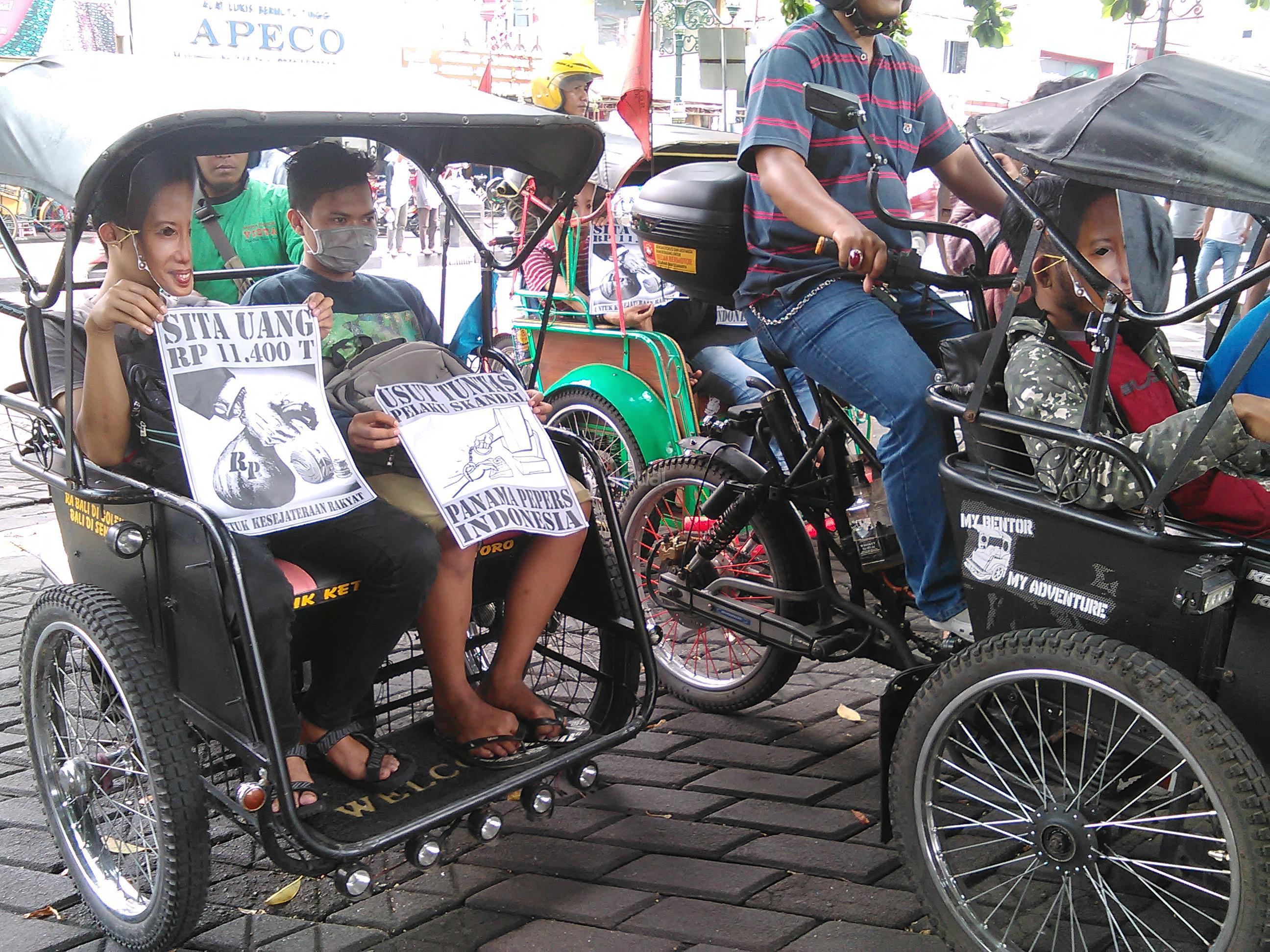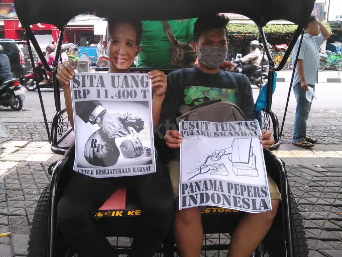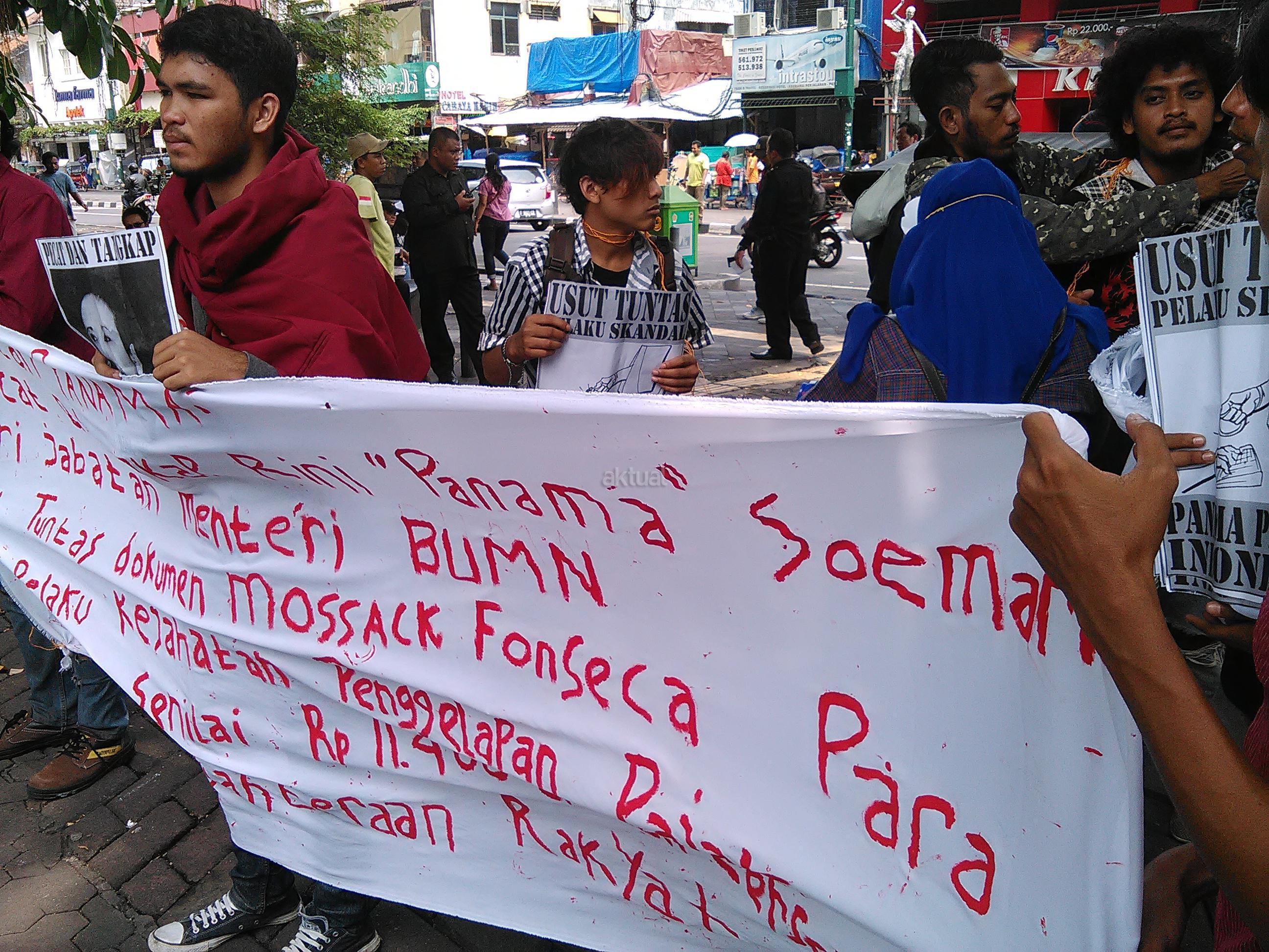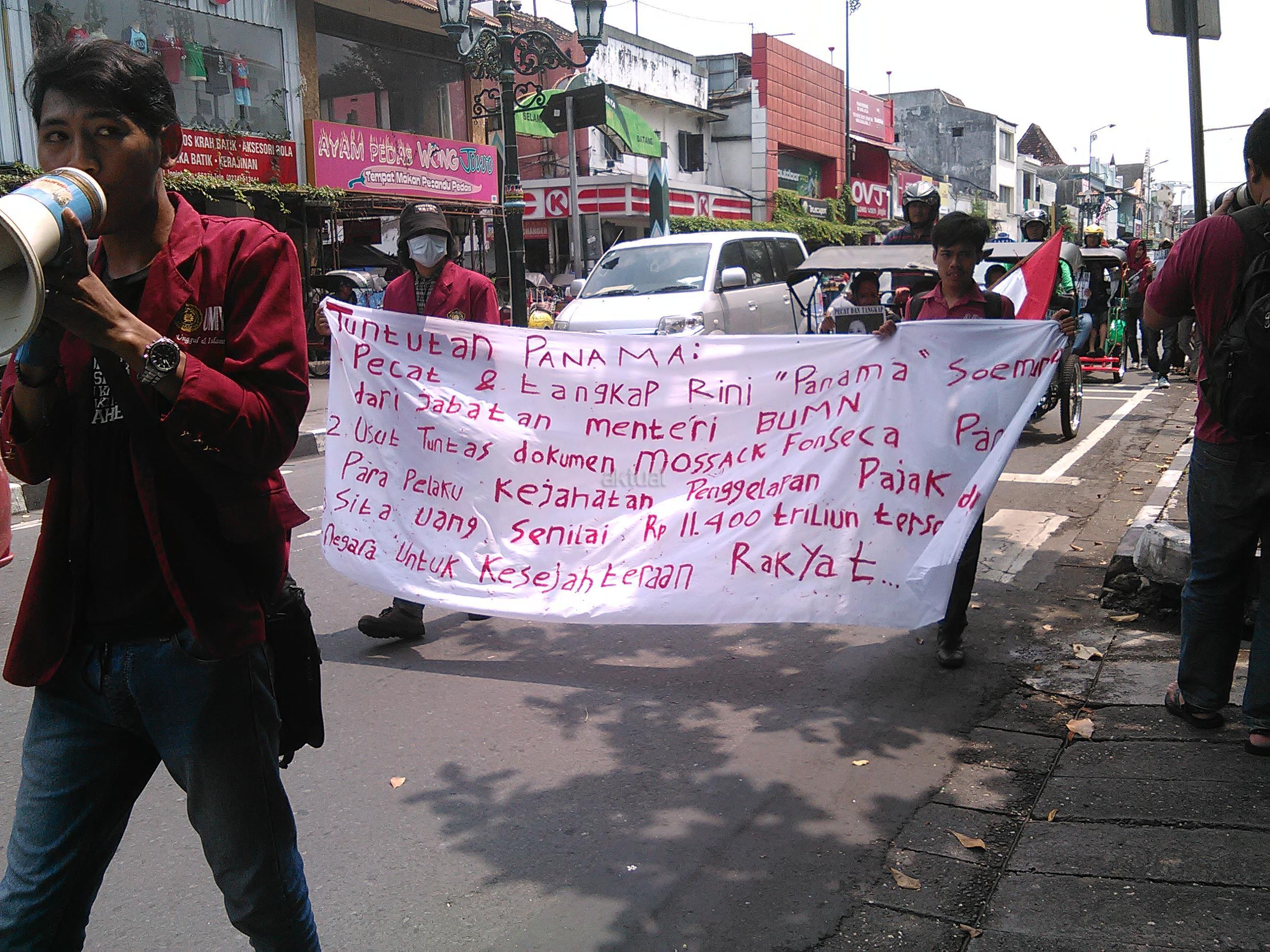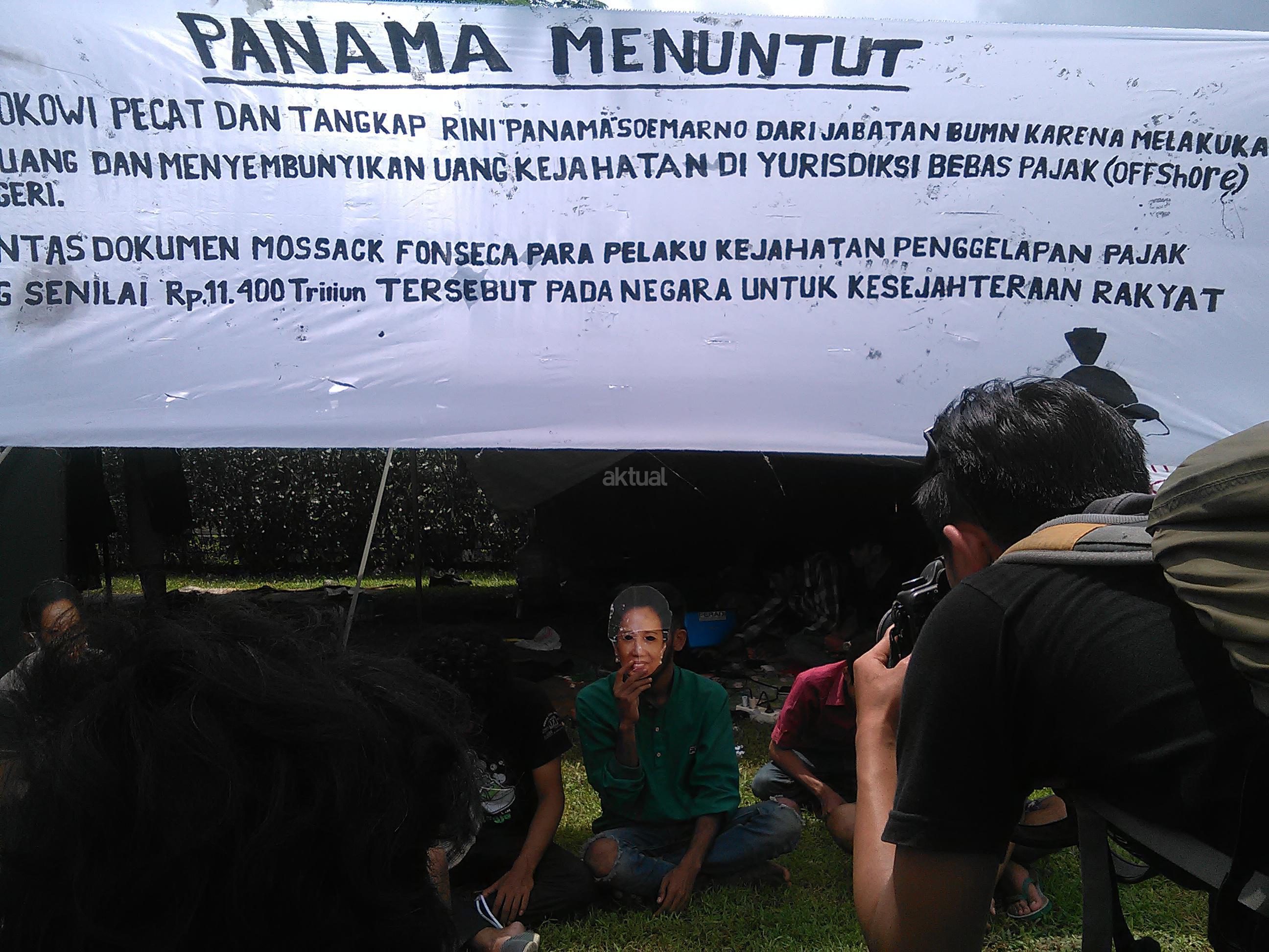 Mahasiswa yang tergabung dalam Aliansi Panama (Persatuan Aksi Nasional Mahasiswa) membawa poster Menteri BUMN Rini Soemarno dalam rangkaian aksi mogok makan untuk meminta Presiden Joko Widodo memecat Menteri BUMN, Rini Soemarno di Yogyakarta, Jumat (15/4). Tepat di Hari Pendidikan, 2 Mei 2016 mendatang, massa mahasiswa dari 45 kota, 178 kampus, akan memasuki Jakarta serentak melakukan aksi besar-besaran menuntut Presiden Jokowi menurunkan Rini Soemarno dari jabatannya sebagai Menteri BUMN. AKTUAL/NELSON NAFIS