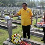 Ketua Umum Partai Golkar Setya Novanto didampingi Istri melakukan tabur bunga di Taman Makam Pahlawan (TMP) Kalibata, Jakarta Selatan, Kamis (20/10). Ziarah ke makam para pahlawan ini dalam rangka memperingati HUT Partai Golkar ke 52. Pada kesempatan tersebut, Setya Novanto mengingatkan pentingnya menghormati jasa para pahlawan. Sebab, para pahlawan berjuang dengan penuh keihklasan demi memerdekakan Indonesia dari cengkeraman penjajahan. AKTUAL/Tino Oktaviano