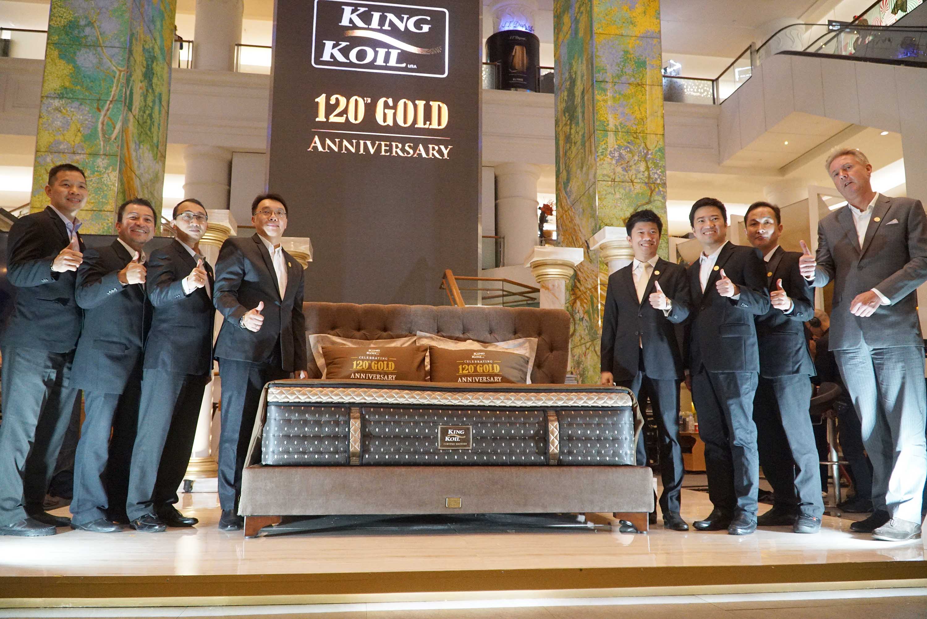 President Director of PT Duta Abadi Primantara, Anthony Setiawan bersama Sales & Marketing Director PT Duta Abadi Primantara Aria Hermawan foto bersama disela peluncuran produk baru dan perayaan perjalanan 120 tahun King Koil di Jakarta, Rabu (12/12). Di usia emasnya, King Koil® kini telah dibuat di lebih dari 30 negara dan memiliki distributor di lebih dari 90 negara. Sebagai wujud terima kasih kepada para pengguna setianya, King Koil® meluncurkan 120th Gold Limited Edition, sebuah mattress eksklusif dalam edisi terbatas. Di Indonesia, 120th Gold Limited Edition hanya diproduksi sebanyak 250 buah dan disertai dengan sertifikat keaslian disetiap pembeliannya. AKTUAL/Eko S Hilman