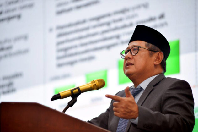 Direktur Utama Bank Syariah Nasional (BSN) Alex Sofjan Noor menyampaikan sambutan usai penyerahan bantuan sosial motor sampah untuk lingkungan pendidikan hijau di sela-sela kuliah umum di Universitas Darusaalam Gontor, Ponorogo, Madiun, Jawa Timur, Kamis (4/12).