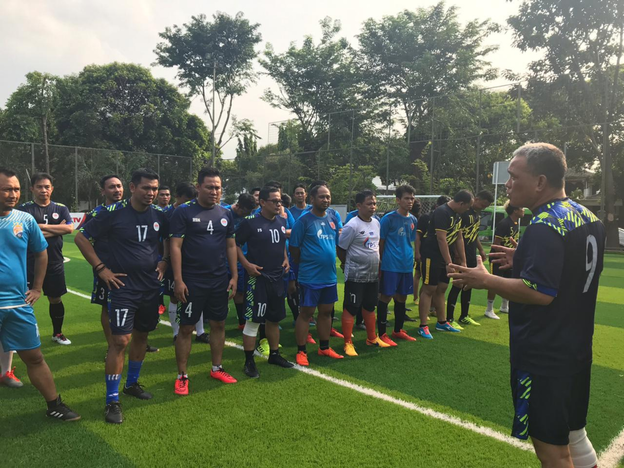 Pekerja Pelabuhan Indonesia dan TPS Surabaya berpartisipasi dalam turnamen mini soccer di lapangan Vidi, Pulomas, Jakarta Timur, Sabtu (30/3/2019). Ajang yang diinisiasi Serikat Pekerja (SP JICT) ini diadakan untuk konsolidasi pekerja pelabuhan di Tanjung Priok Jakarta dan Tanjung Perak Surabaya. Pekerja pelabuhan Indonesia sepakat untuk menolak perpanjangan kontrak Hutchison di JICT karena terindikasi cacat hukum dan korup. AKTUAL/HO