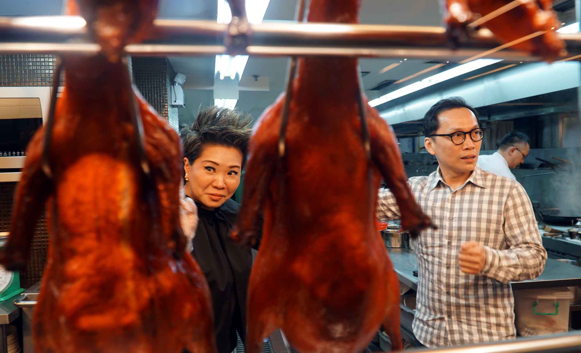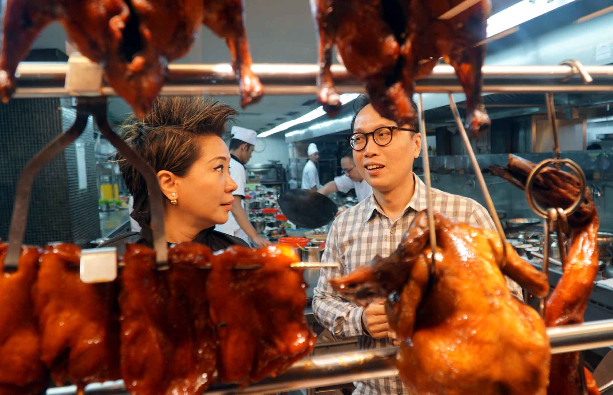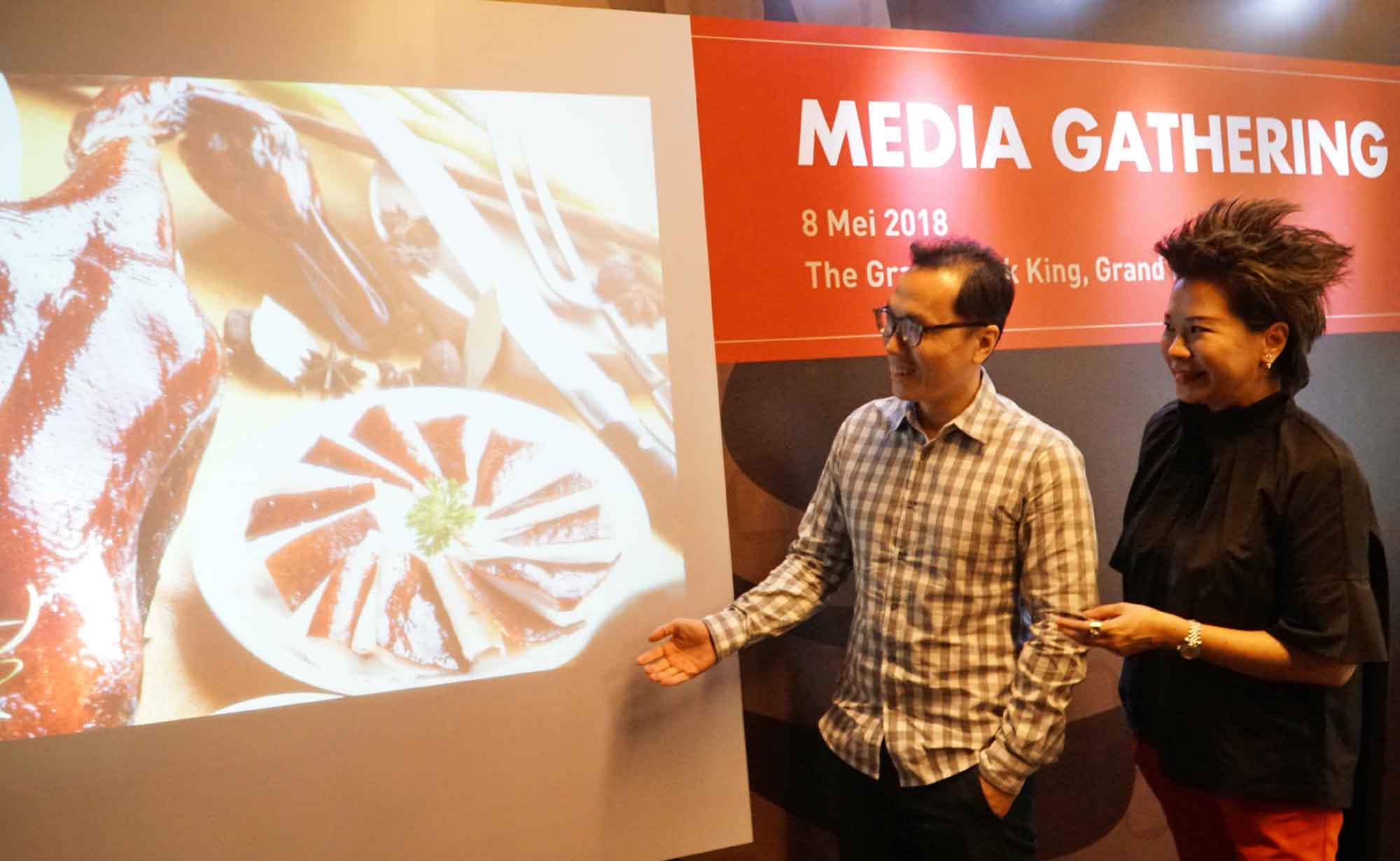 Chief Operating Officer The Duck King Group, Ibin Bachtiar bersama Chief Financial Officer, Dewi Tio saat meninjau dapur salah satu gerai di Grand Indonesia, Jakarta, Selasa (8/5). Dalam kesempatan media gathering perusahaan yang bergerak disektor usaha penjualan restoran khusus bebek yang bercita rasa international tersebut berencana melakukan perluasan gerai ke vietnam pada tahun depan. AKTUAL/Eko S Hilman