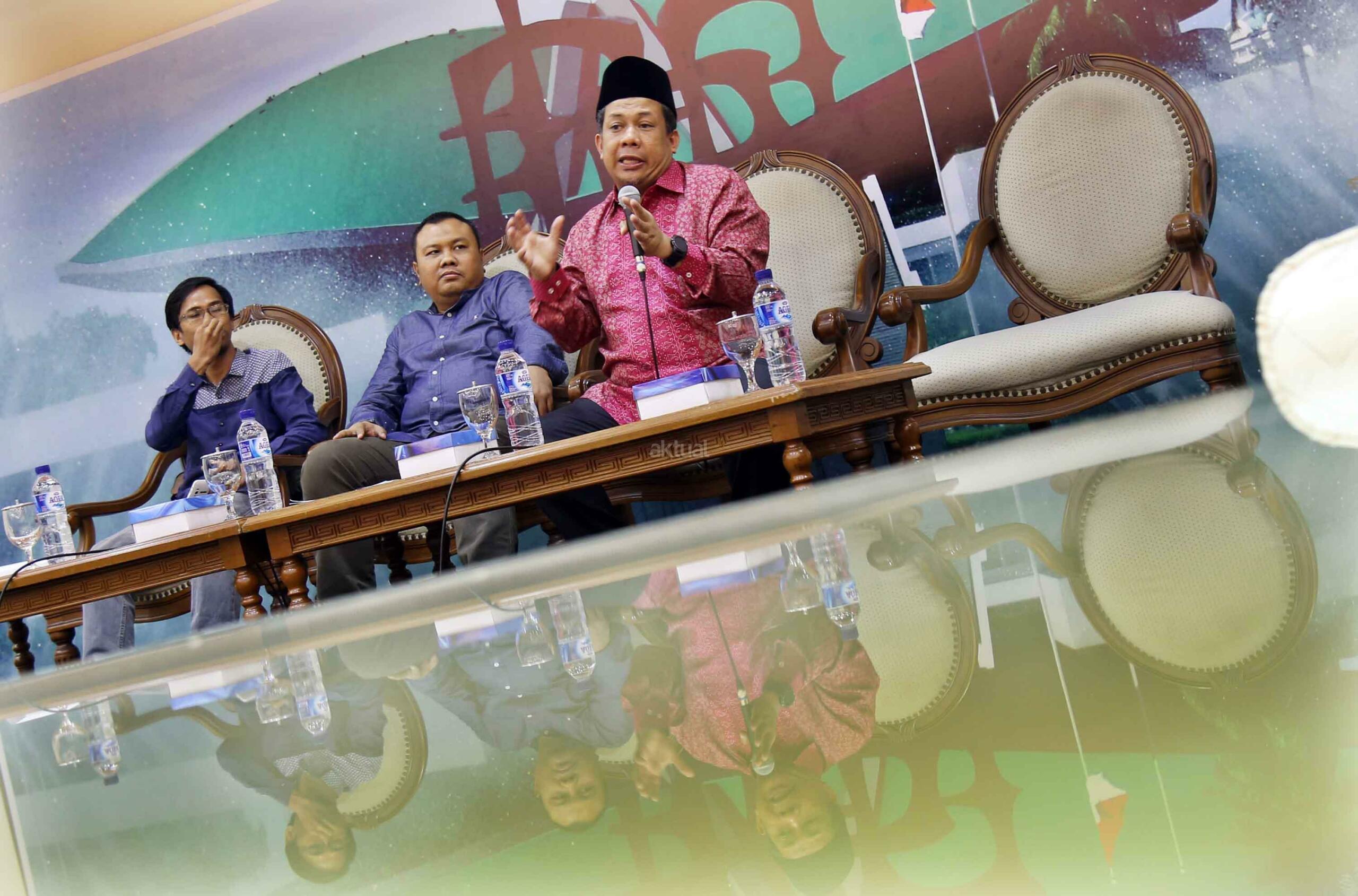 Wakil Ketua DPR Fahri Hamzah bersama Pengamat komunikasi politik Hendri Satrio saat diskusi forum legislasi dengan tema Perlukah Penyederhanaan Target Prolegnas Memasuki Tahun Politik? di press room DPR, Jakarta, Selasa (8/8). Pertama DPR yang menyepakati Prolegnas tentunya setelah ada pembicaraan dengan pemerintah, yang kemarin sekitar 49 di awal tahun 2017, mungkin sekarang tinggal 40 dan masih ada beberapa yang sudah disahkan, termasuk pemilu, pembukuan, kebudayaan persitek dan lainnya dan itu banyak terakhir kemarin dan berarti sudah tinggal 40. AKTUAL/Tino Oktaviano