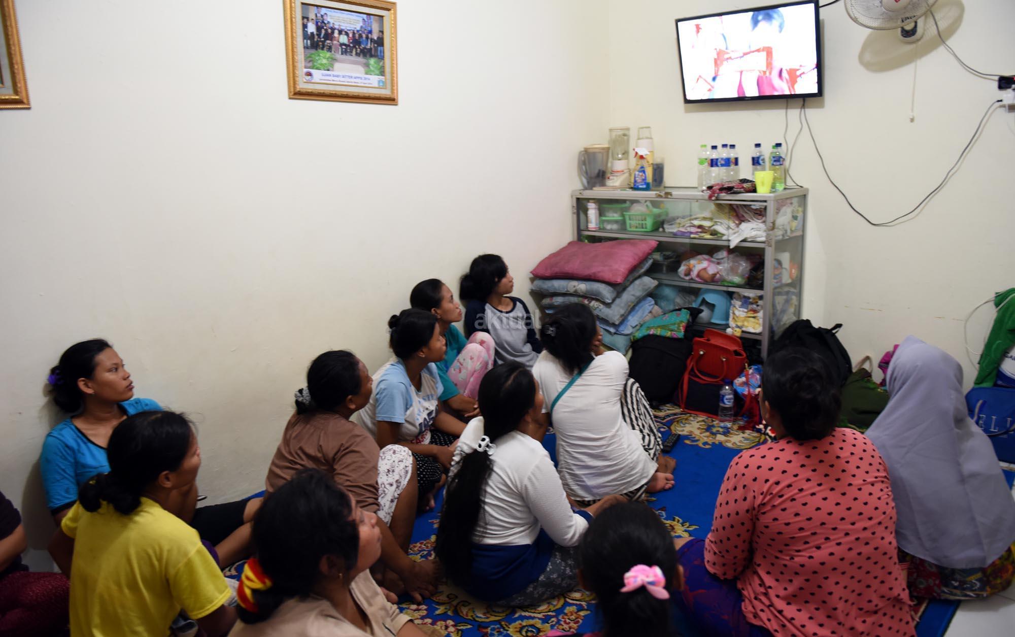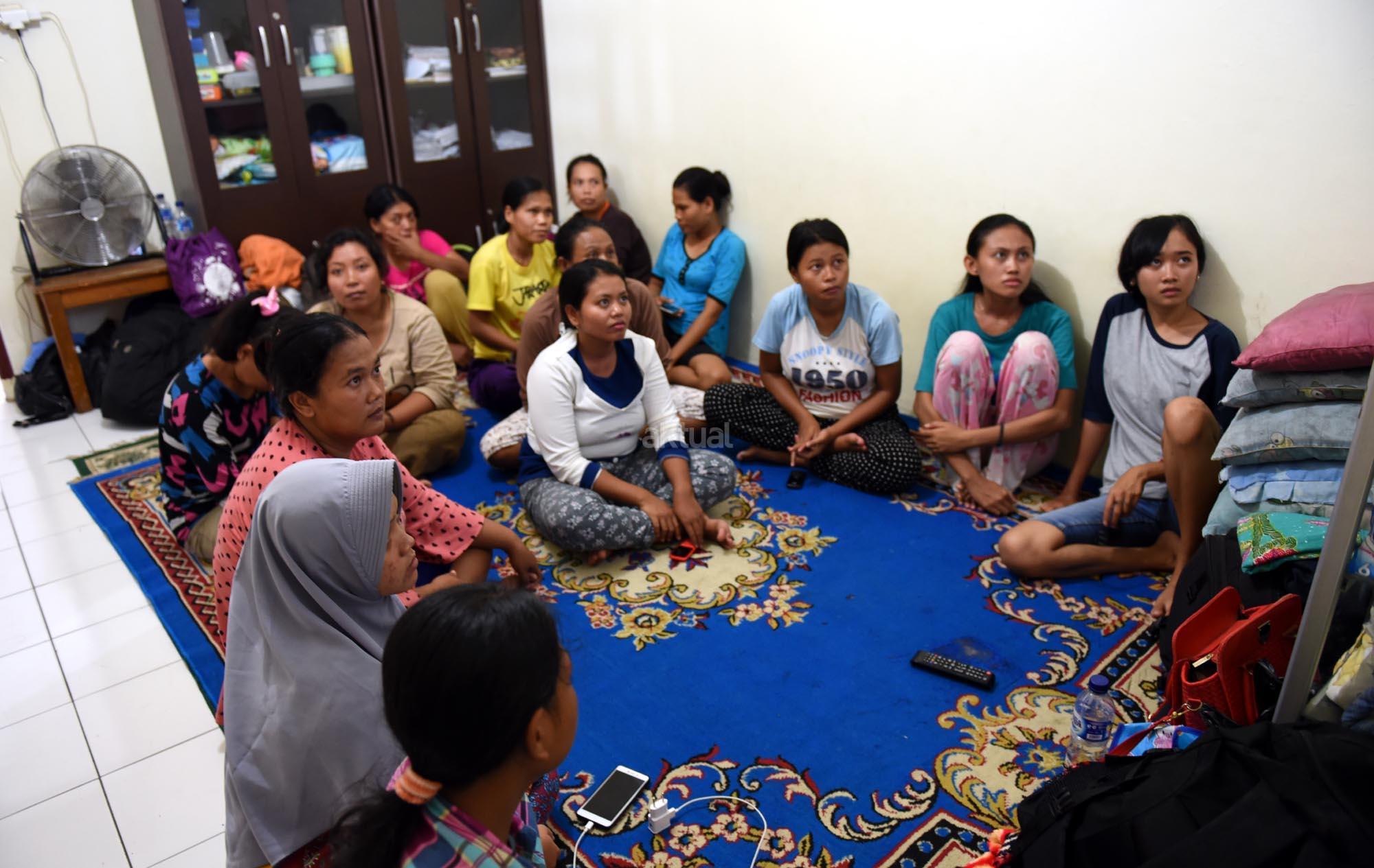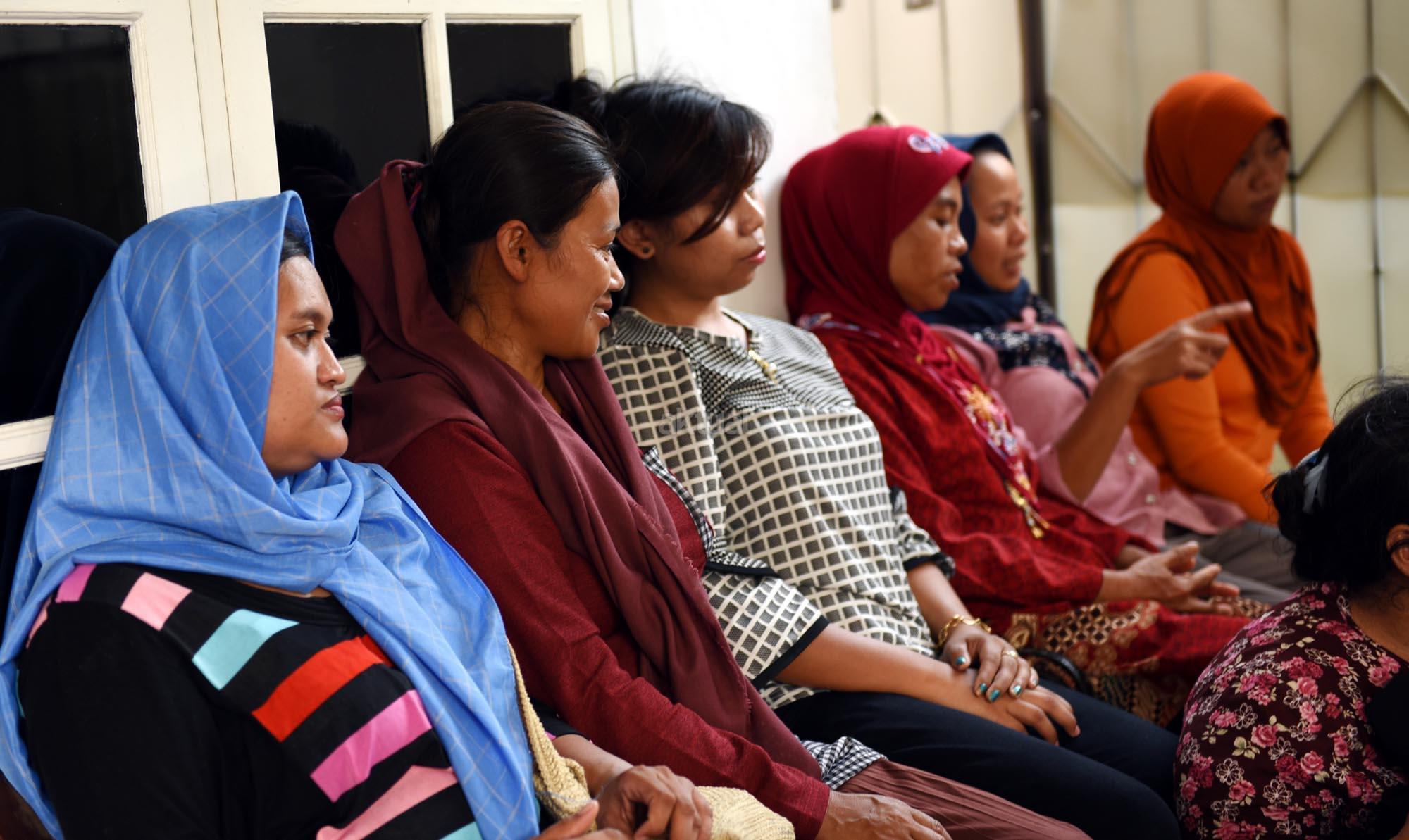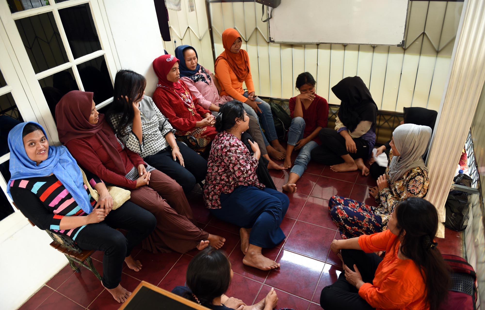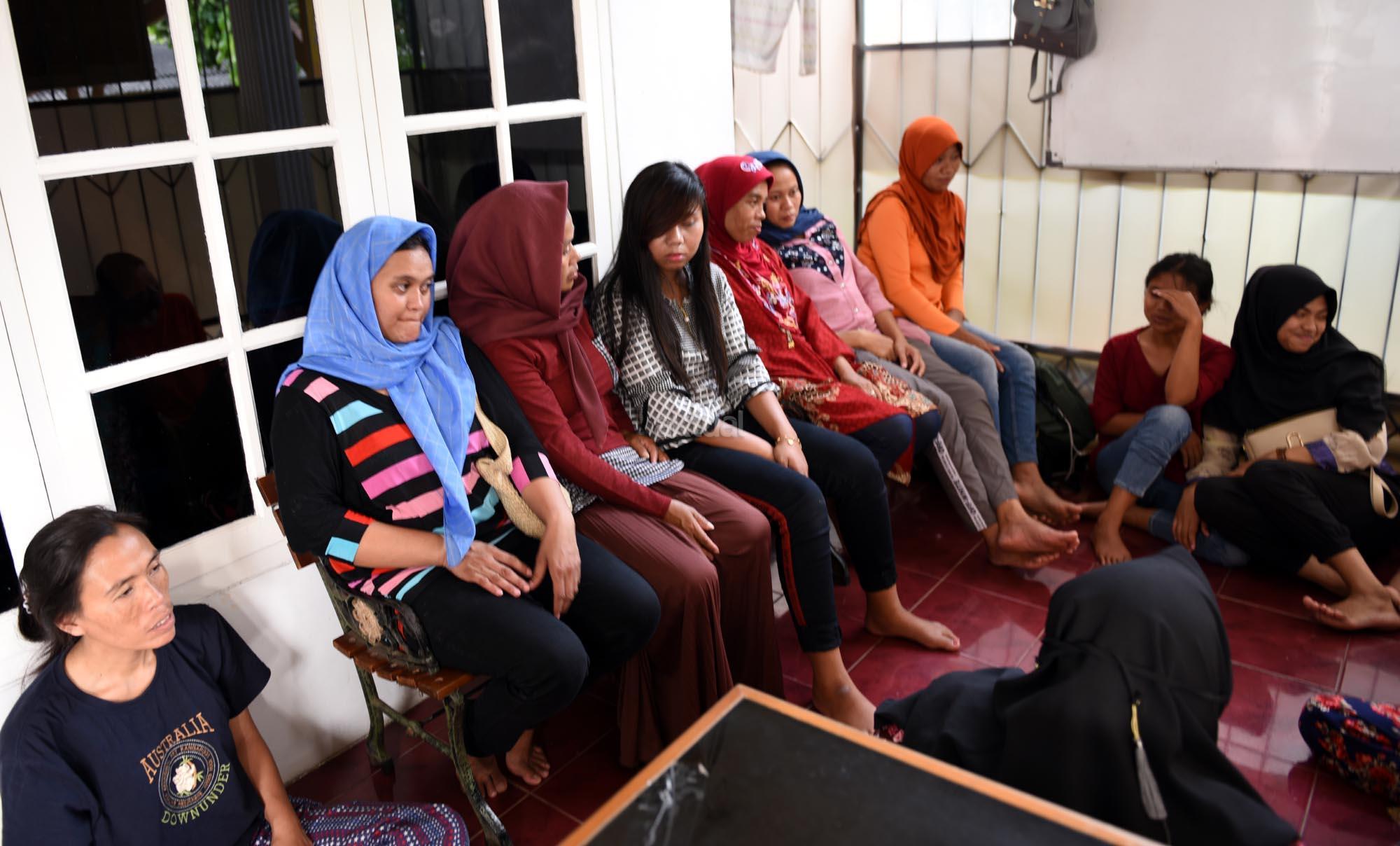 Sejumlah pembantu pengganti saat lebaran atau infal menunggu di tempat penyalur tenaga pembantu “Bu Gito” di kawasan Cipete, Jakarta Selatan, Jumat (8/6). Jelang Lebaran, permintaan pembantu infal meningkat. Kebutuhan tenaga pembantu infal menjelang perayaan Idul Fitri tahun ini mengalami peningkatan. AKTUAL/Tino Oktaviano