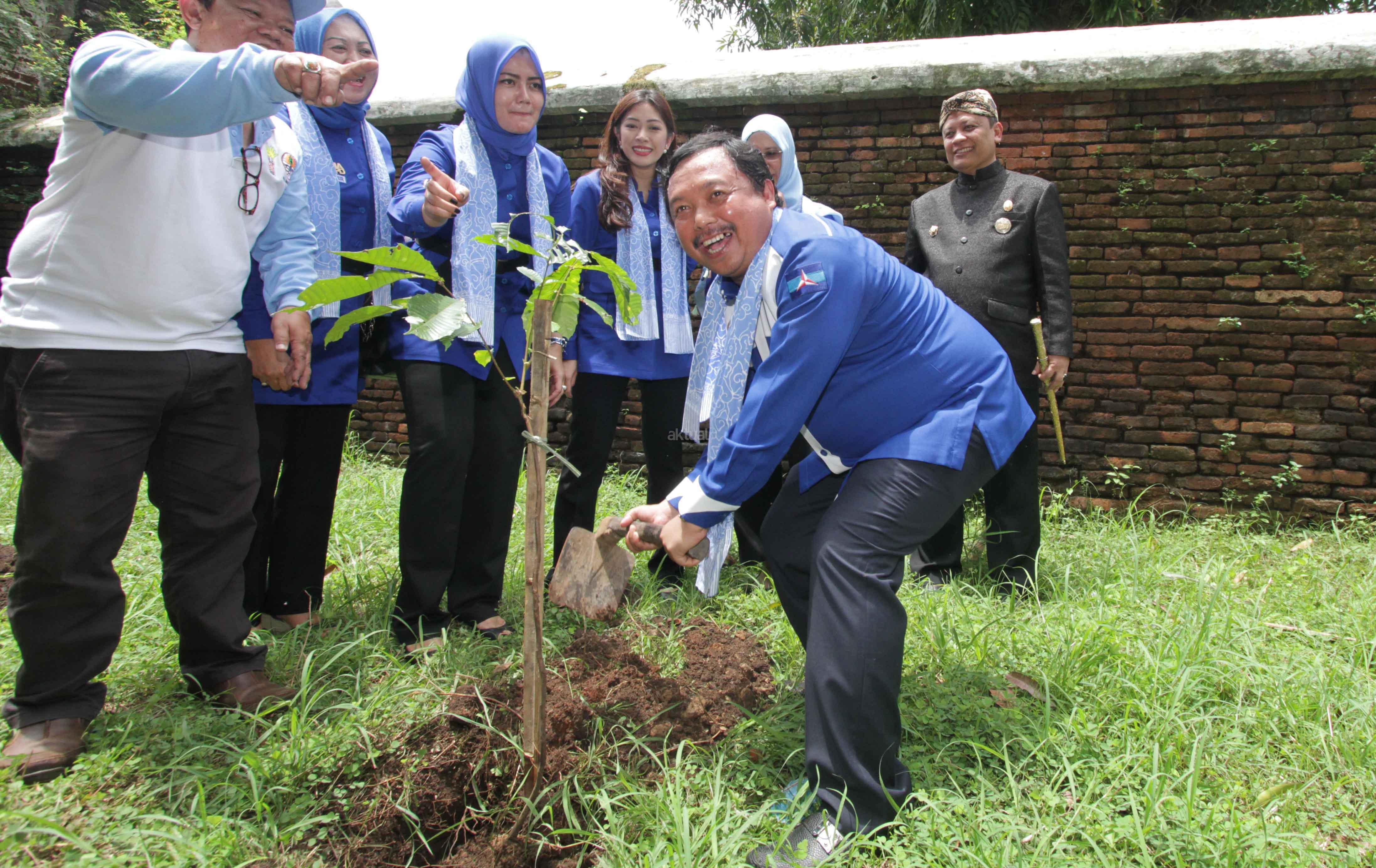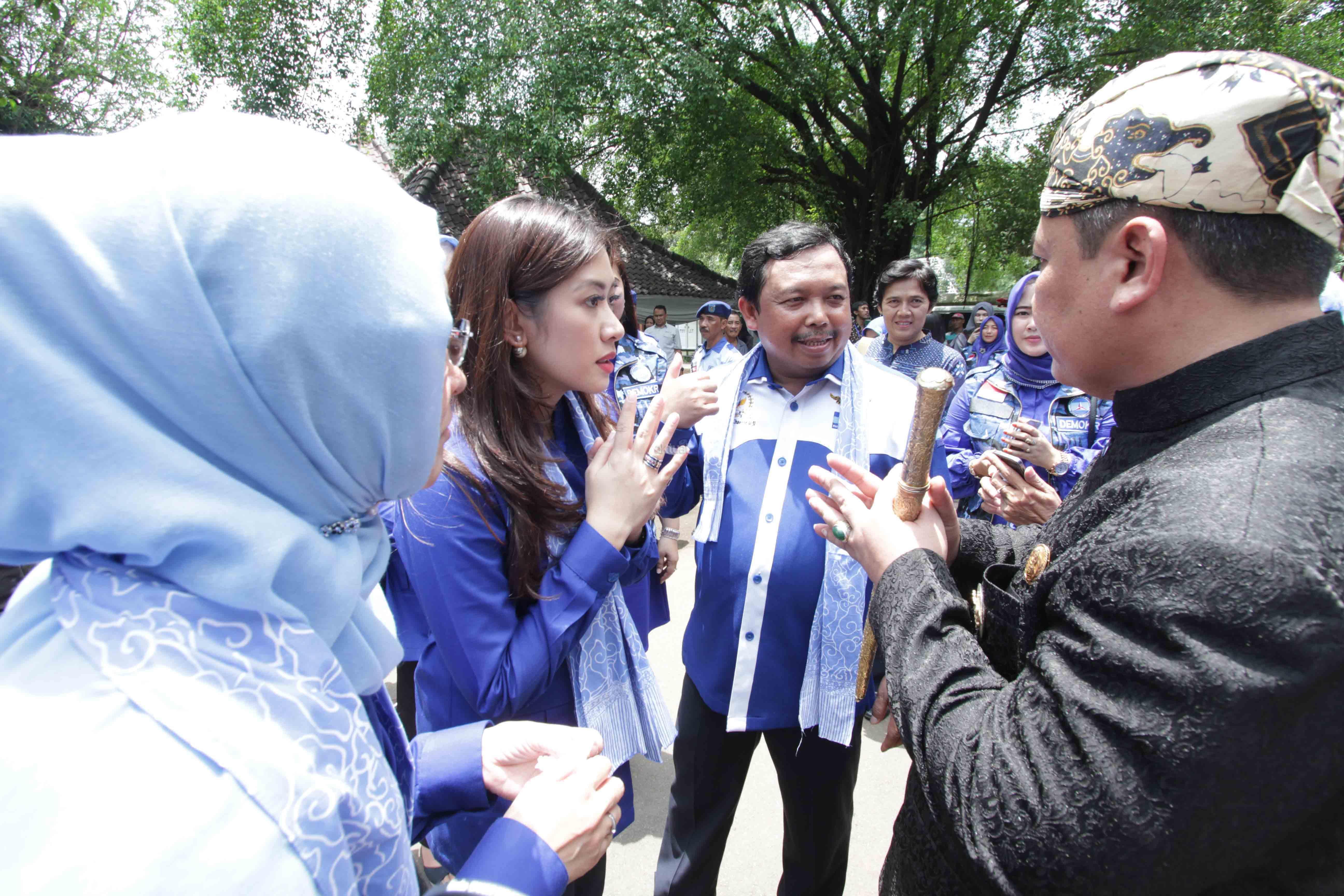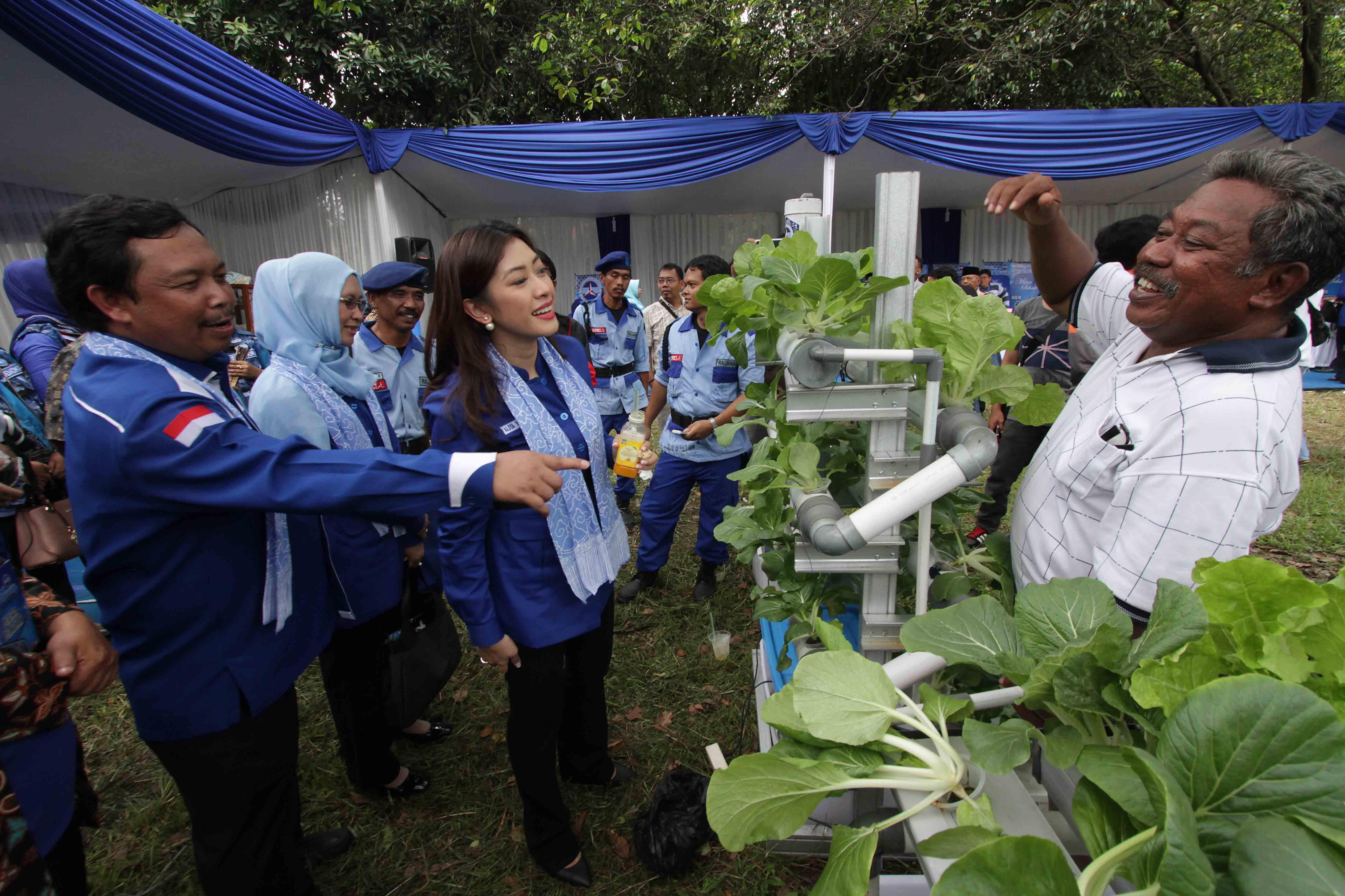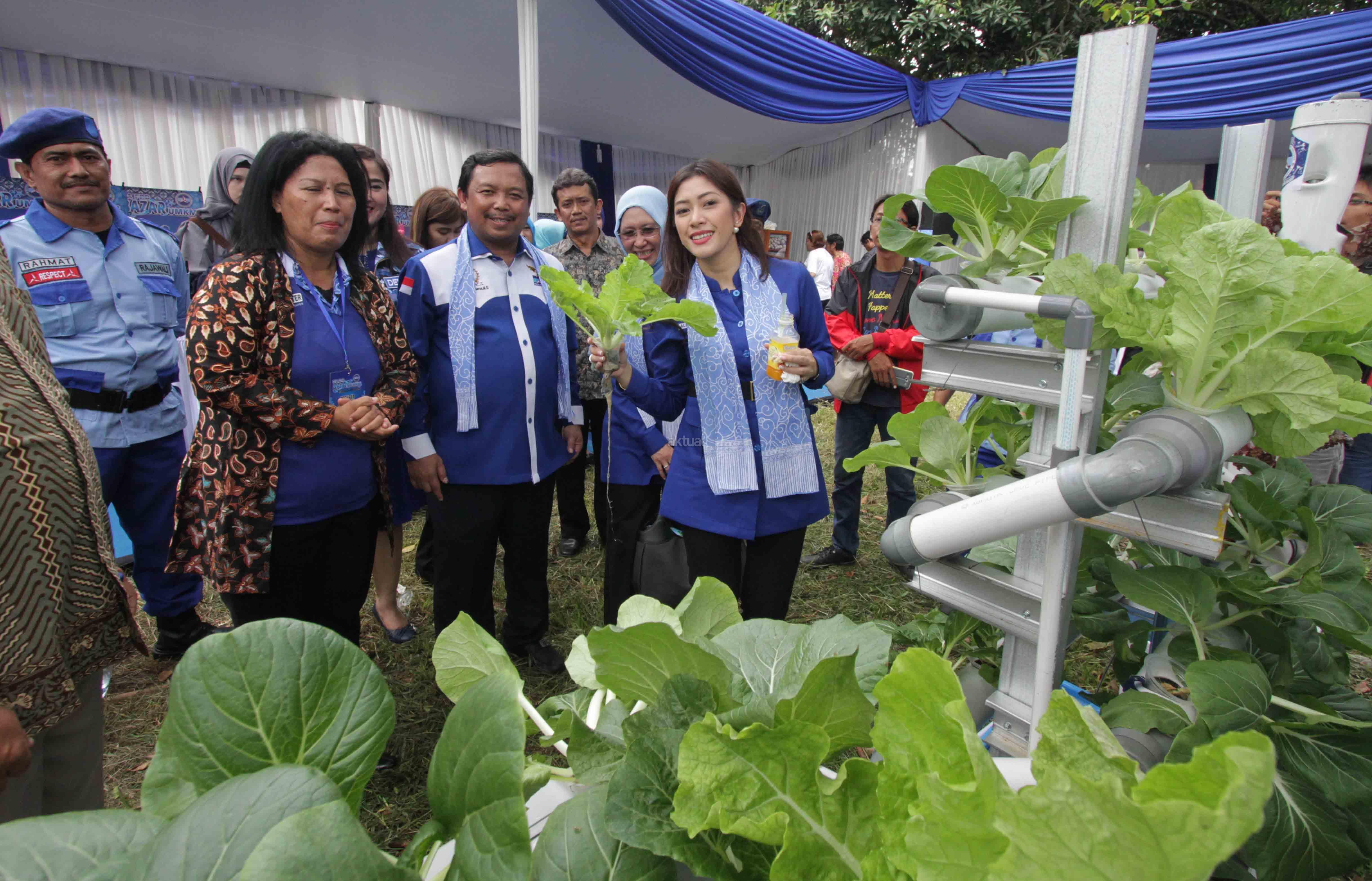 Ketua Persaudaraan Istri Anggota (PIA) Fraksi Demokrat Siti Rubi Aliya Rajasa Edi Baskoro (kanan) didampingi Wakil Ketua Komisi IV DPR Fraksi Partai Demokrat Herman Khaeron (kiri) dan Ratna Herman Khaeron meninjau sayuran Hidrolik dari Bazar UKM binaan partai Demokrat saat program Mitra Sehati bertema "Untuk Rakyat Demokrat Peduli Serap Aspirasi dan Beri Solusi" di Kraton Kasepuhan Cirebon. Jawa Barat, Sabtu (11/3/17). Kunjungan Safari PIA Fraksi Demokrat mengadakan bazar rakyat dari UKM binaan partai Demokrat diisi dengan pelatihan dan pembinaan bagi UKM untuk masyarakat. AKTUAL/HO