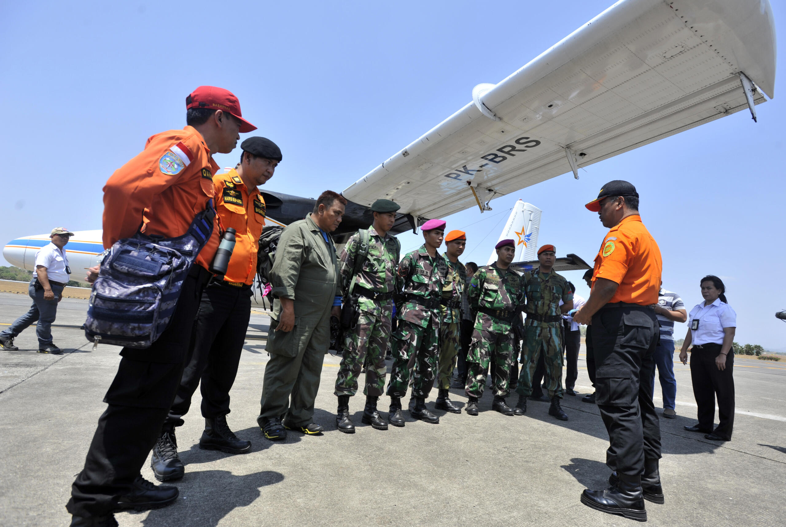 Tim SAR melakukan persiapan saat akan melakukan pencarian pesawat Aviastar DHC6/PK-BRM yang hilang di Bandara Sultan Hasanuddin Makassar, Sulawesi Selatan, Sabtu (3/10). Hingga saat ini TIM SAR belum menemukan pesawat Aviastar DHC6/PK-BRM yang hilang kontak setelah lepas landas dari Bandara Andi Jemma, Masamba, Kabupaten Luwu Utara, menuju Makassar pada Jumat (02/10) 2015 dan titik pencarian difokuskan pada empat kabupaten yakni kabupaten Luwu, Palopo, Enrekang dan Toraja. ANTARA FOTO/Yusran Uccang/nz/15