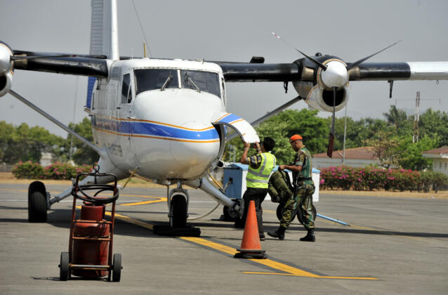 Tim SAR TNI AU melakukan persiapan saat akan melakukan pencarian pesawat Aviastar DHC6/PK-BRM yang hilang di Bandara Sultan Hasanuddin Makassar, Sulawesi Selatan, Sabtu (3/10). Hingga saat ini TIM SAR belum menemukan pesawat Aviastar DHC6/PK-BRM yang hilang kontak setelah lepas landas dari Bandara Andi Jemma, Masamba, Kabupaten Luwu Utara, menuju Makassar pada Jumat (02/10) 2015 dan titik pencarian difokuskan pada empat kabupaten yakni kabupaten Luwu, Palopo, Enrekang dan Toraja. ANTARA FOTO/Yusran Uccang/nz/15