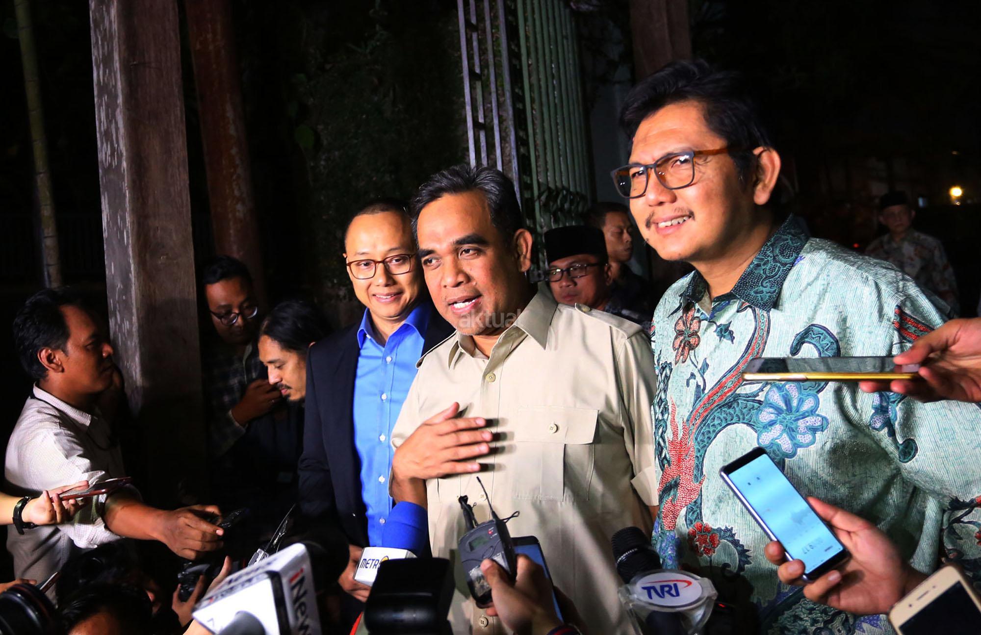 Sekretaris Jenderal (Sekjen) Partai Gerindra Ahmad Muzani menjawab pertanyaan wartawan usai pertemuan dengan pimpinan partai PAN dan PKS di Jakarta, Selasa (31/7). Pertemuan tersebut membahas rekomendasi capres-cawapres dari pertemuan ulama Gerakan Nasional Pengawal Fatwa (GNPF) akan dibahas dalam pertemuan elite Partai Gerindra, PKS dan PAN. AKTUAL/Tino Oktaviano