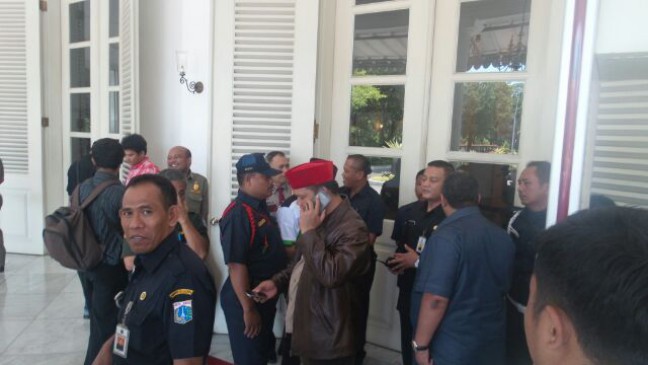 Jakarta, Aktual.co — Beberapa perwakilan masyarakat Betawi tertahan di depan pintu Balai Kota, Senin (30/3). Lima orang perwakilan demonstran yang ingin bertemu dengan Gubernur DKI Jakarta Basuki Tjahaja Purnama (Ahok) dihadang pasukan keamanan gubernur.
