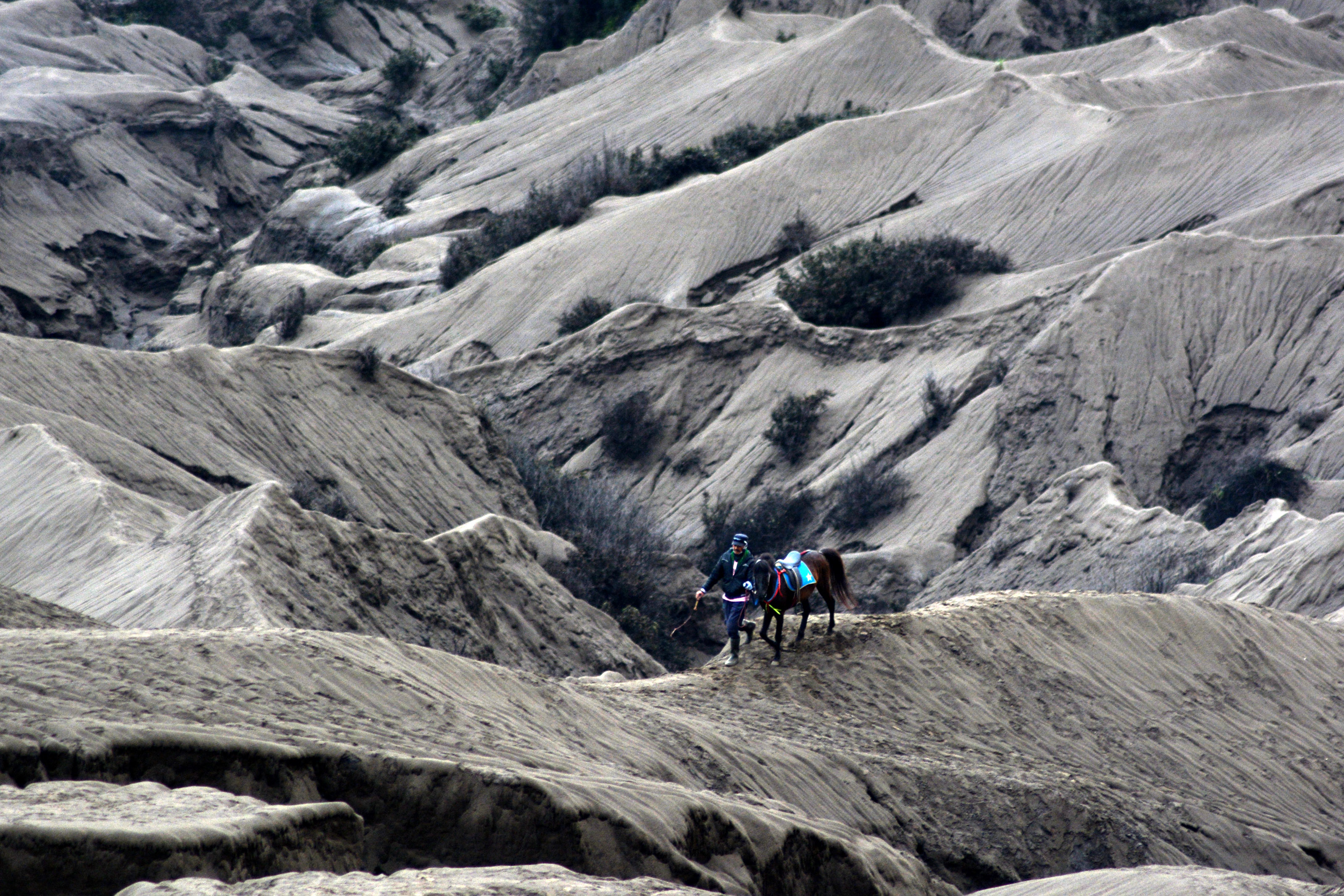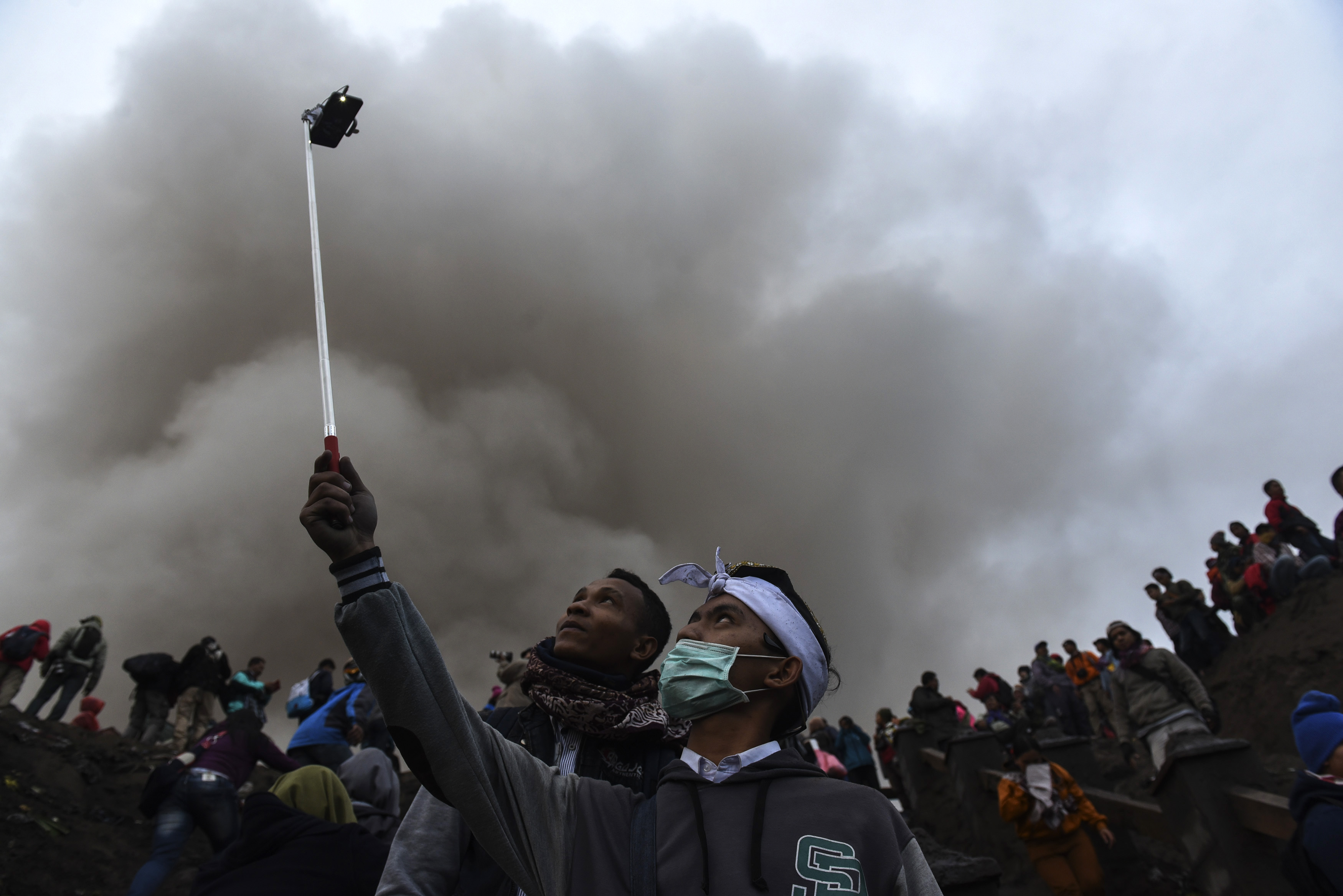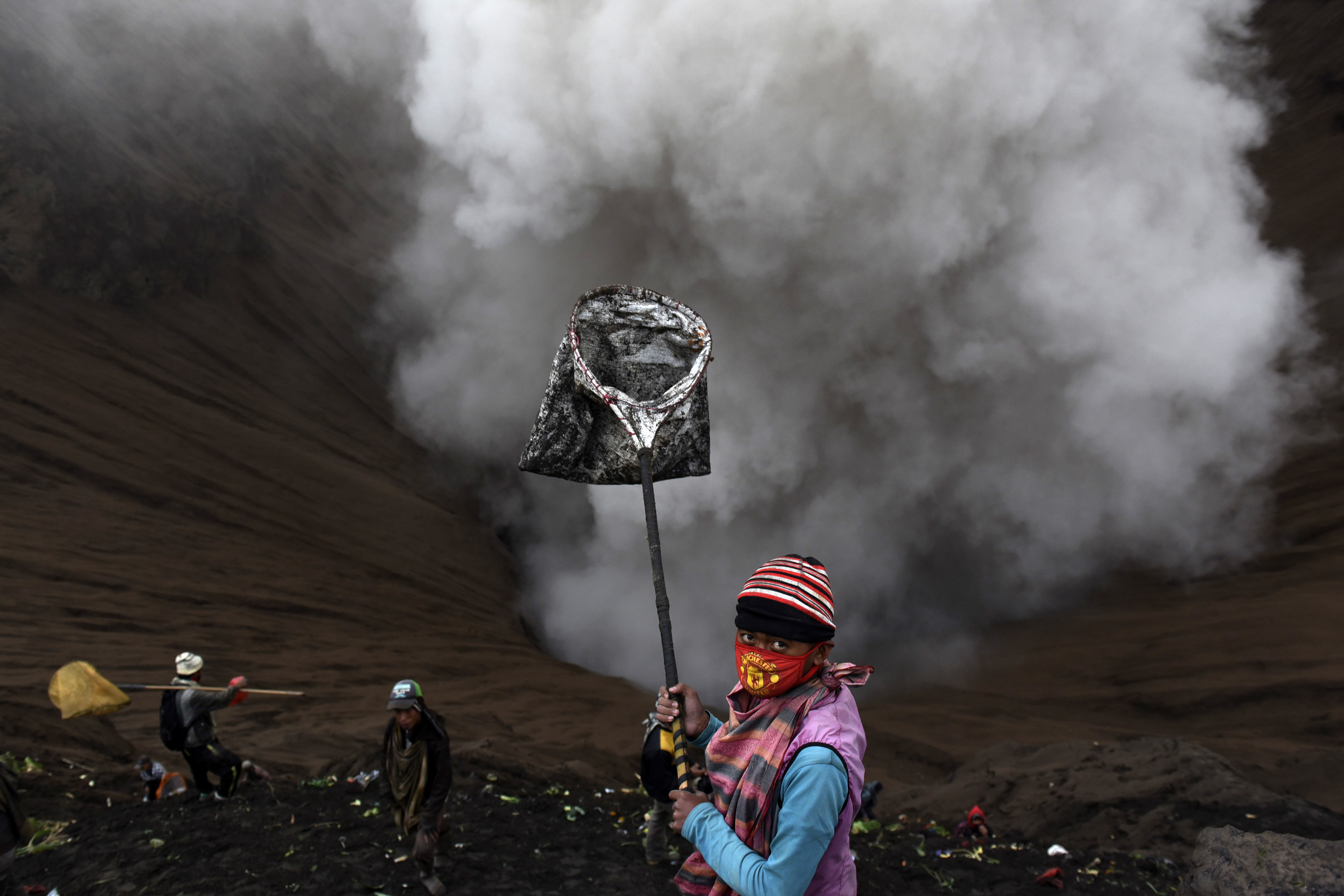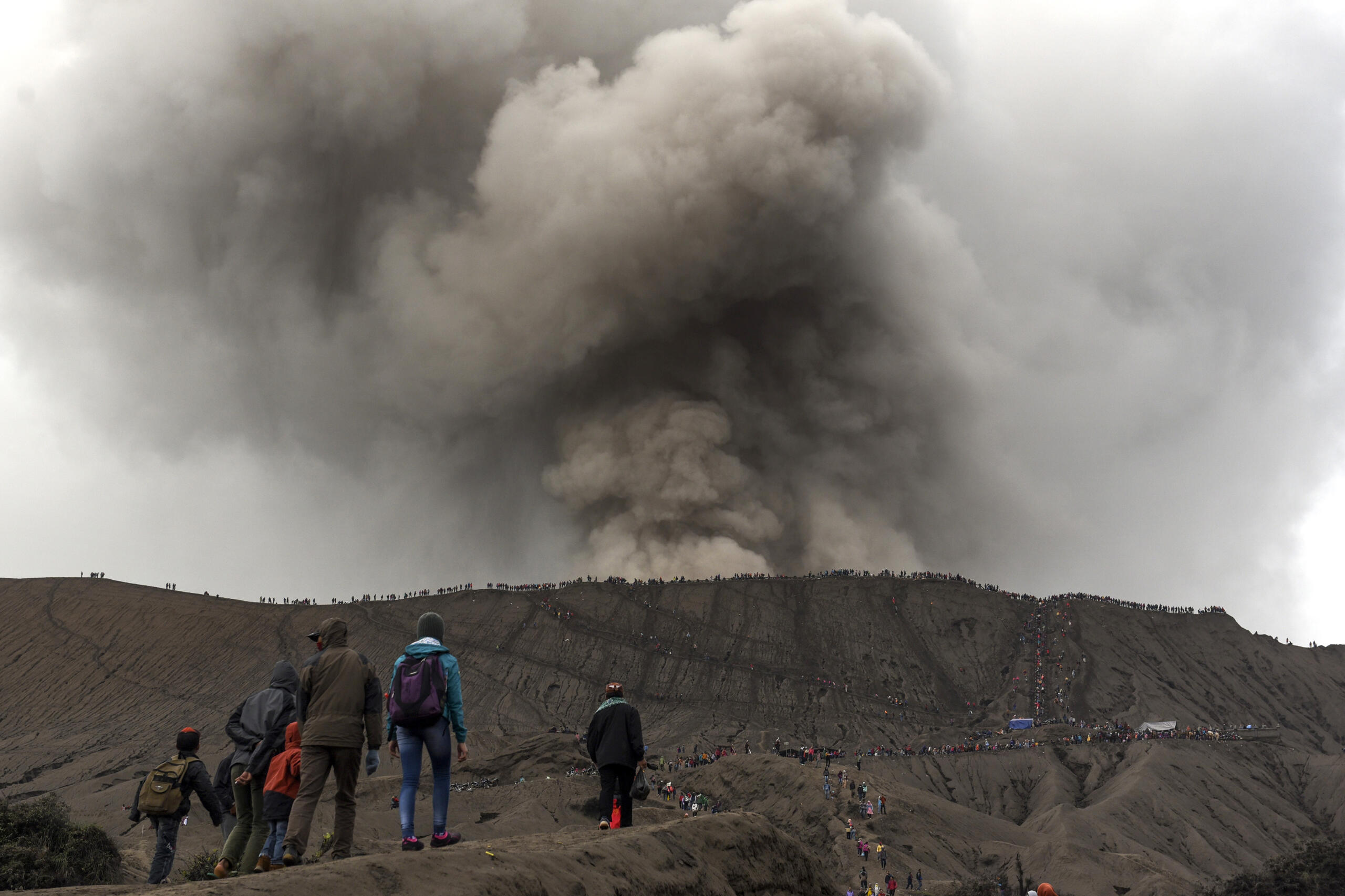 Masyarakat Suku Tengger berdoa ketika melarung sesajen ke kawah Gunung Bromo pada Upacara Yadnya Kasada, Probolinggo, Jawa Timur, Sabtu (21/7). Upacara Kasada merupakan upacara adat masyarakat Suku Tengger sebagai bentuk ucapan syukur kepada Sang Hyang Widi sekaligus meminta berkah dan menjauhkan dari malapetaka. ANTARA FOTO/Zabur Karuru/nz/16