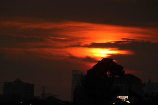 Matahari tenggelam jarang sekali terlihat di langit kota Jakarta yang setiap harinya selalu diselimuti oleh langit yang pekat dari asap polusi.