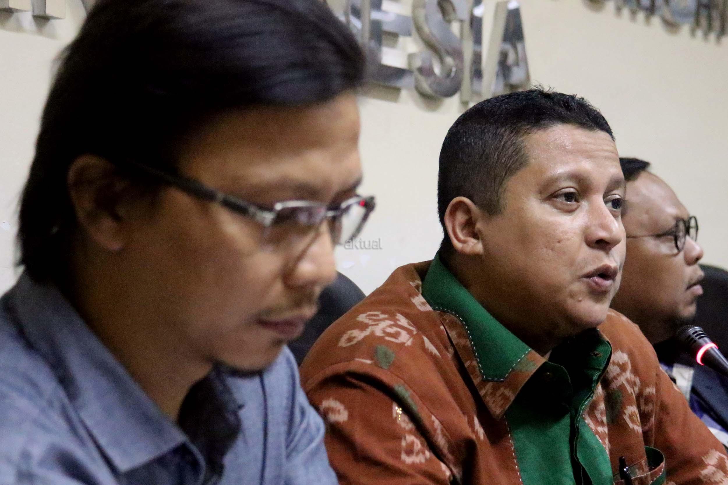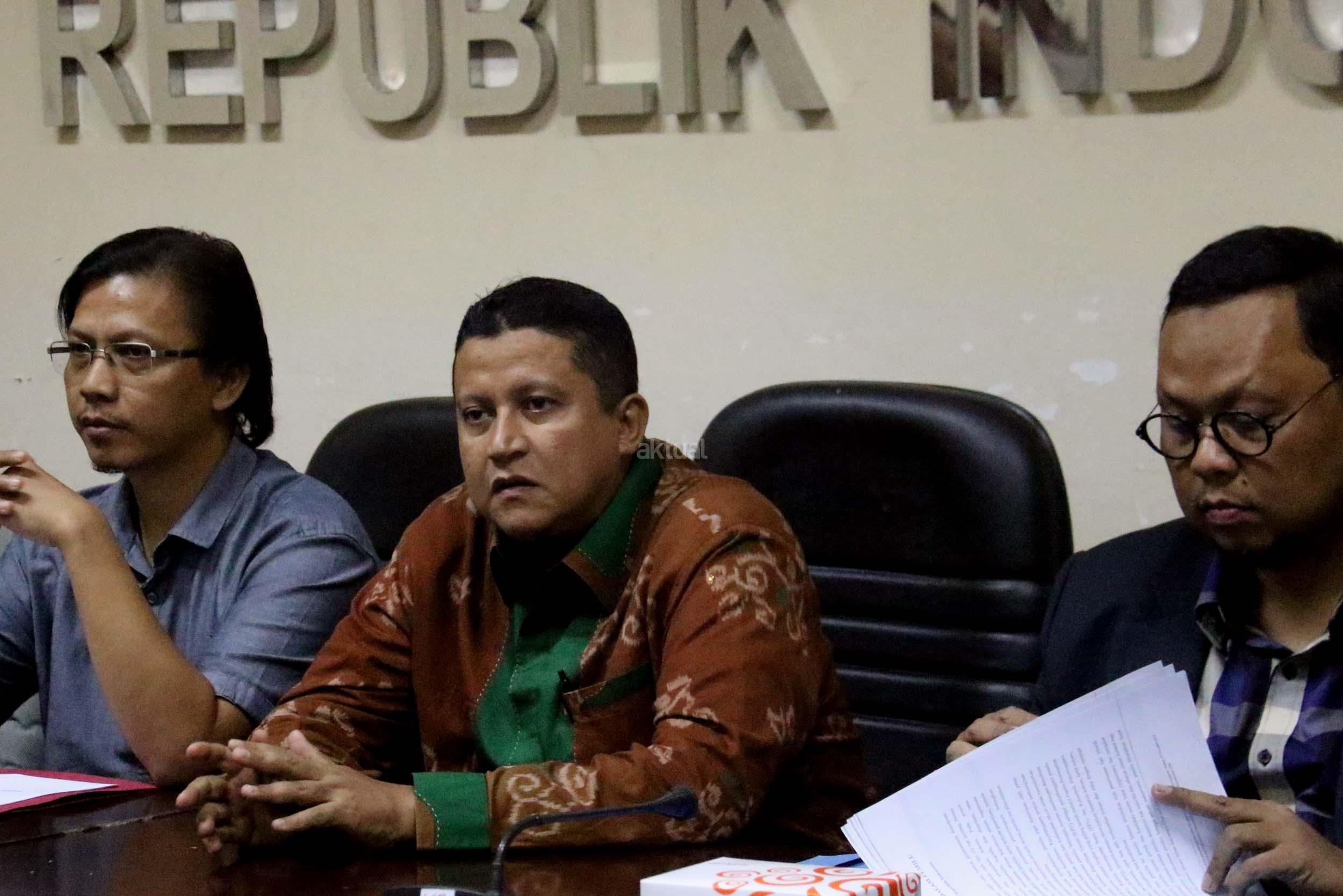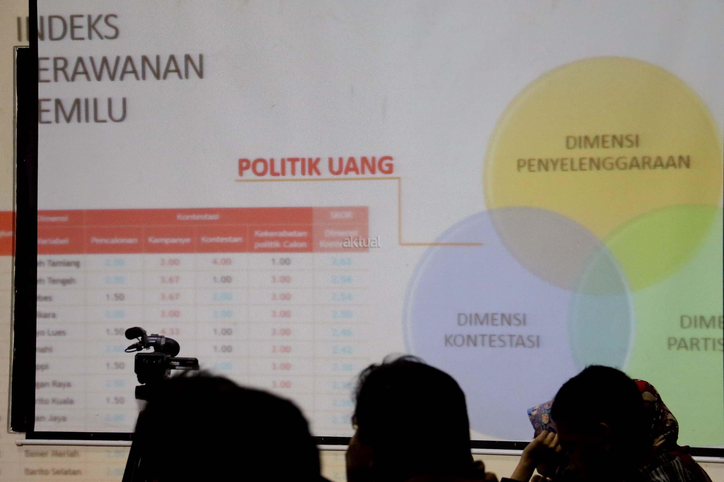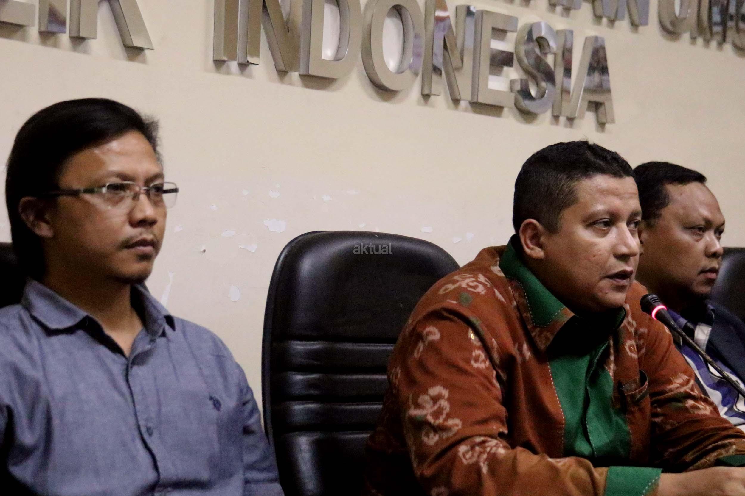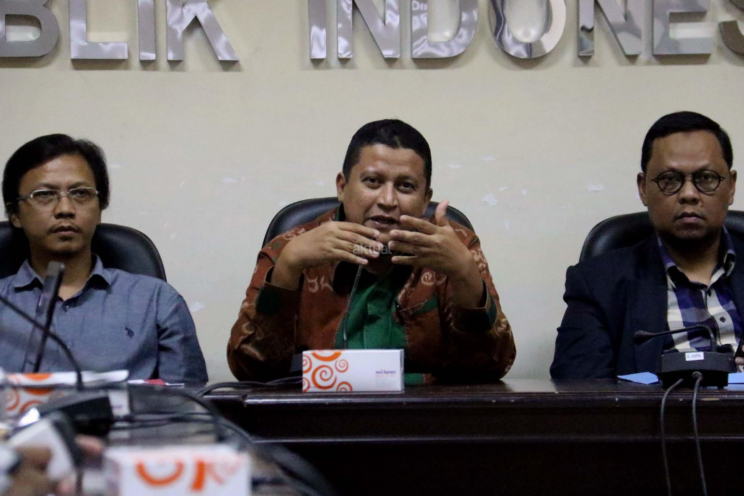 Pimpinan Bawaslu RI Daniel Zuchron (kiri), Ketua Bawaslu RI Muhammad (tengah), Wakil Ketua Komisi II DPR RI yang juga Ketua Pansus RUU Pemilu Lukman Edy (kanan) saat diskusi di media center Bawaslu RI, Jakarta, Senin (6/2/2017). Diskusi Badan Pengawas Pemilu (Bawaslu) RI mengambil tema “Peta Jalan Politik Uang Dalam Pemilu”. AKTUAL/Munzir
