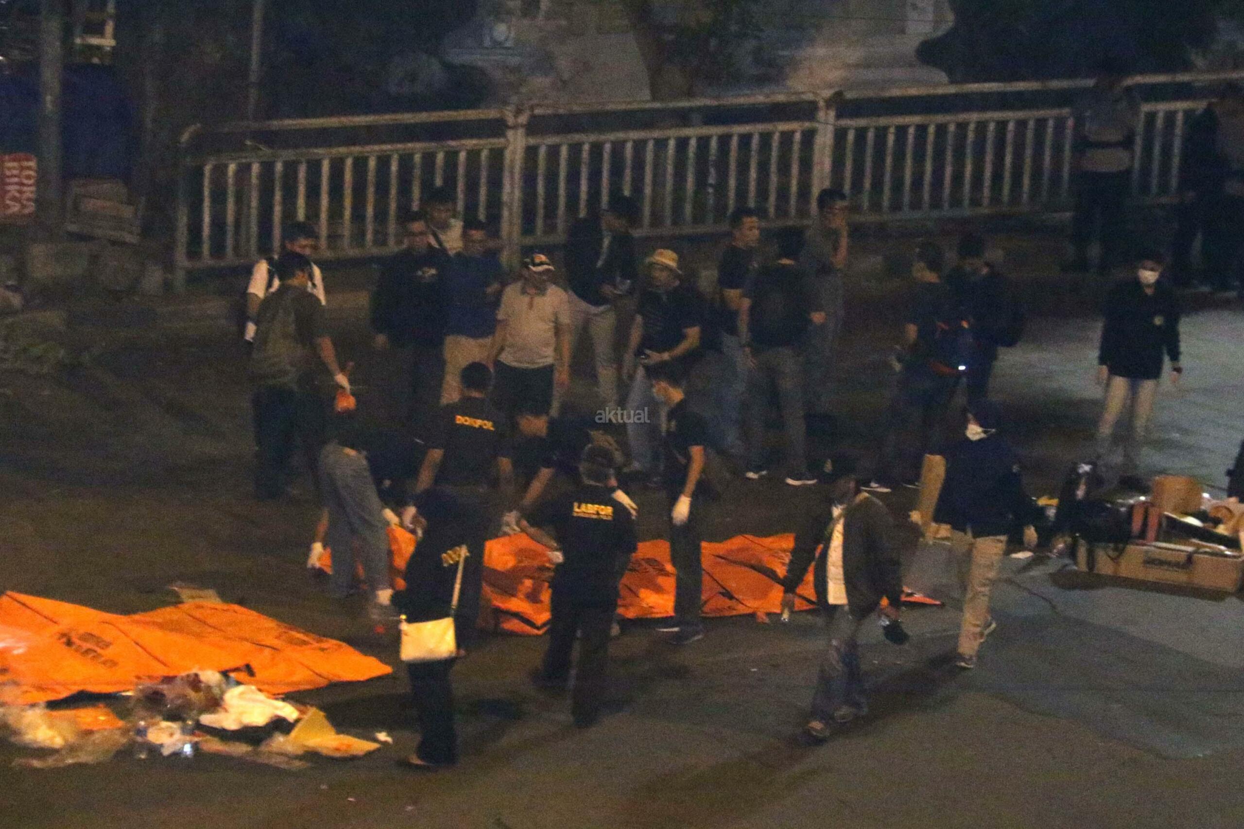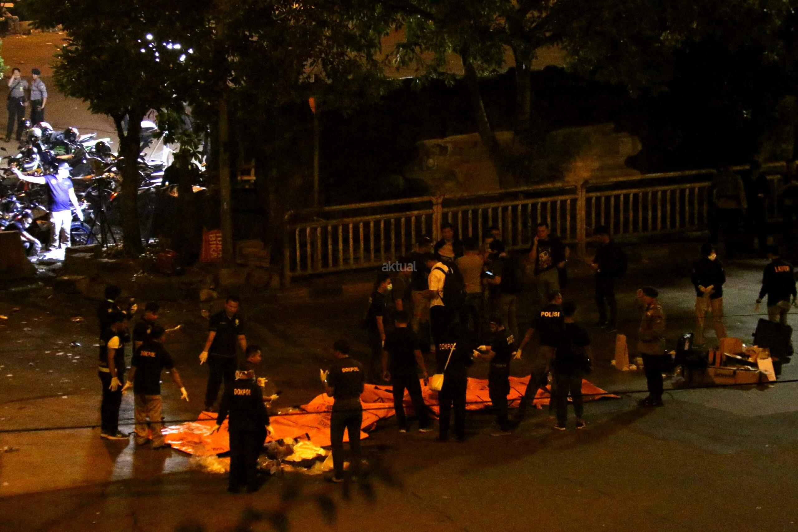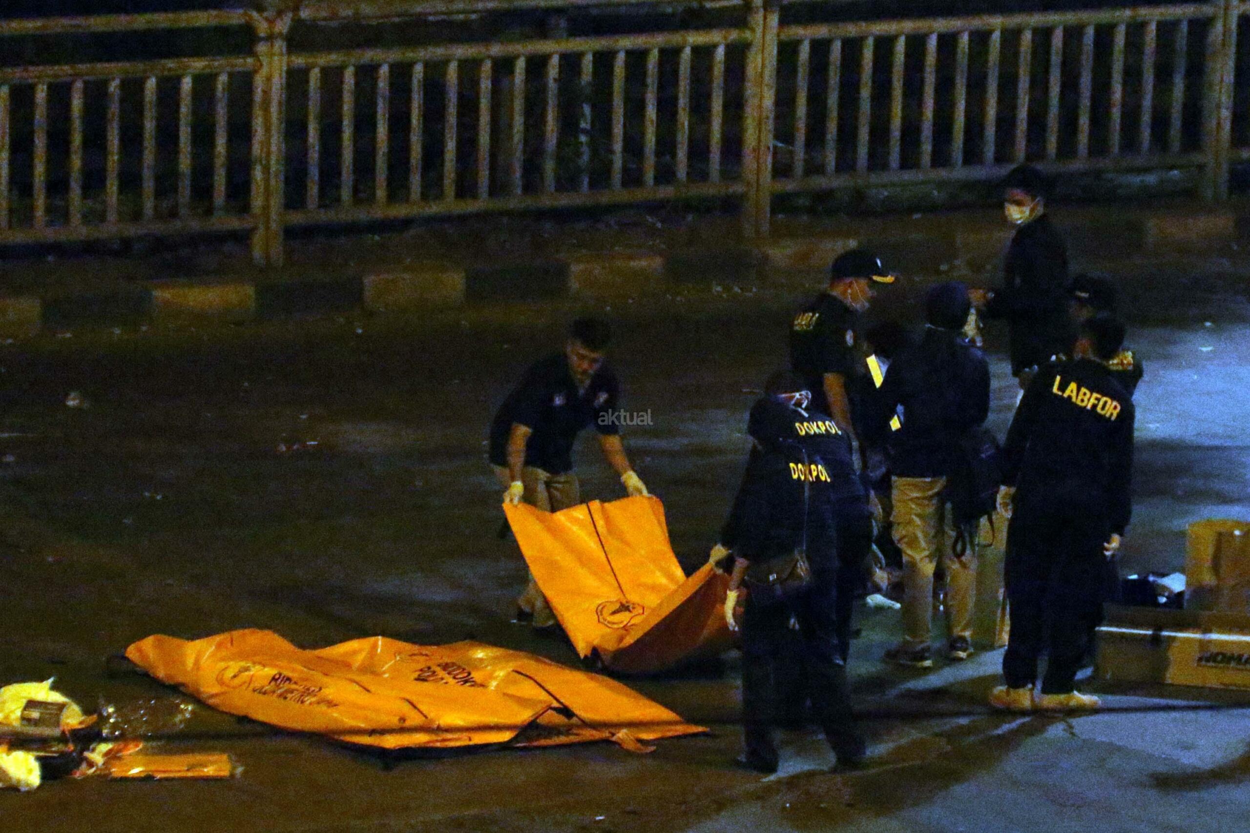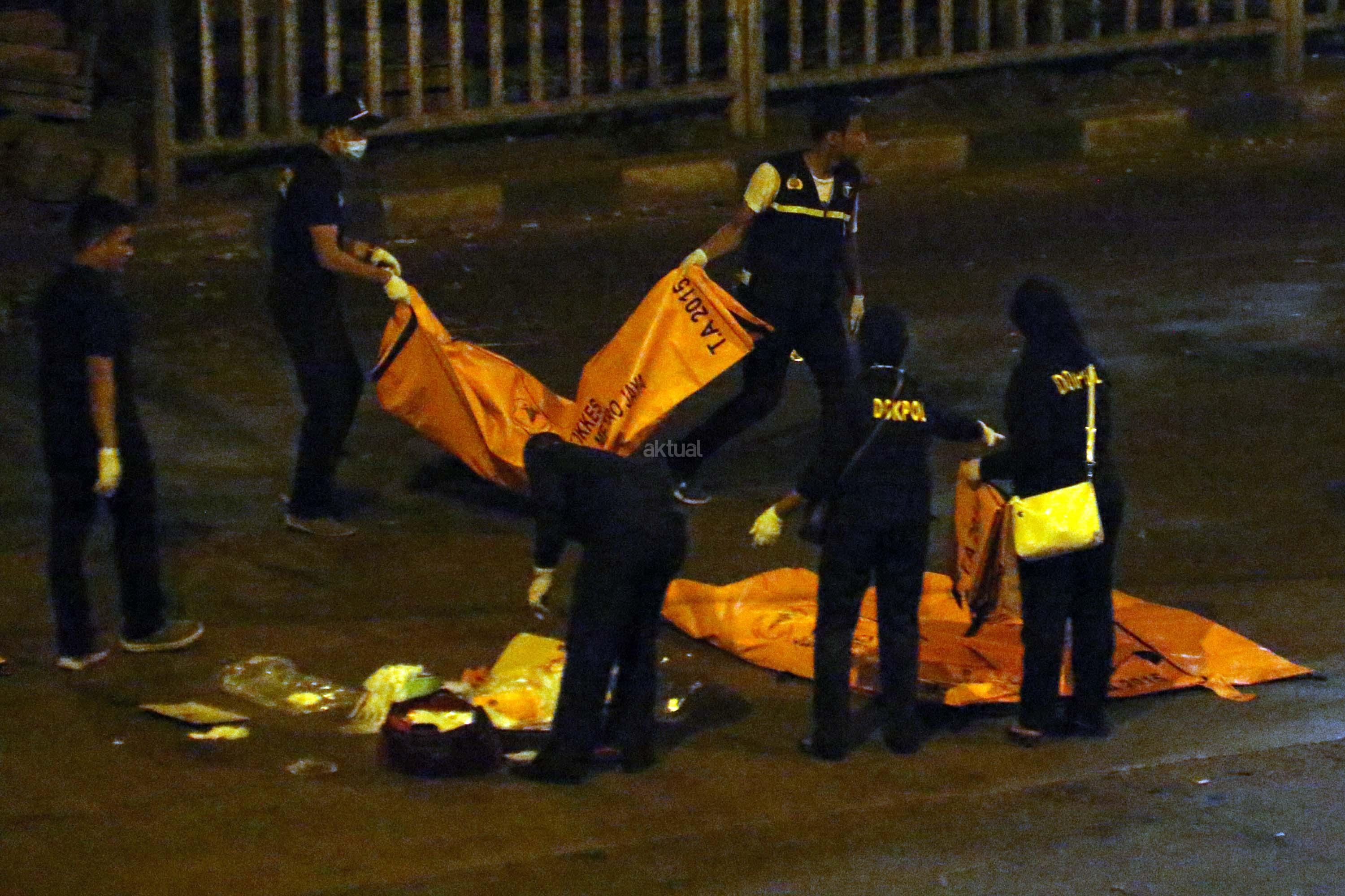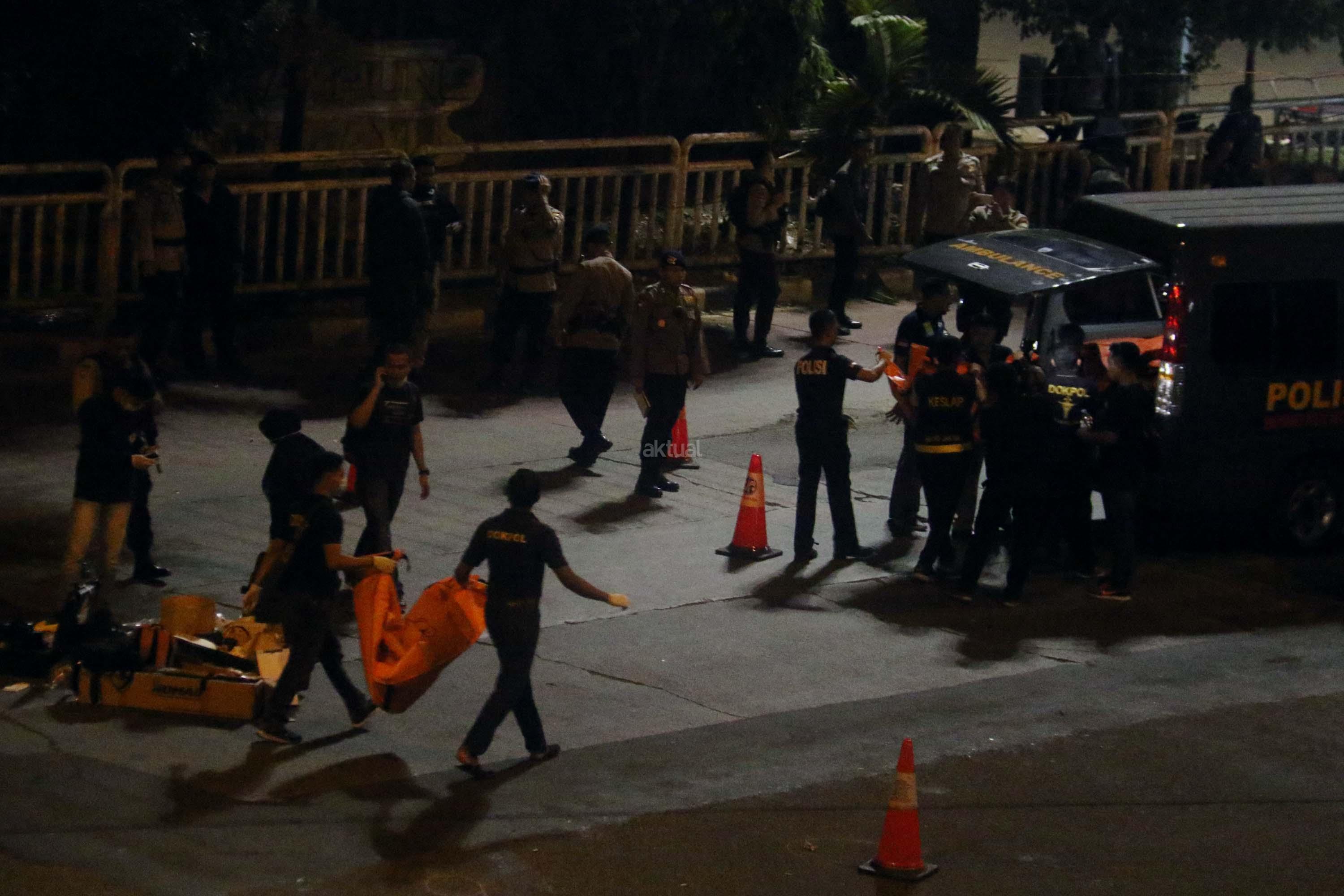 Petugas mengevakuasi korban ledakan di Terminal Kampung Melayu, Jakarta, Kamis (25/5/2017). Akibat dari ledakan bom di Kampung Melayu sebanyak 5 orang tewas. Dua orang yang tewas diduga pelaku, 3 orang lainnya adalah personel Polri.