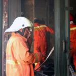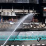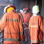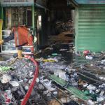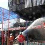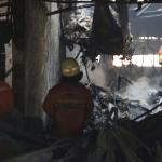Petugas Damkar tengah melakukan proses pendinginan, Jumat (20/1/2017).Badan Penanggulangan Bencana Daerah DKI Jakarta menyatakan jumlah kios Pasar Senen yang terbakar di blok satu maupun blok dua sebanyak 1.691 kios. AKTUAL/Munzir