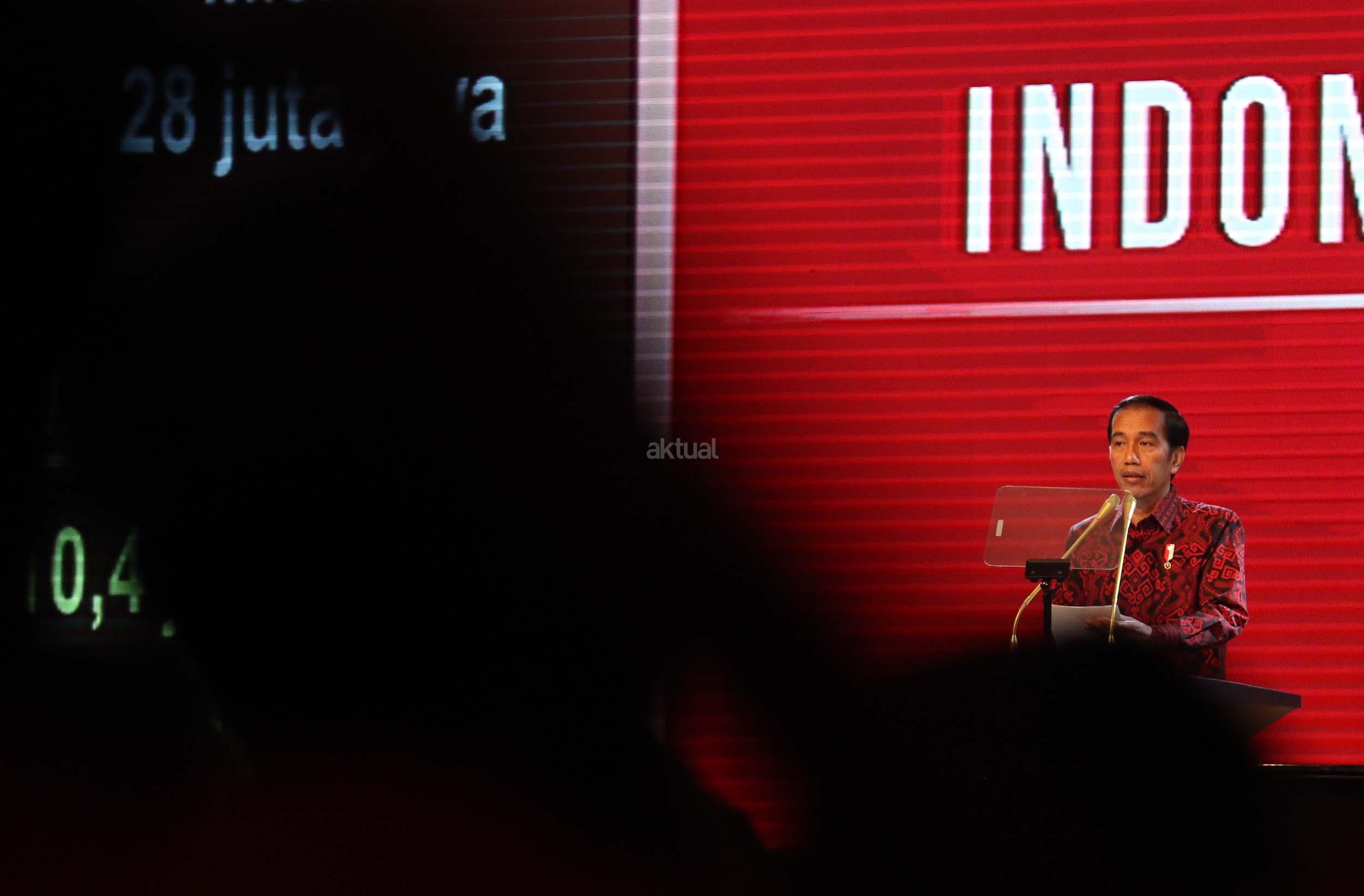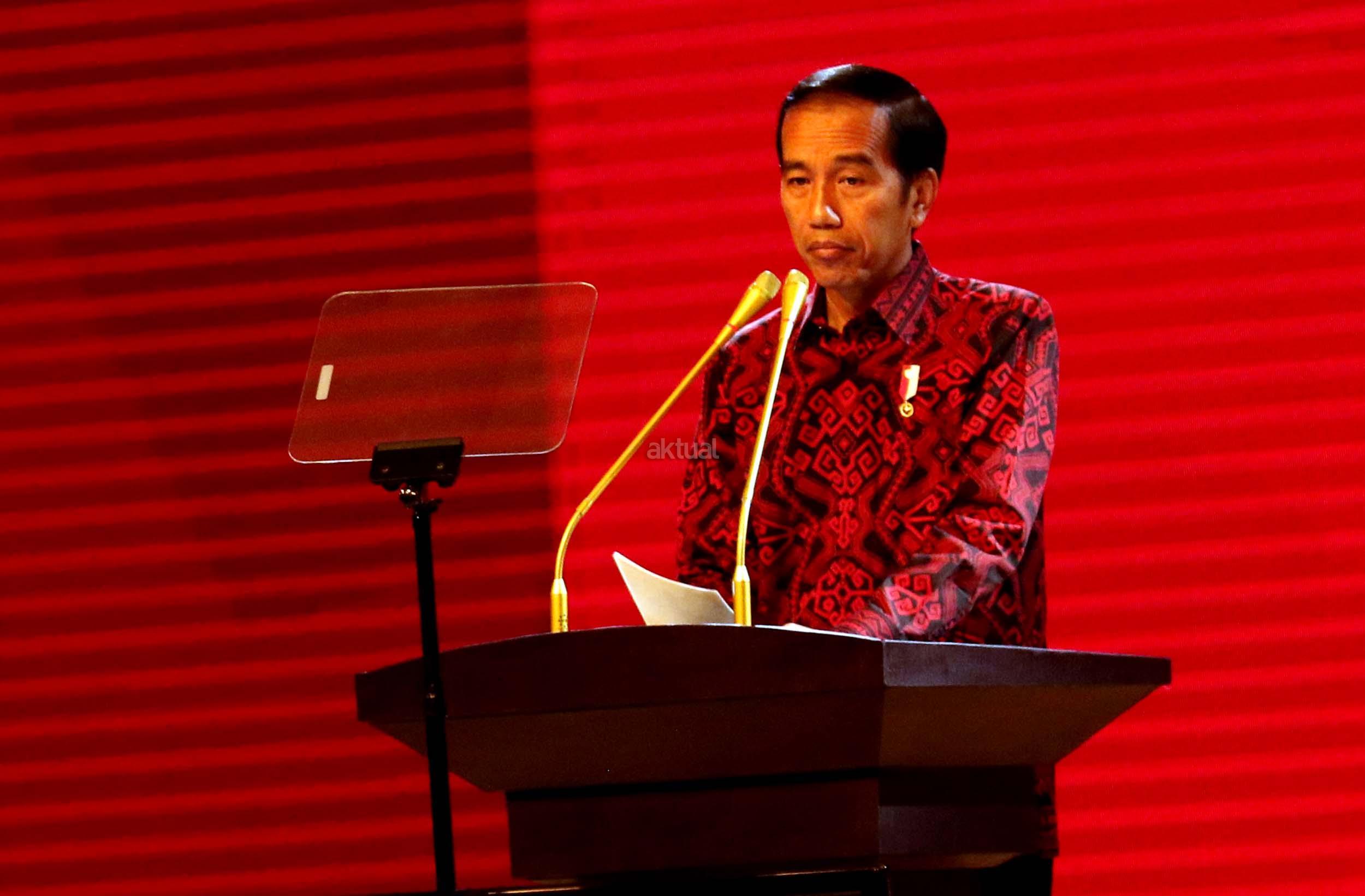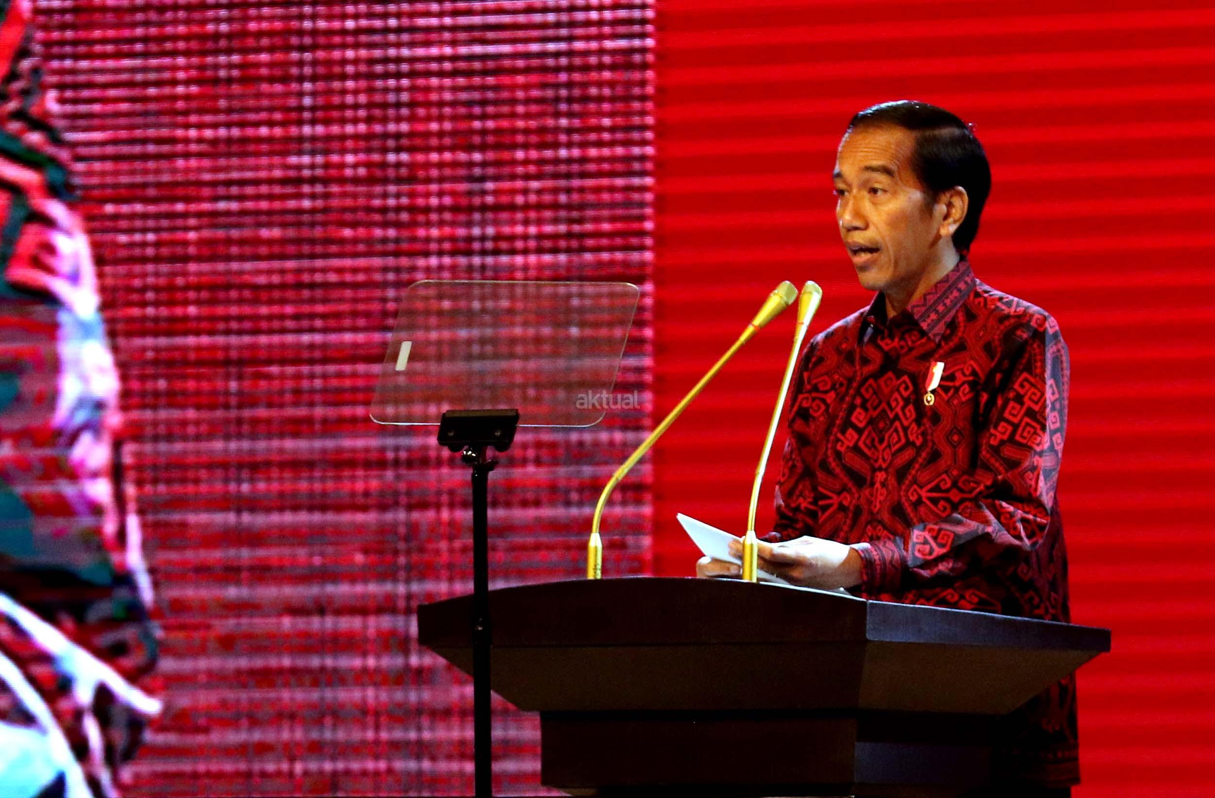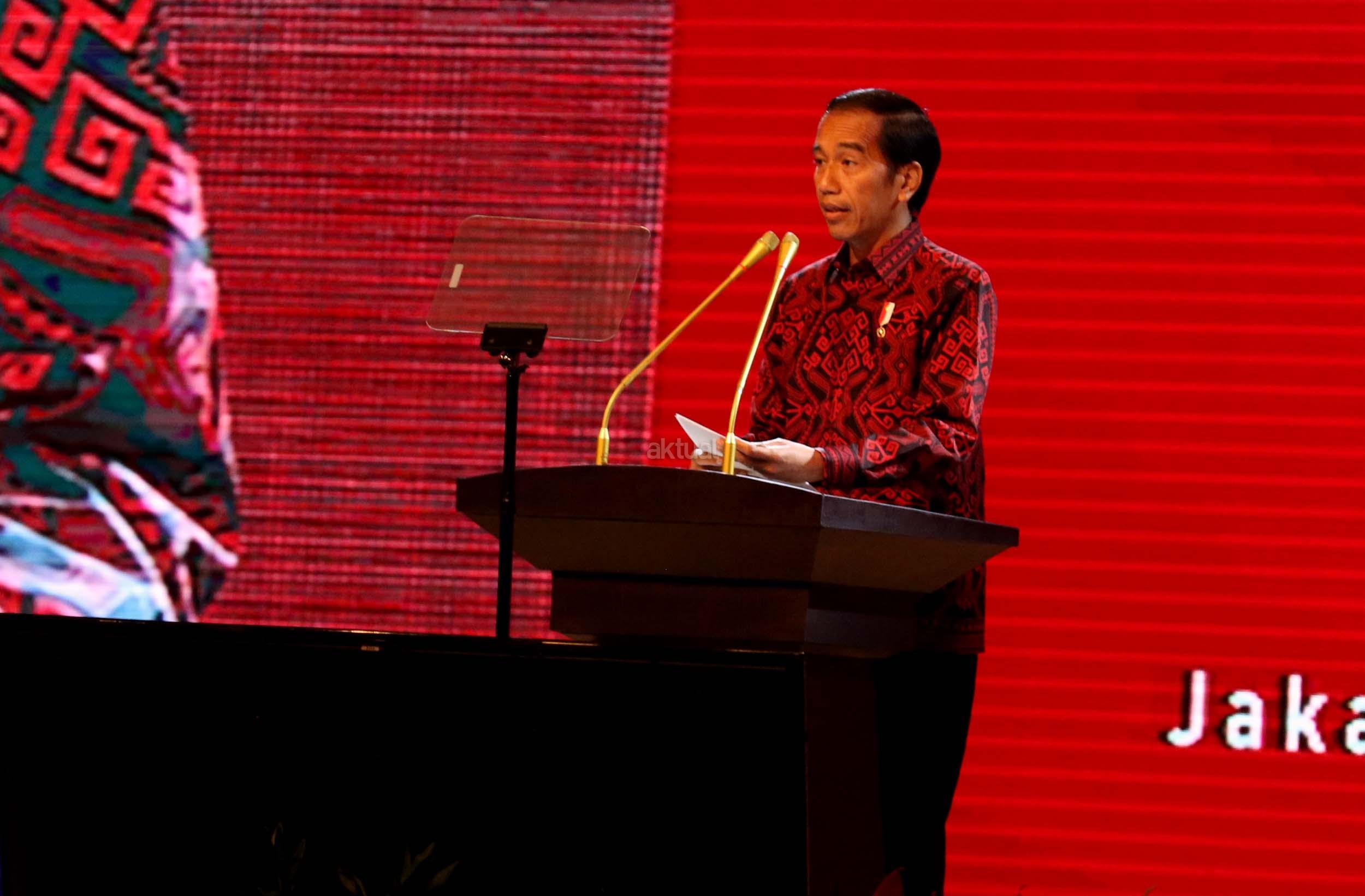 Presiden Joko Widodo memberikan pidato saat HUT PIDP ke-44 di JCC, Jakarta Pusat, Selasa (10/1/2017). Jokowi mengatakan, kebijakan ekonomi yang dijalankan pemerintahannya adalah kebijakan ekonomi pancasila dan gotong royong. AKTUAL/Munzir