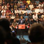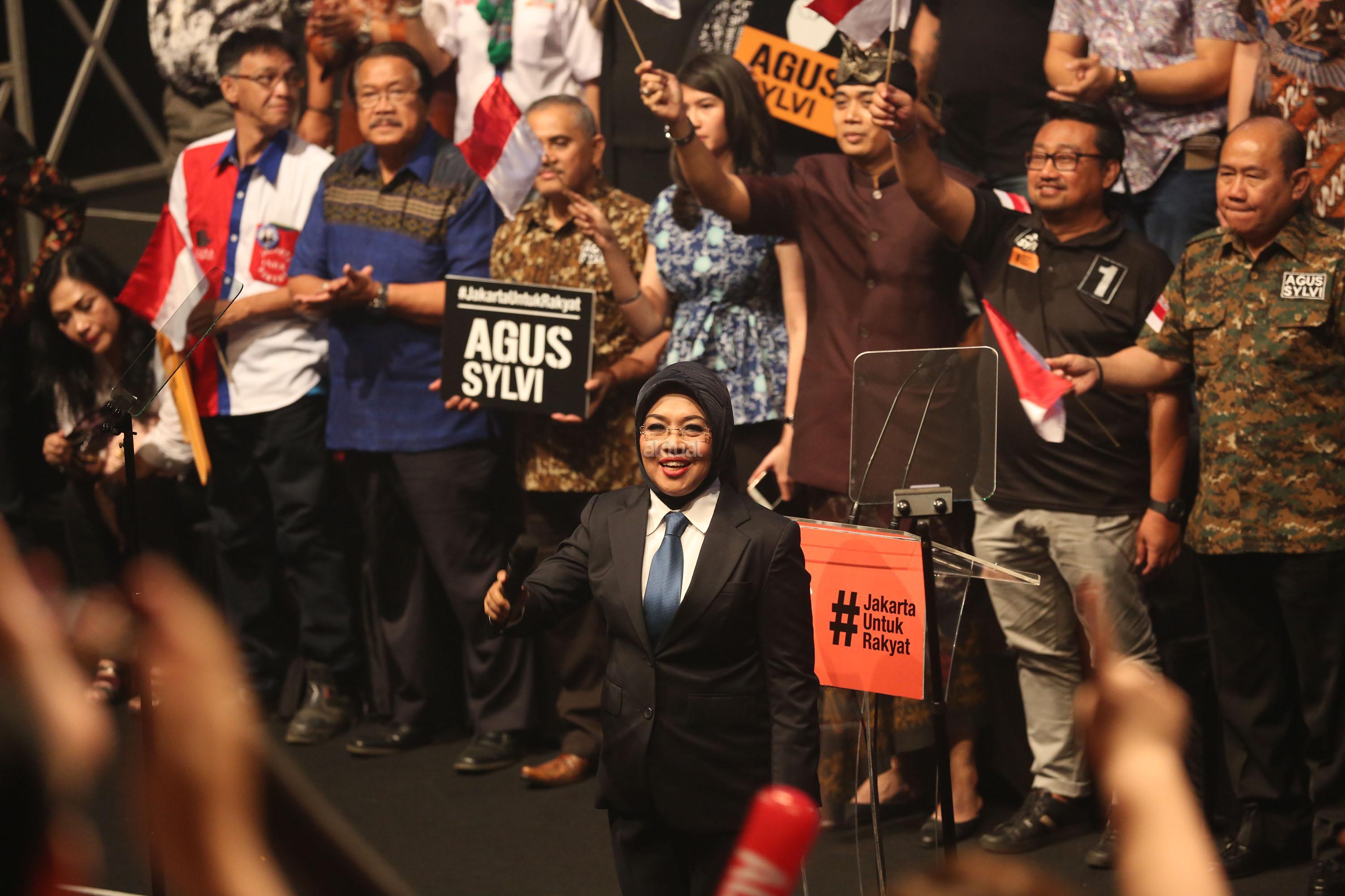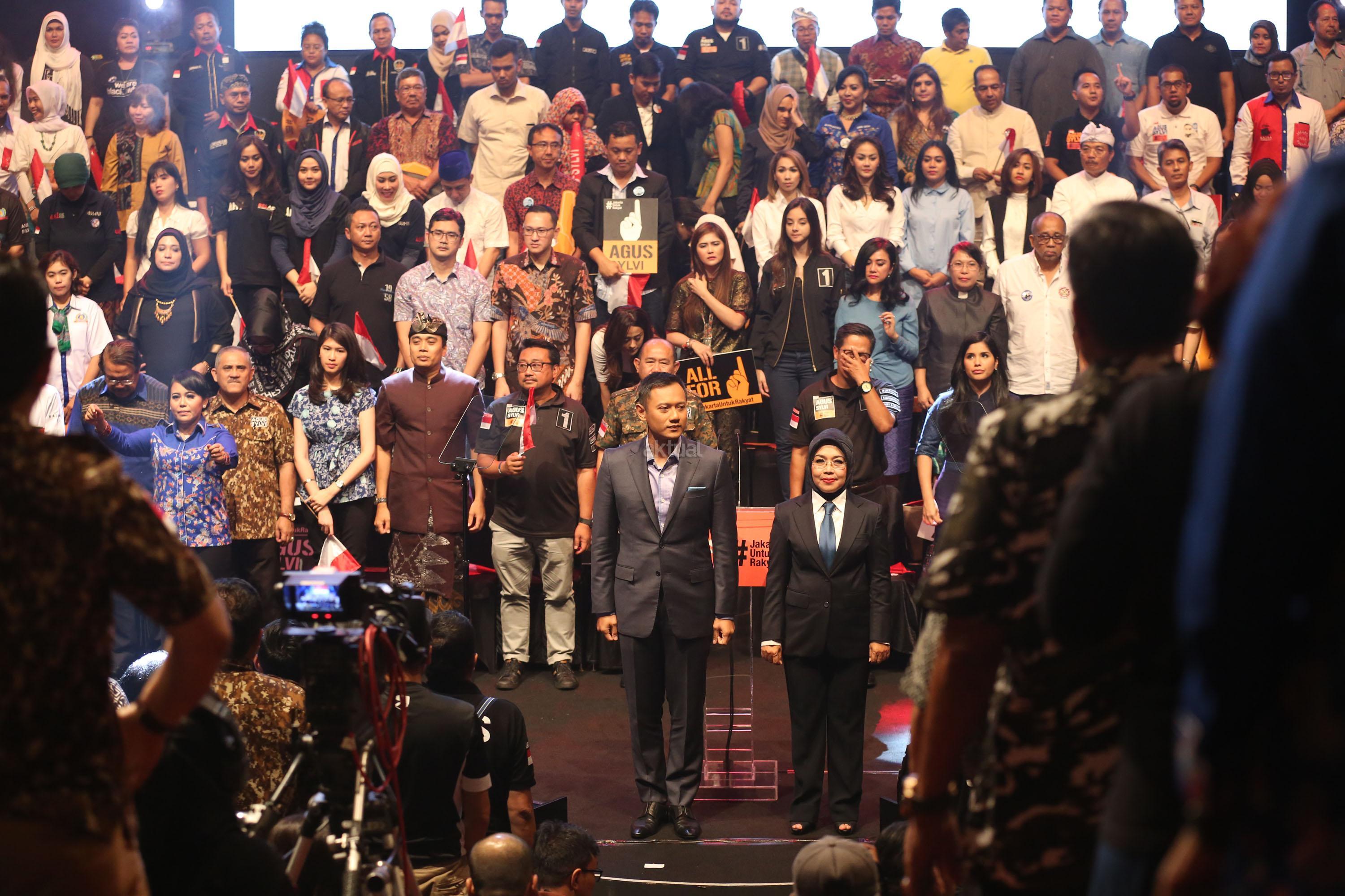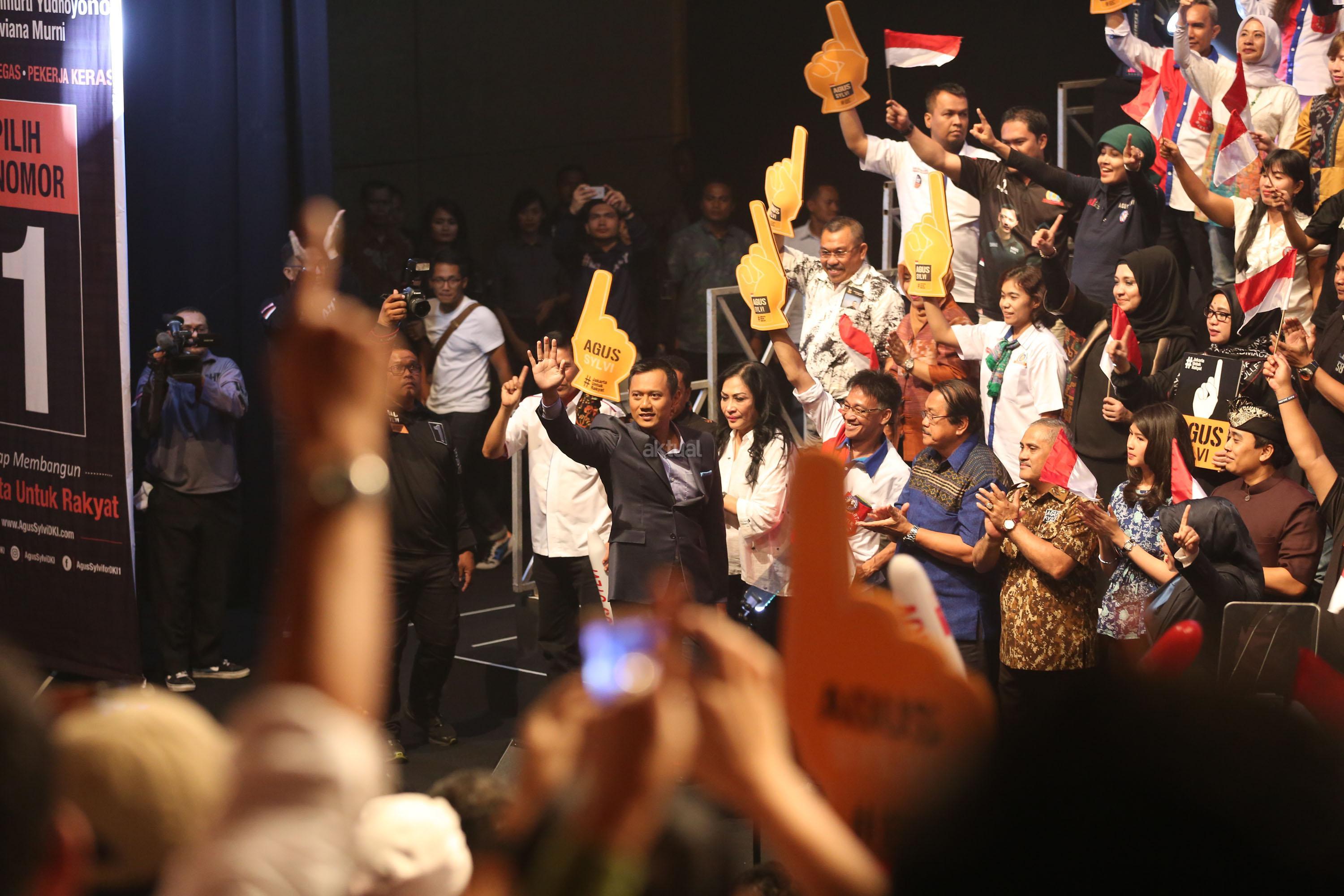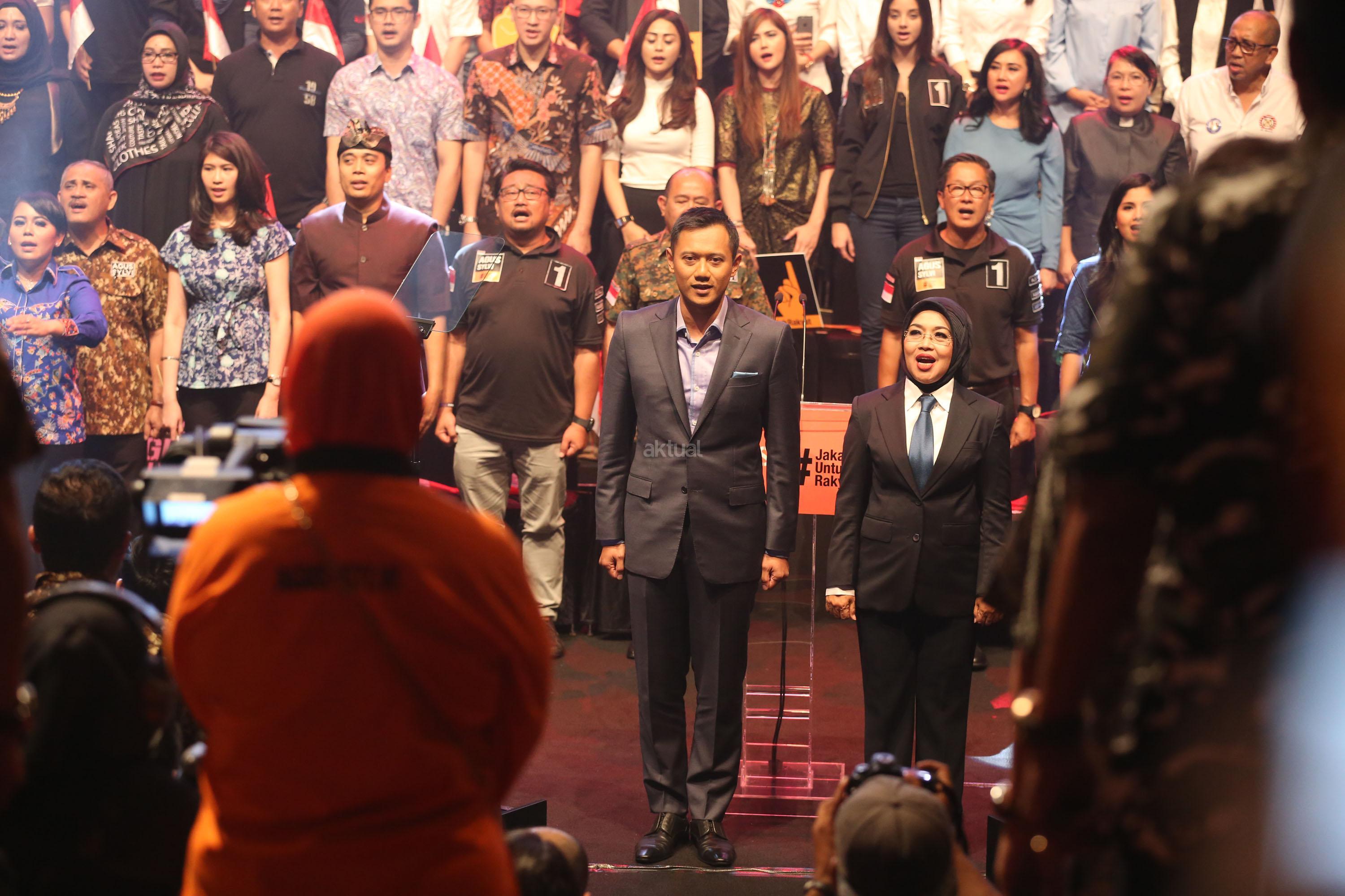Calon Gubernur DKI Jakarta Agus Harimurti Yudhoyono menyampaikan pidato politiknya di Balai Kartini, Jakarta Selatan, Minggu, (27/11). Agus yang berpasangan dengan Sylviana Murni mengangkat tema Pembangunan Ekonomi Investasi dan Perumahan Rakyat. AKTUAL/Tino Oktaviano