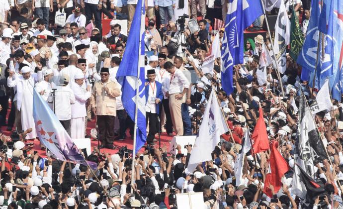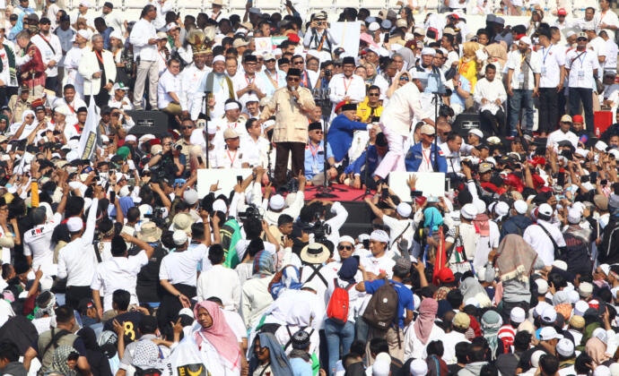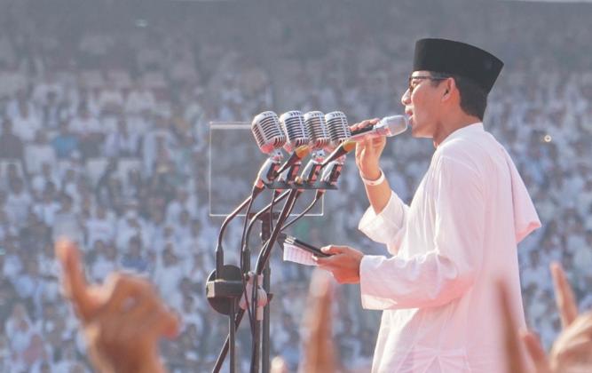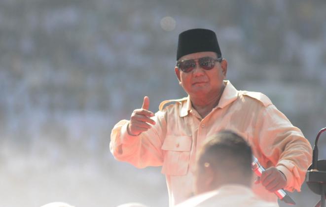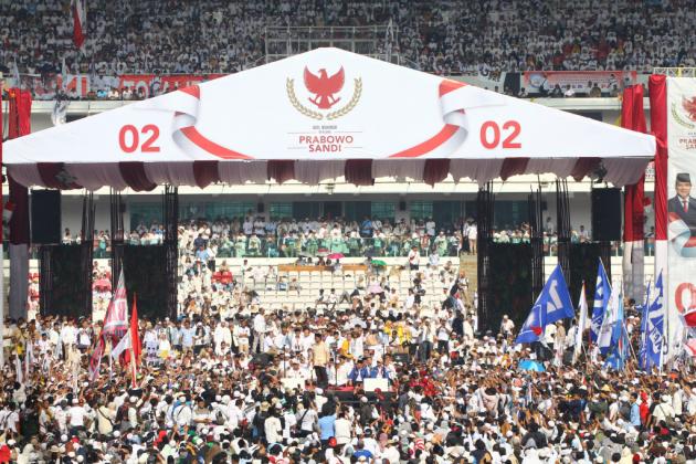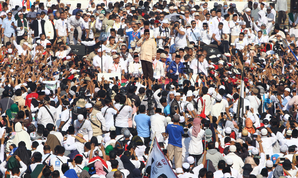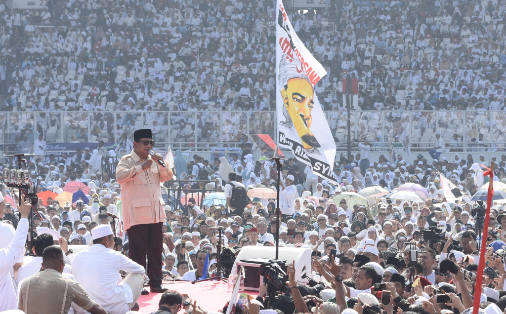 Calon Presiden nomor urut 02 Prabowo Subianto saat berpidato didepan pendukungnya saat kampanye akbar di Stadion Utama Gelora Bung Karno (SUGBK), Senayan, Jakarta, Minggu (7/4/2019). Kampanye tersebut diikuti ribuan simpatisan pendukung Prabowo-Sandi. AKTUAL/Tino Oktaviano
