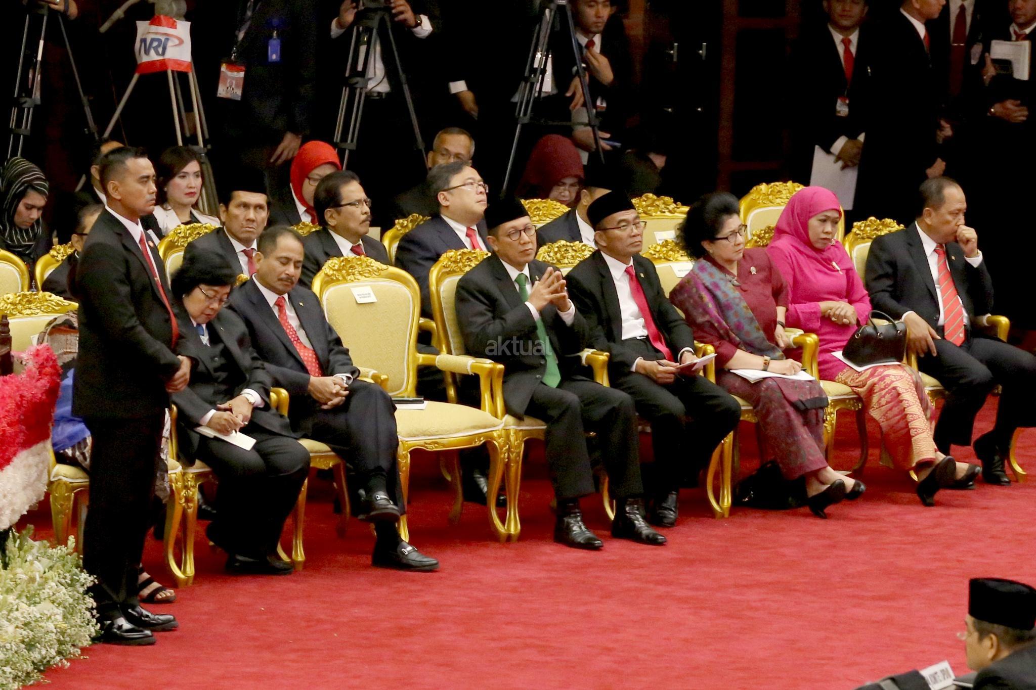 Para menteri kabinet Indonesia Kerja saat menghadiri Sidang Tahunan MPR di kompleks Parlemen, Senayan, Jakarta, Rabu (16/8). AKTUAL/Tino Oktaviano