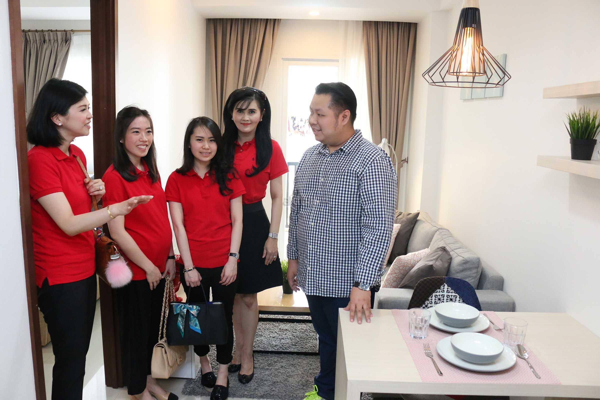 (dari kiri ke kanan) ,Direktur Pikko Group, Sicilia Alexander Setiawan, Direktur Pikko Group, Alice Neonardi, Direktur Pikko Group, Steffie Neonardi, Komisaris PT Pikko Land Development Tbk, Elizabeth Jane berbincang dengan salah seorang pemilik unit Acacia Wood Design (salah seorang tenan di SPG) saat meninjau dari dekat salah satu unit apartemen di Jakarta, Sabtu (29/4).KSO Pikko Group dan PT Pelaksana Jaya Mulia laksanakan Grand Opening Show Unit dan Penandatangan kerja sama dengan para tenan retail area pusat Binsis dan Komersial Kawasan Terpadu Signature Park Grande,MT Haryono,Jakarta. Rencananya,hunian yang mengusung konsep One Stop Living, serah terima unit Menara The Light pada Juni 2017.Pengembang juga membuka peluang kerjasama manajemen rental profesional untuk mempercepat pengembalian investsi atas unit hunian , bersinergi dengan layanan rancangan inspirasi interior unit. AKTUAL/Eko S Hilman