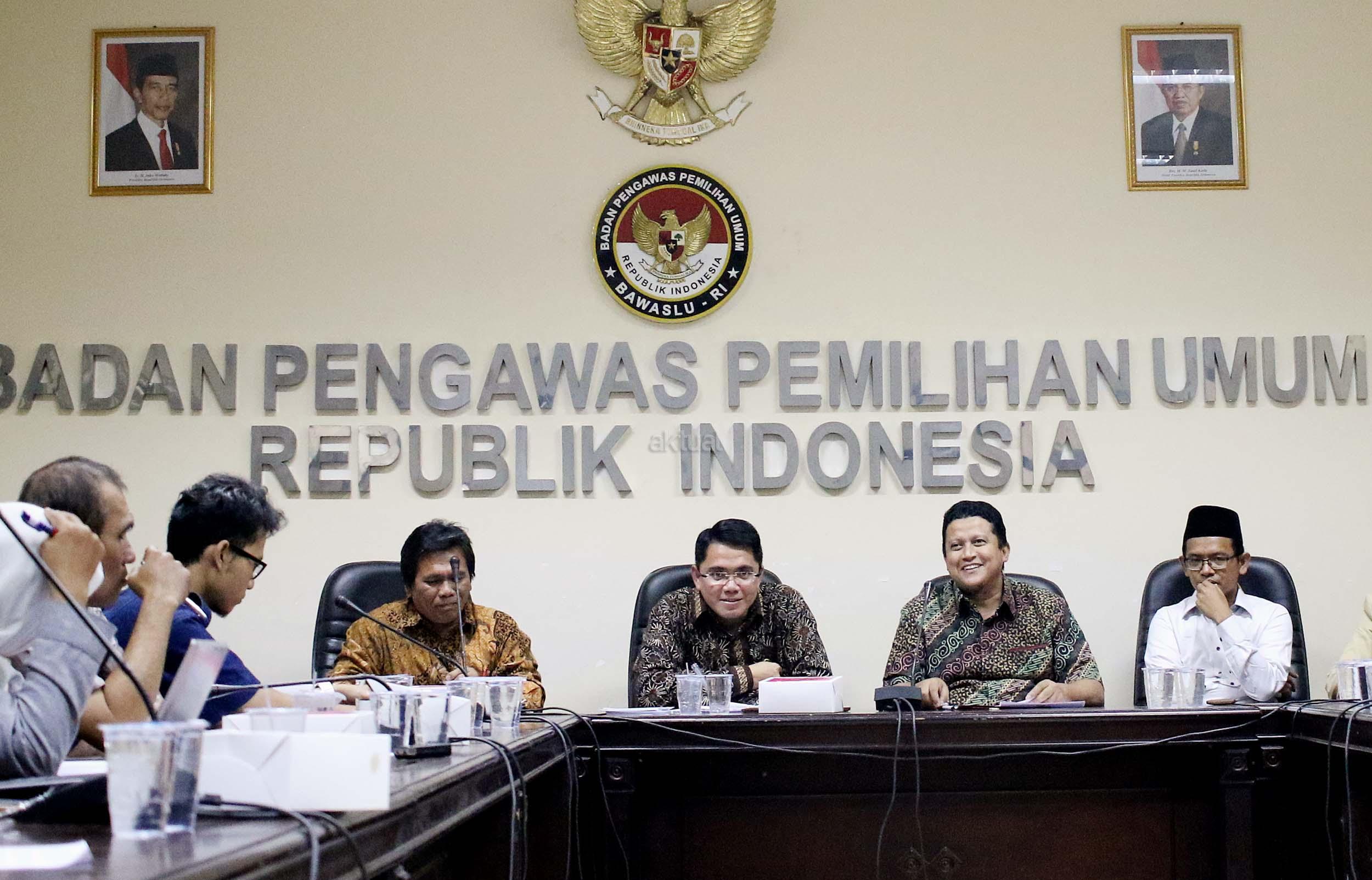 Kiri-kanan ; Anggota Bawaslu RI Nelson Simanjuntak, Anggota Komisi II DPR RI Arteria Dahlan, Ketua Bawaslu RI Muhammad, Deputi Koordinator JPPR Masykurudin Hafidz, menjadi pembicara diskusi Badan Pengawas Pemilu (Bawaslu) RI di Jakarta, Jumat (28/10/2016). Diskusi Bawaslu RI mengambil tema “Pilkada 2017, Kewenangan Baru Pengawas Pemilu dan Kesiapannya”.